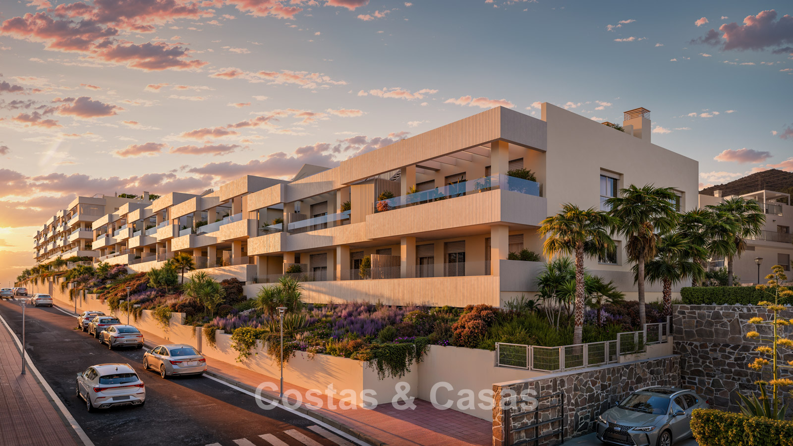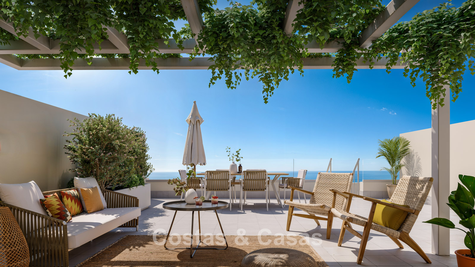 New collection consisting of 70 homes. Built with top-quality materials and state-of-the-art facilities. South-facing orientation allowing sunlight throughout the day. Panoramic views of the Mediterranean Sea. Apartments with 2 or 3 bedrooms. Spacious terraces to enjoy the pleasant Mediterranean climate. Penthouses feature large rooftop terraces. Large sliding windows provide abundant natural light and open onto the terraces. Elegant interiors with an open-plan layout. Open living area with TV lounge. Fully fitted kitchen with Bosch appliances. Separate laundry room. Including storage room and 2 parking spaces per property.