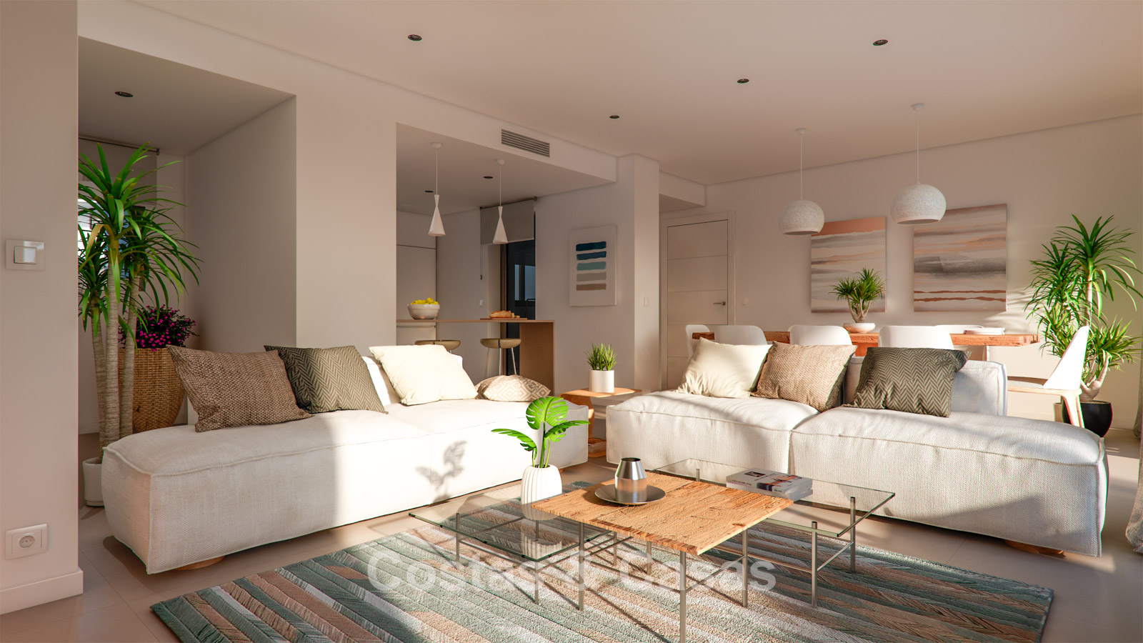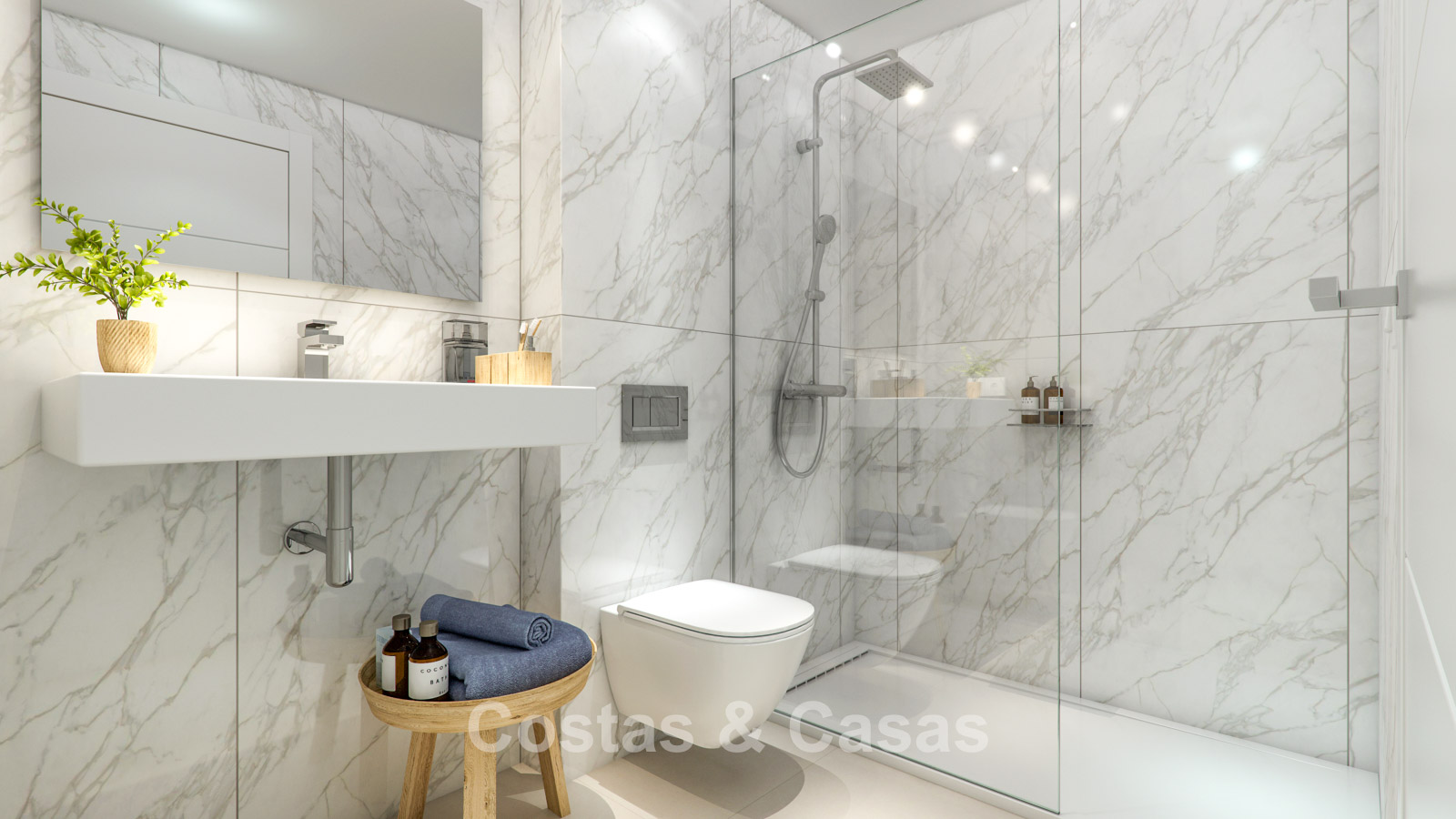 Situated in a golf environment, just 850 metres from the sandy beaches of Casares. Only 15–20 minutes’ drive from Estepona town centre and Sotogrande marina. Within 10 minutes, you can access several top-quality golf courses in the area. Inland lies the iconic white village of Casares, an officially protected monument rich in Moorish history and charming, atmospheric streets. It offers the perfect balance between the tranquillity of authentic Andalusia and the luxury of the nearby coast. Approximately 40 km from Gibraltar Airport and 85 km from Málaga Airport. The modern private development also features exclusive communal areas, including two spectacular designer swimming pools, a heated pool, a gym, a co-working/gourmet space, landscaped gardens and a children’s playground.