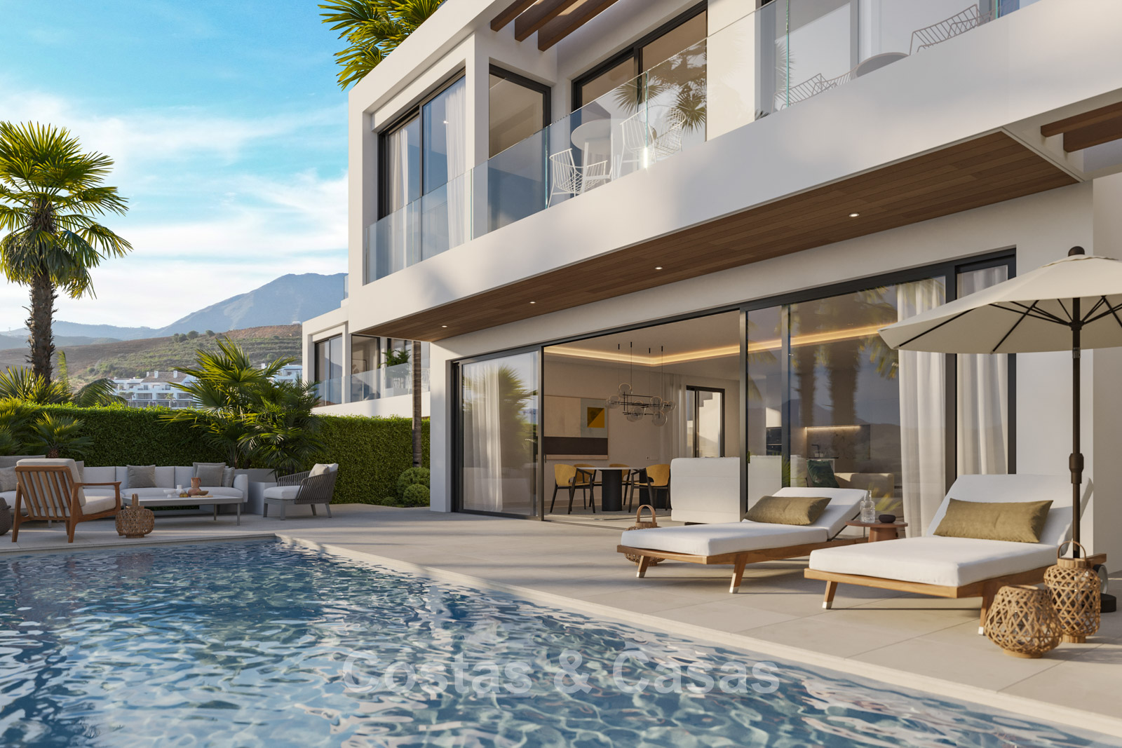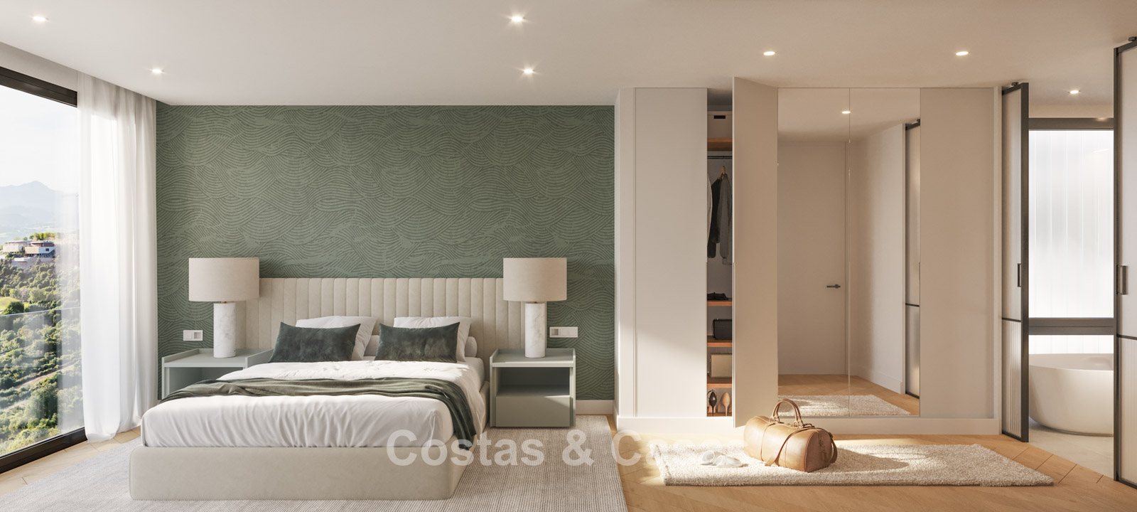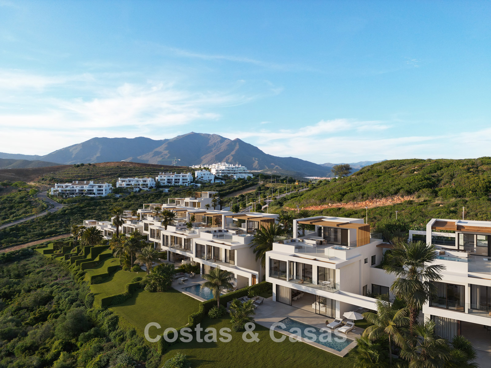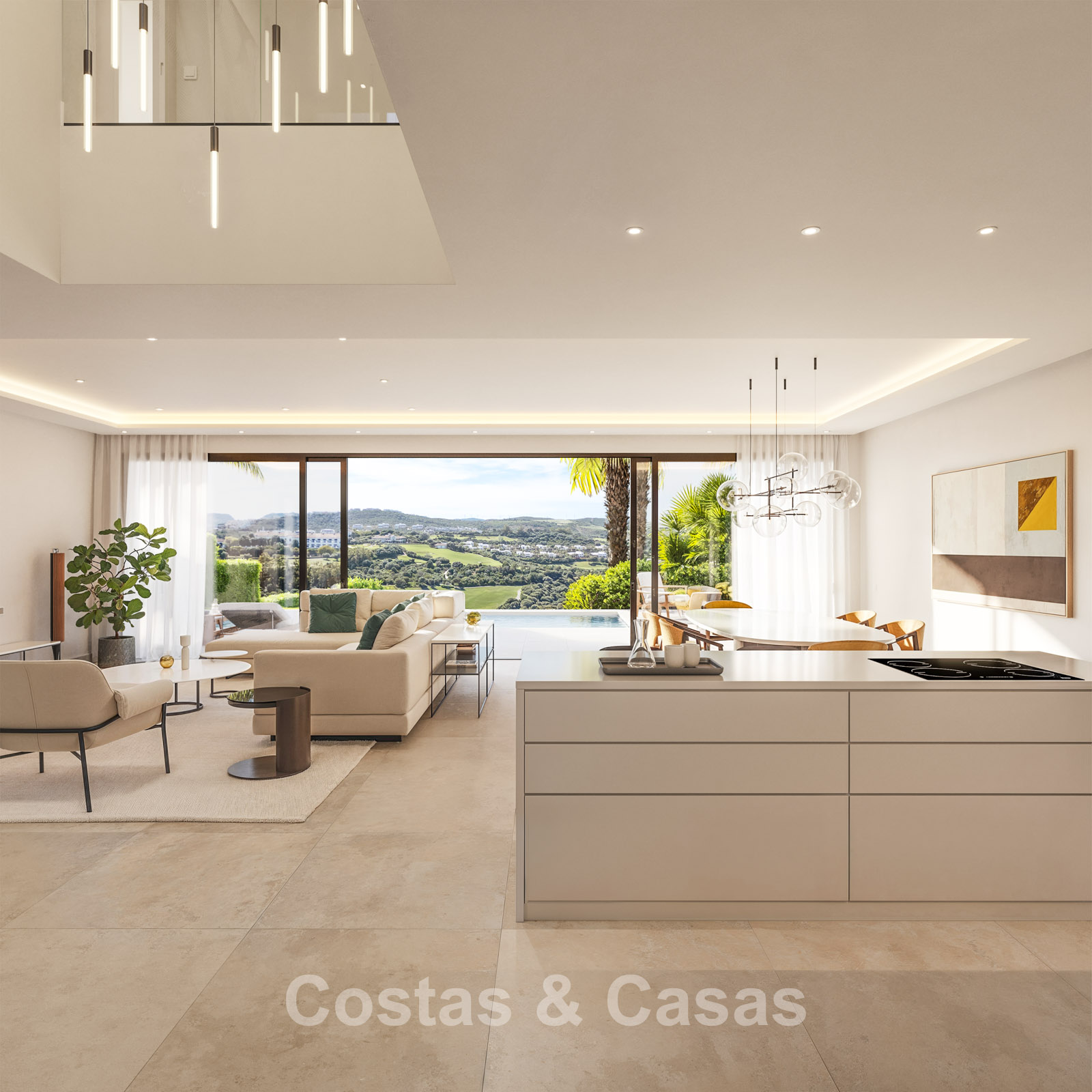 A collection of 17 luxury villas with a contemporary design. Designed to a high standard. Using high-quality materials with an eye for top-quality finishing. Facing south. Breathtaking views of the Mediterranean Sea, the prestigious Finca Cortesin golf course and the African coast. The high sliding windows with recessed profiles provide a seamless transition to the outside and allow abundant daylight to enter, contributing to a bright and open interior. Open plan living area with a TV lounge and integrated dining area. Functional custom kitchen, equipped with high-quality appliances and a breakfast bar. 3 bedrooms, with the possibility of 5 bedrooms, each with its own bathroom. Laundry room equipped with Siemens or similar appliances. Storage room. Private parking for 3 cars.