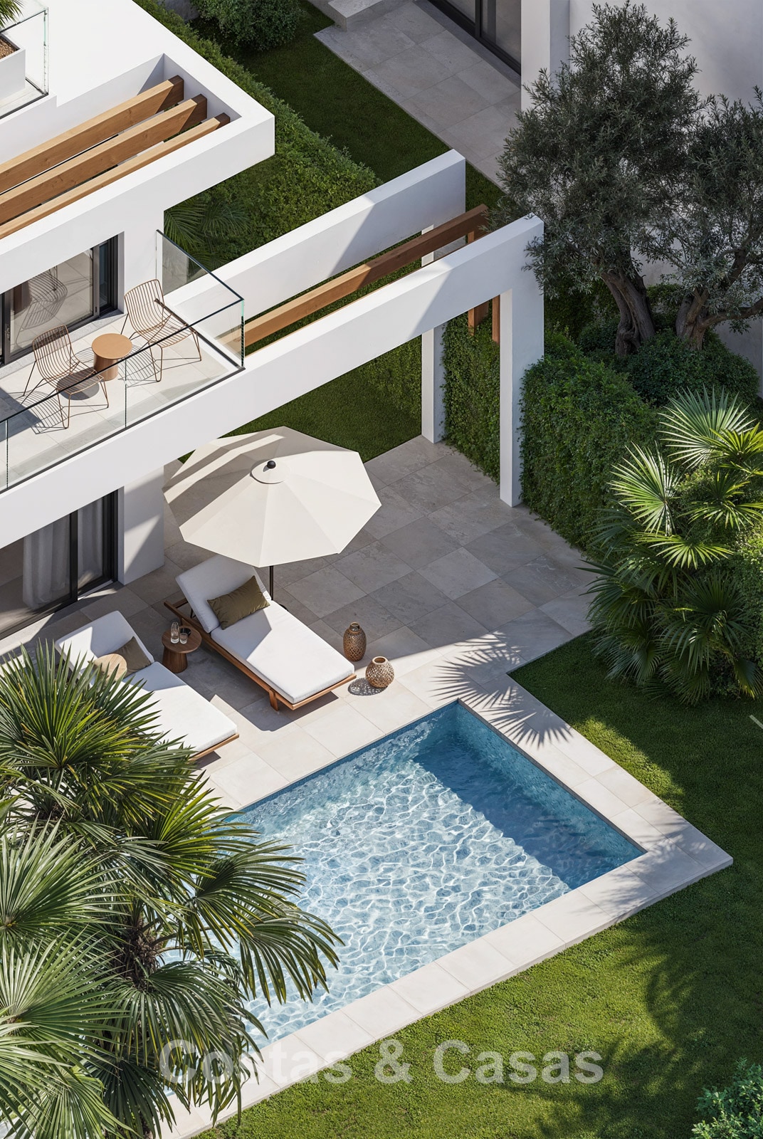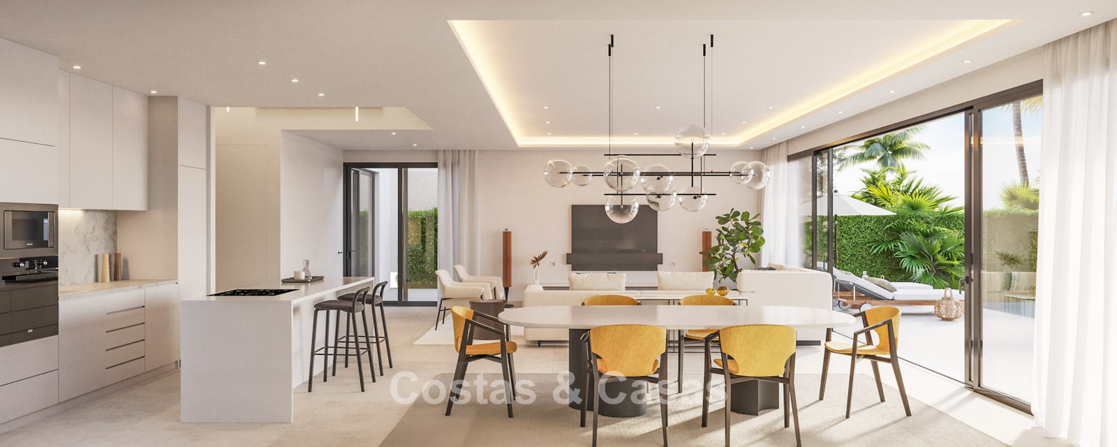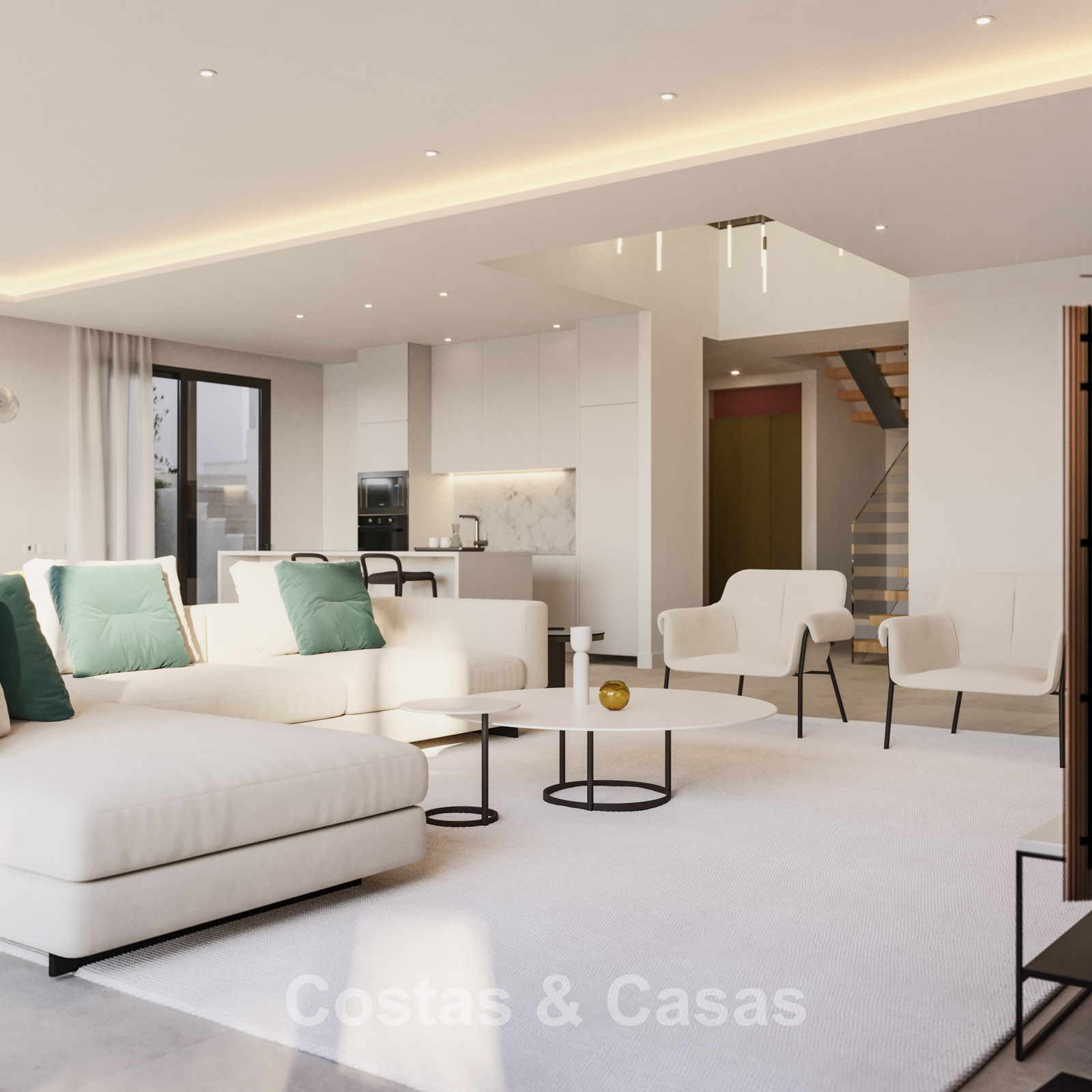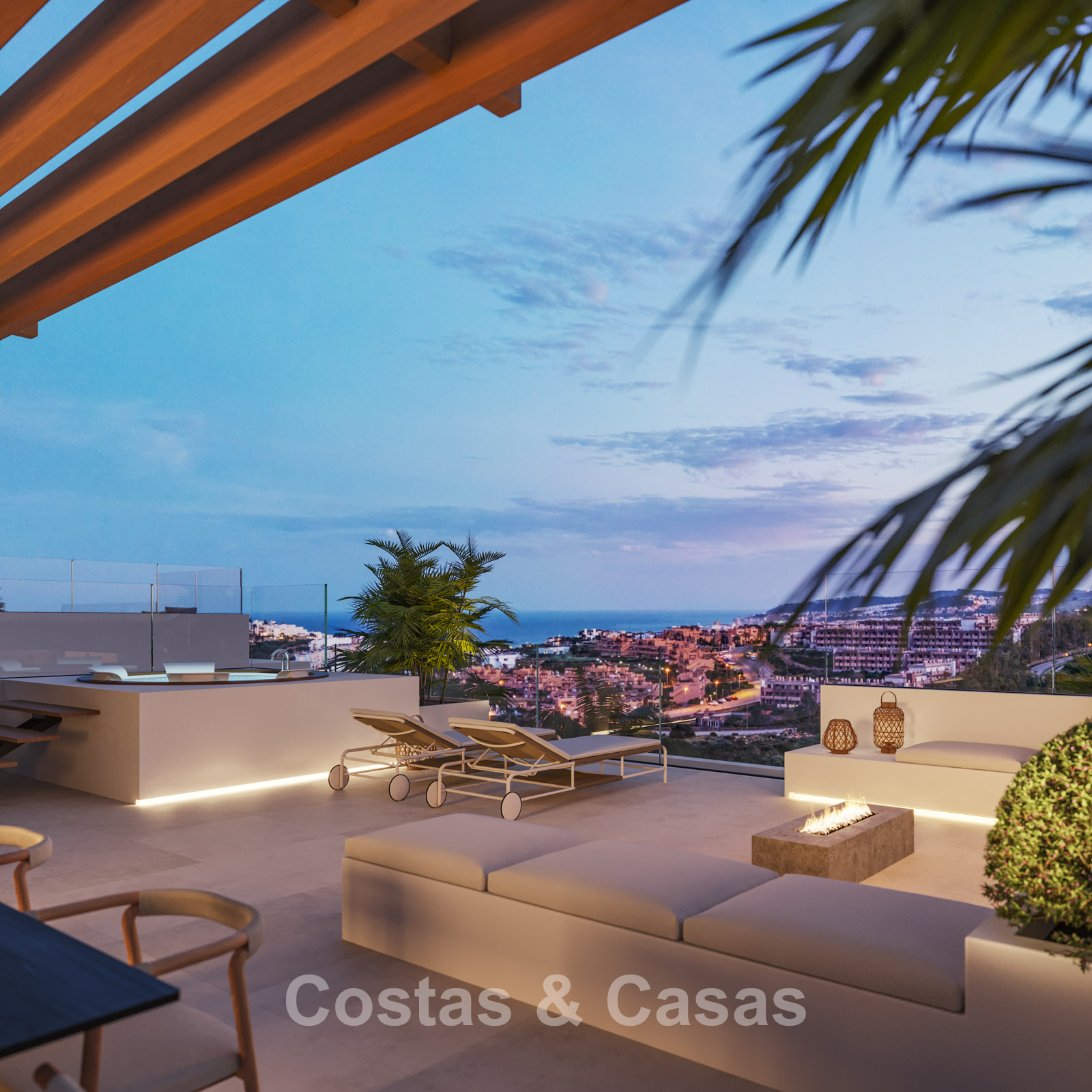 A collection of 17 luxury villas with a contemporary design. Designed to a high standard. Using high-quality materials with an eye for top-quality finishing. Facing south. Breathtaking views of the Mediterranean Sea, the prestigious Finca Cortesin golf course and the African coast. The high sliding windows with recessed profiles provide a seamless transition to the outside and allow abundant daylight to enter, contributing to a bright and open interior. Open plan living area with a TV lounge and integrated dining area. Functional custom kitchen, equipped with high-quality appliances and a breakfast bar. 3 bedrooms, with the possibility of 5 bedrooms, each with its own bathroom. Laundry room equipped with Siemens or similar appliances. Storage room. Private parking for 3 cars.