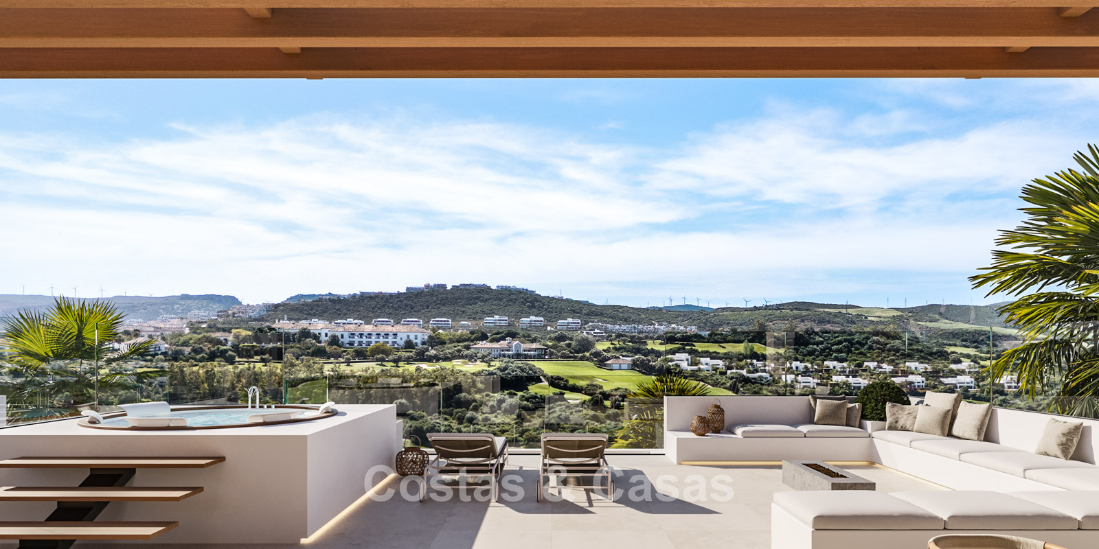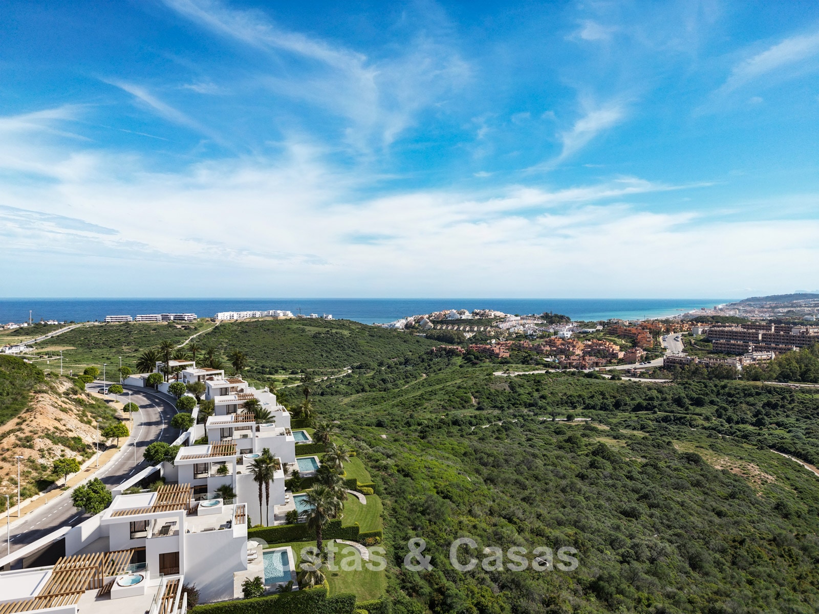 Situated in a privileged golf setting, in an elevated position, allowing residents to enjoy panoramic views of the prestigious Finca Cortesin golf course, the Mediterranean Sea, Gibraltar and even the African coast. Situated just 2km from the sandy beaches of Casares Costa. Approximately 10 minutes’ drive to Estepona and Sotogrande. Approximately 80km from Malaga airport, and 30km from Gibraltar airport.