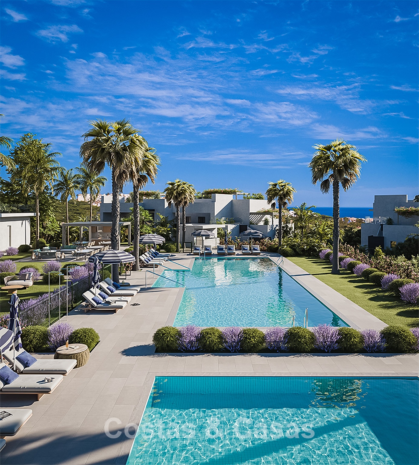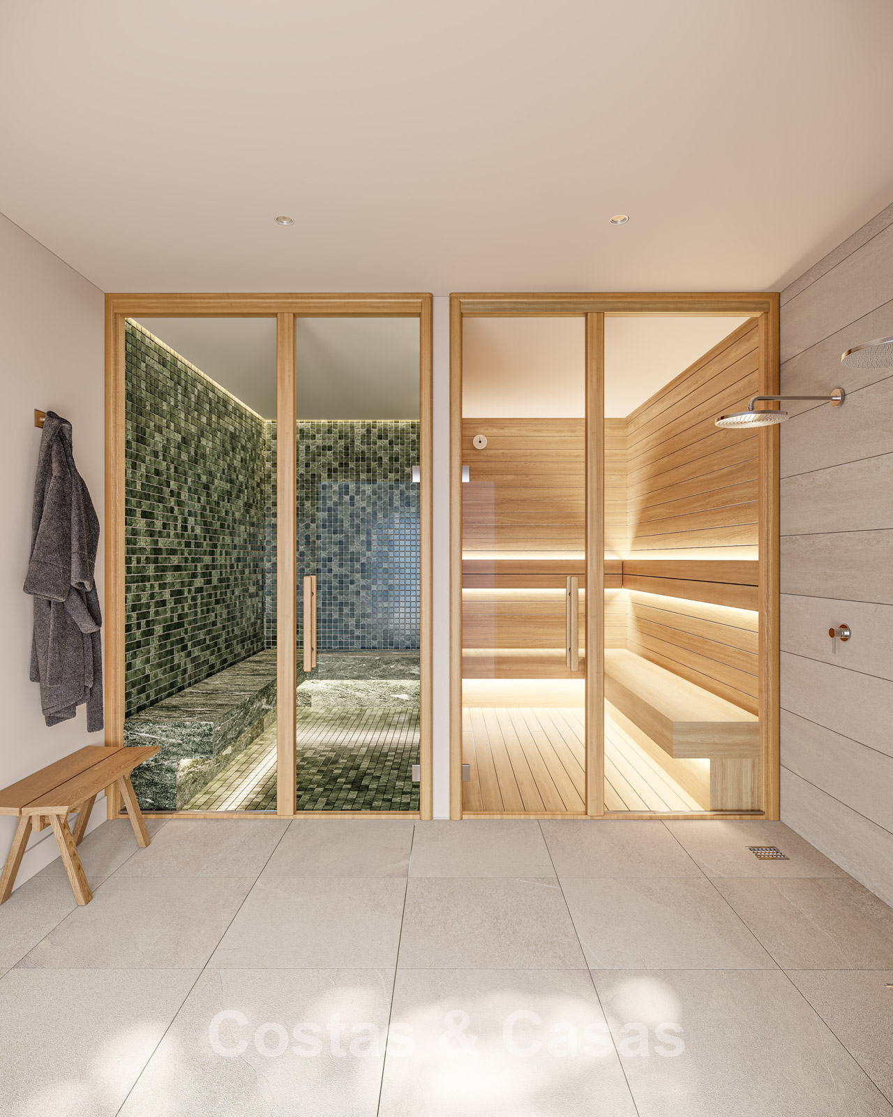 Situated just a few minutes’ drive from an 18-hole golf course. The marina of La Duquesa and the beachside village of Sabinillas, with its numerous bistros and restaurants, can be reached in a 15-to-20-minute drive. Estepona is a 15-minute drive away, while Puerto Banus and Marbella are around 35 minutes away. Residents have access to a range of amenities including 2 swimming pools, a fitness centre, a co-working space, a spa with sauna and hammam and a golf simulator.