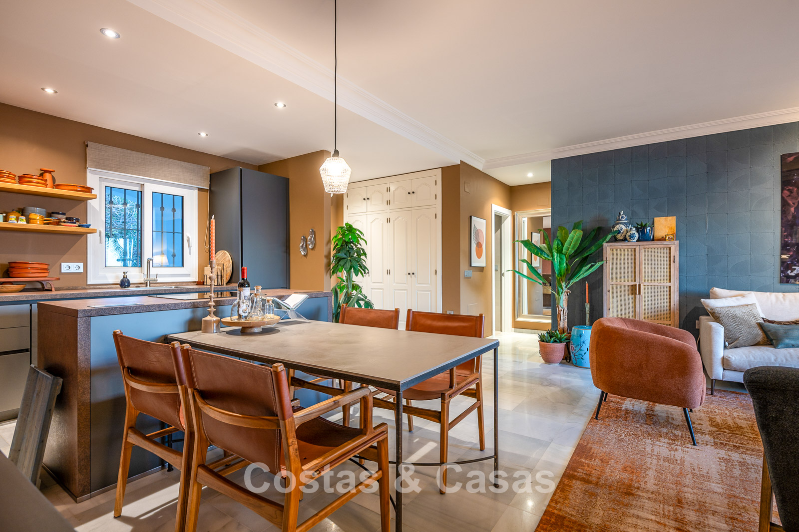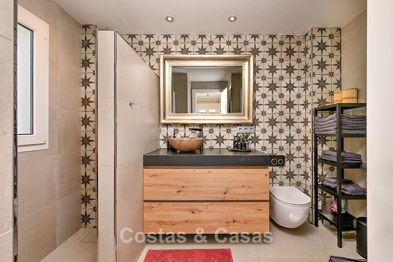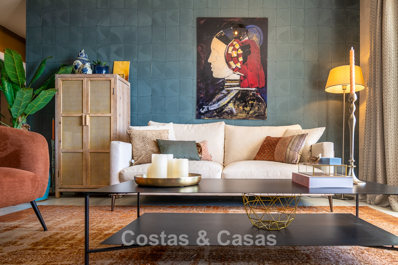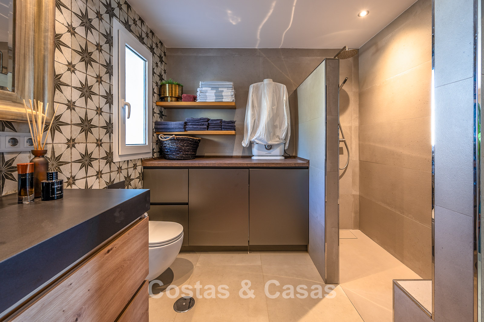 The kilometres-long seafront promenade has undergone a complete transformation in recent years and is now considered one of the most modern and vibrant in Spain. Within a 10–15 minute walk, you reach the charming old town with its flower-filled streets, gourmet tapas bars, boutiques and lively marina. For daily convenience, a large Carrefour hypermarket is just a stone’s throw away, meaning everything you need is within easy reach without requiring a car. A renowned beach restaurant is also nearby, along with several other chiringuitos within walking distance. Golf enthusiasts are perfectly situated, with top courses such as Valle Romano just a short drive away, while Marbella and Puerto Banús can be reached in only 20 minutes.