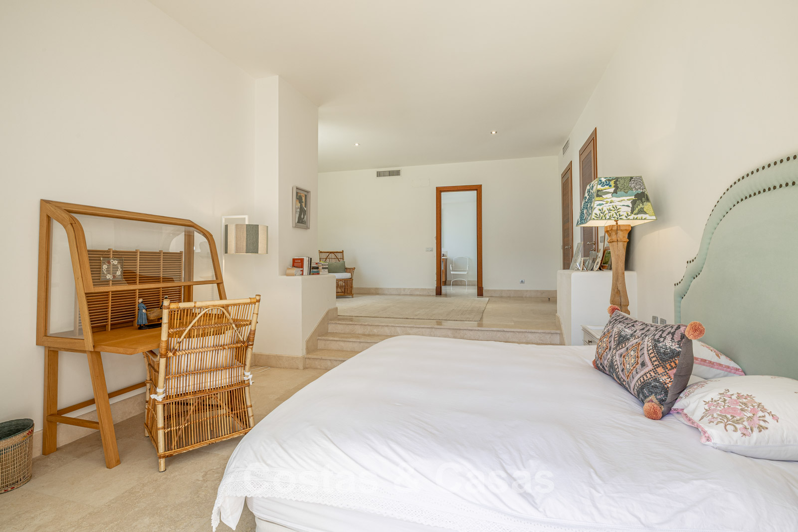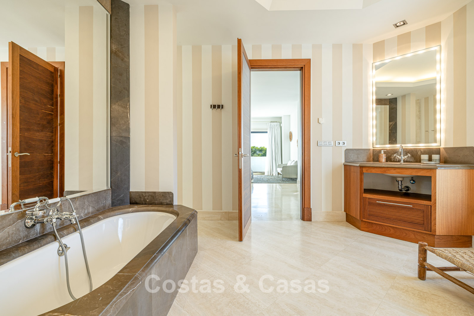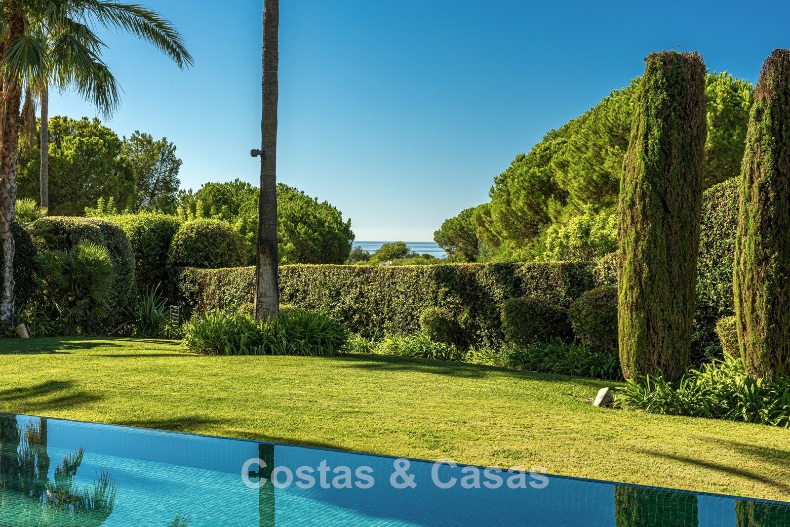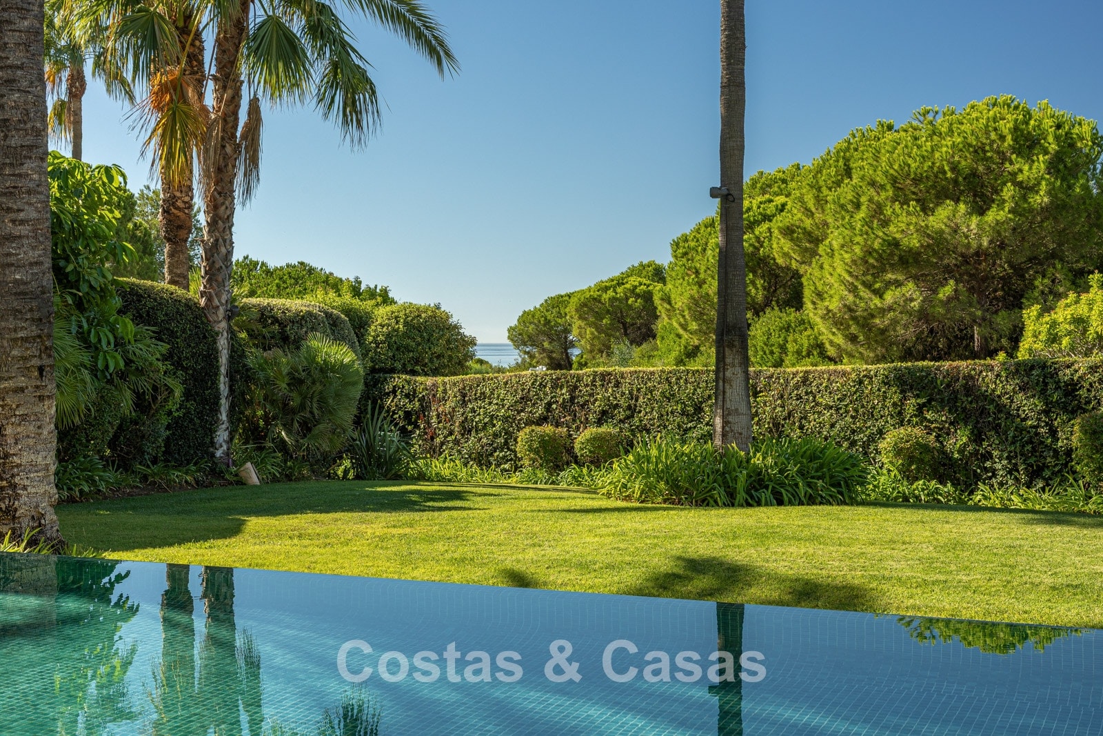 Situated on a spacious plot, surrounded by lush landscaping. A magnificent swimming pool with an adjacent sun terrace. Extended terraces equipped with various seating and lounge areas. South-facing. Views of the gardens and partial sea views.
