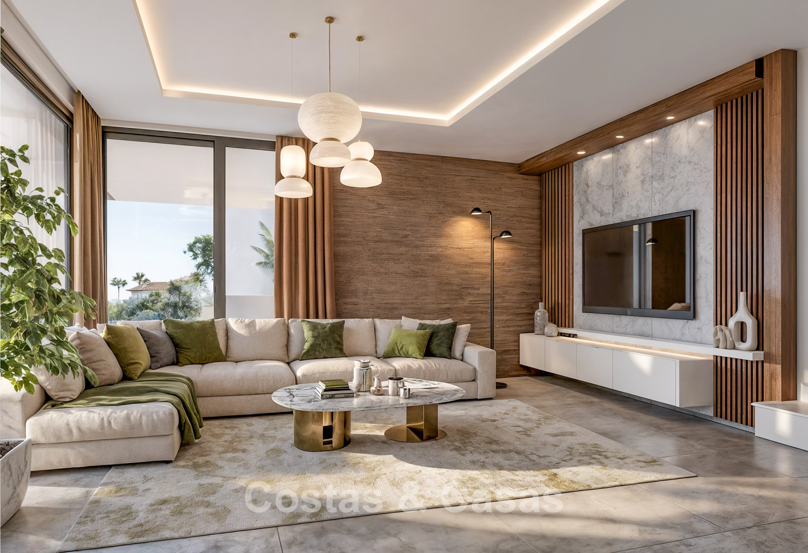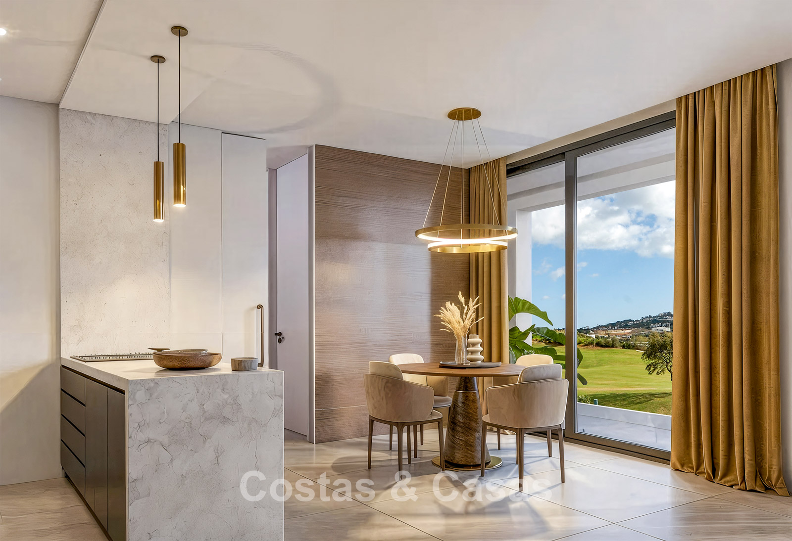 Off-plan new-build villa, stylishly designed with a modern and luxurious finish. Built using high-quality materials and top-level craftsmanship. Ideal south-facing orientation. Beautiful views over the golf course. The spacious terraces, including an outdoor kitchen with barbecue, provide the perfect setting for al fresco dining and relaxation. Large sliding windows with recessed frames create a seamless transition to the outdoors and allow an abundance of natural light, enhancing the bright and open interior. Open-plan living area with a TV lounge. Modern kitchen fully equipped with premium appliances and seamlessly connected to the dining area. All four bedrooms are generously sized and each features its own luxurious en-suite bathroom. Carport for 2 cars.