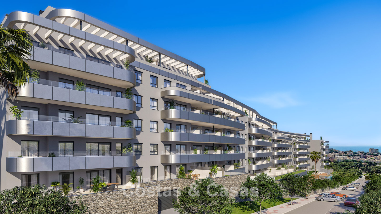 Modern new-build apartments, characterised by innovative, sleek architecture. High-quality finishes with a focus on design, sustainability, and premium materials. The development offers a variety of homes, including ground-floor units with gardens, mid-level apartments, and spectacular penthouses. Most homes are strategically designed with a south to southwest orientation. From the spacious terraces, residents enjoy panoramic views of the coast and mountains thanks to the elevated position. Large sliding windows in the living areas allow abundant natural light, creating a bright and open interior. Living spaces feature open-plan layouts. Modern kitchens are fully fitted with high-quality Bosch appliances and Silestone worktops. Storage room included. Underground parking available.