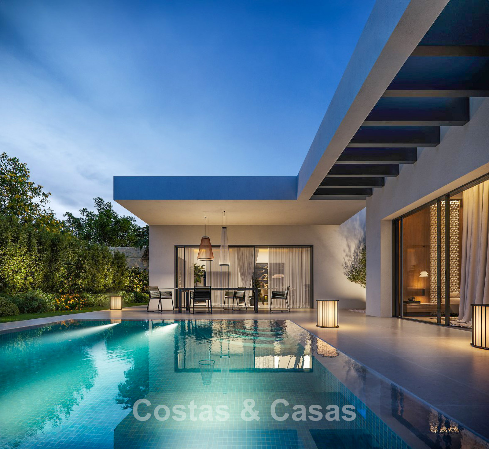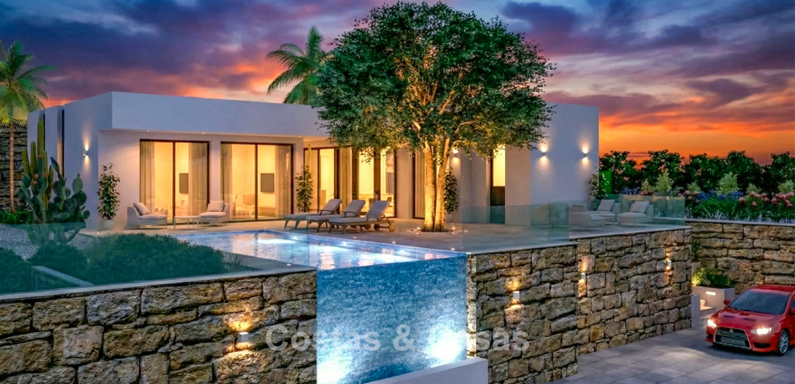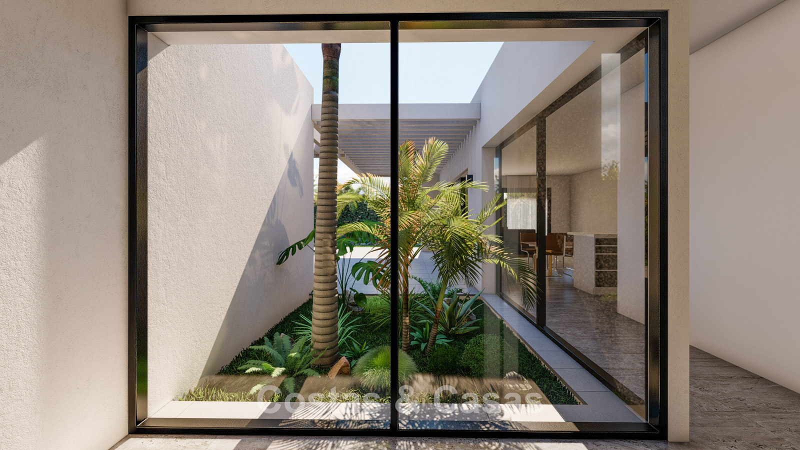This exclusive residential concept seamlessly blends contemporary architecture with nature. The homes are located within a secure gated community, ensuring peace and safety. Each property has been carefully designed to make optimal use of the local climate. Thanks to the terraced layout, nearly every unit enjoys uninterrupted panoramic sea views. A bioclimatic design has been selected, with high-quality insulation for maximum energy efficiency. Spacious terraces are designed to create a seamless transition between indoor and outdoor living. Large windows with black frames and double glazing ensure optimal natural light and climate control. Living spaces are generously designed with a focus on comfort and smart use of space. The modern open-plan kitchen is fitted with high-quality Siemens appliances and a stunning kitchen island. Bedrooms feature sleek built-in wardrobes, and bathrooms are fitted with Villeroy & Boch sanitary ware. Luxury porcelain floor tiles are installed throughout the home. For investors, a property management programme is available via the on-site reception. Each villa includes private parking with pre-installation for an electric charging point.