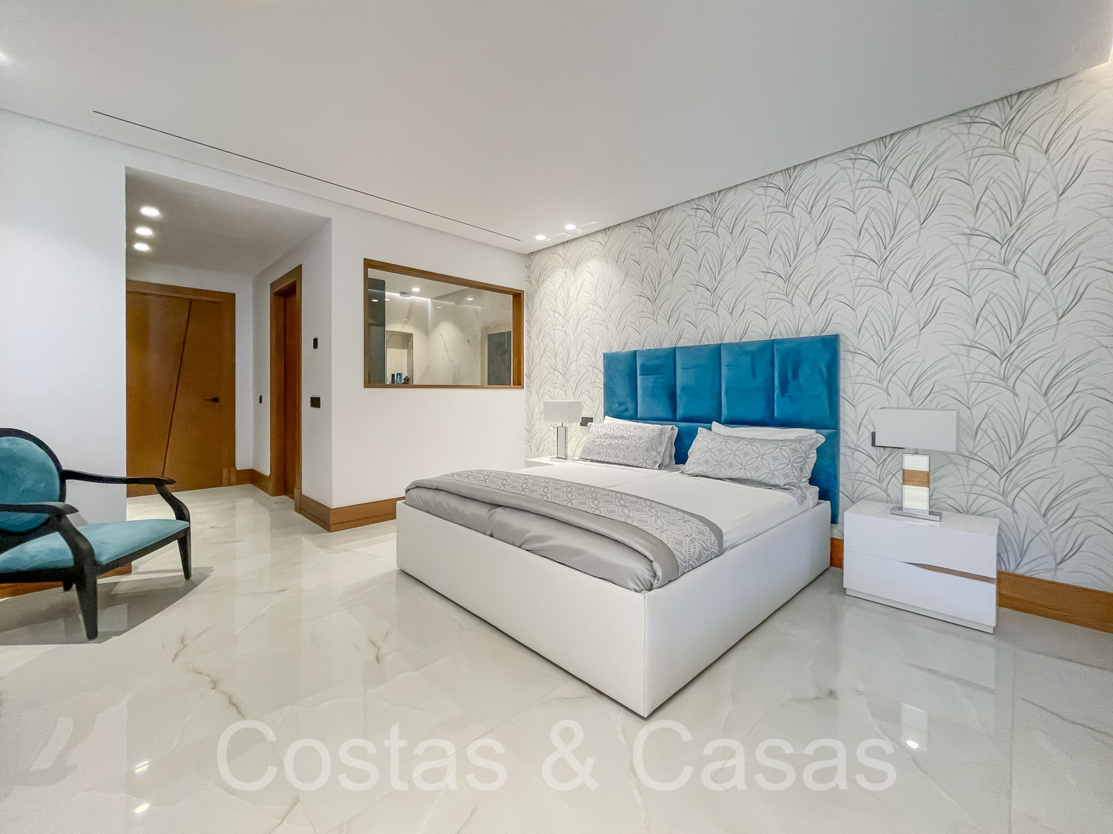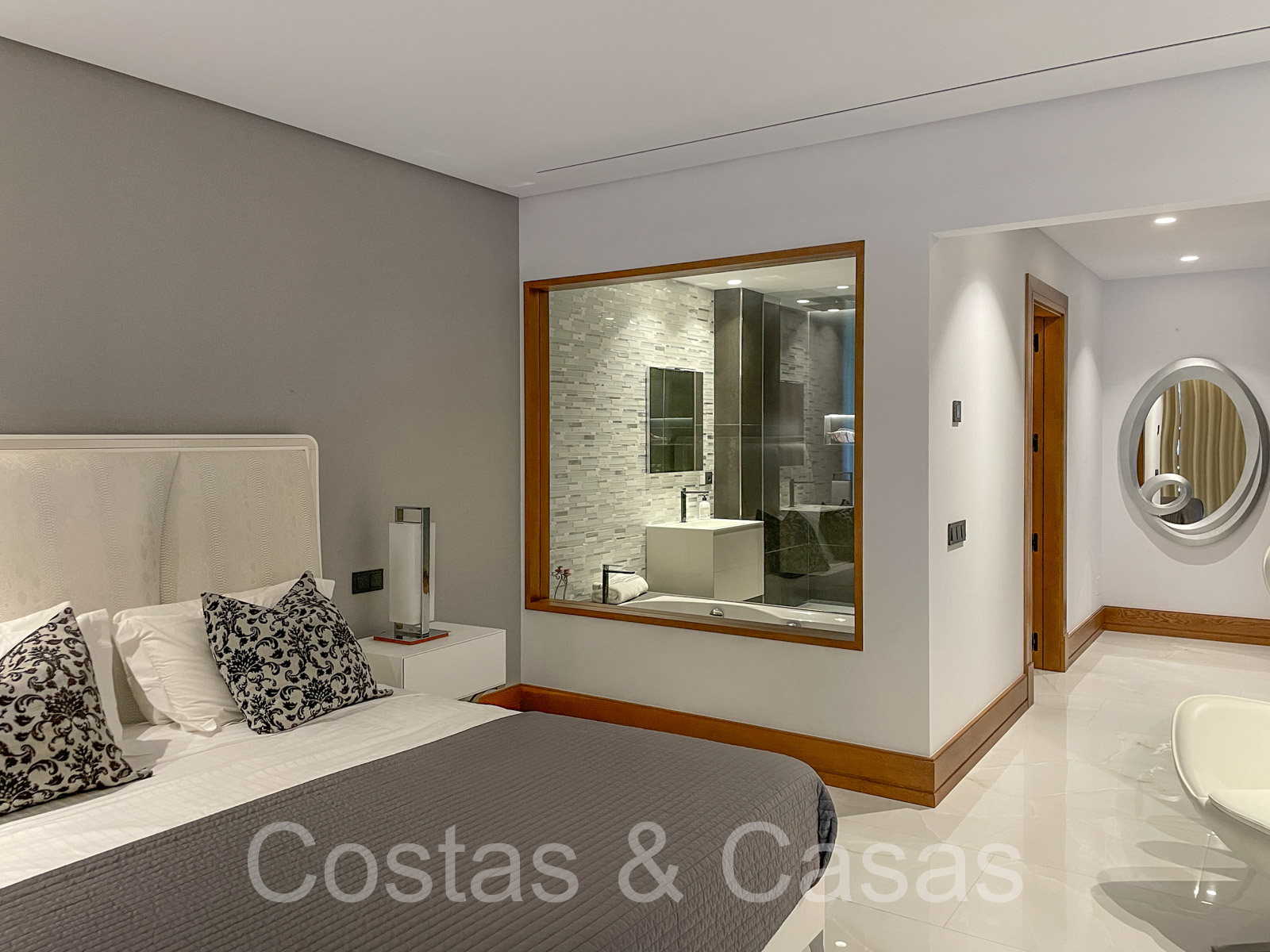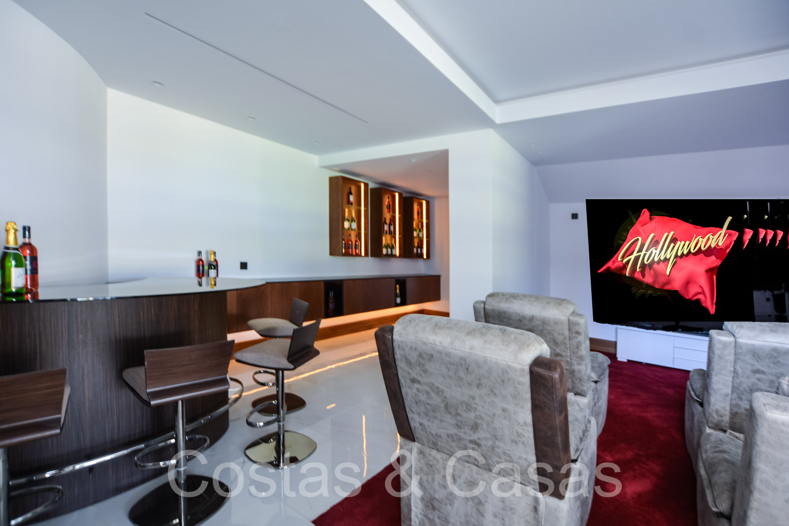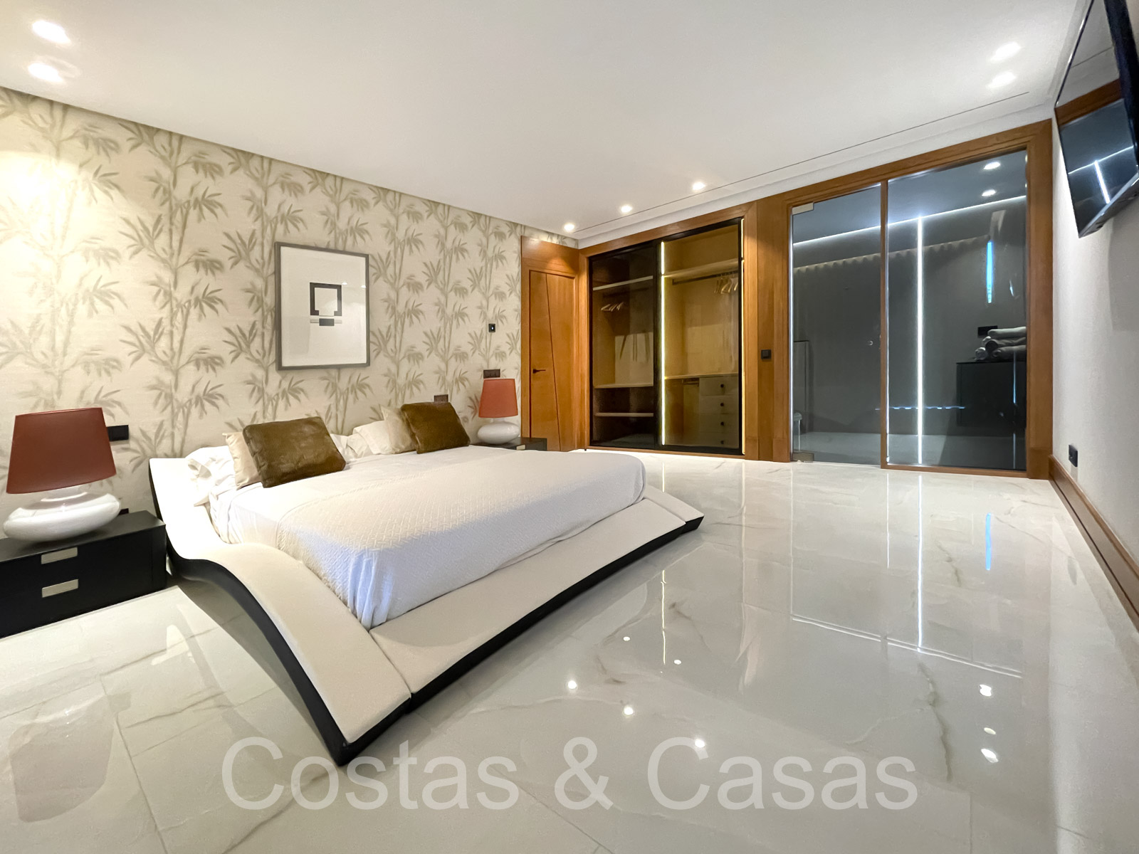 Extensive plot of 3.700m², with direct access to the golf course. Well-kept exterior with manicured landscape gardens and 3 large water features. Giant infinity pool with an adjacent sun terrace and a sunken chill-out. Built-in Jacuzzi and a Gazebo. Spectacular roof terrace designed with a professional putting green, surrounded by a sun deck. Unparalleled views over the golf courses with 2 lakes, towards the Mediterranean Sea.