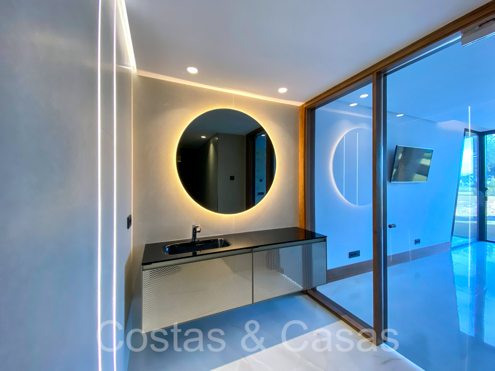 Detached villa with a dynamic design and a sleek, innovative architectural style. Built to a very high standard and with an eye for detail. Floor-to-ceiling sliding windows with recessed profiles throughout the villa provide optimal light.