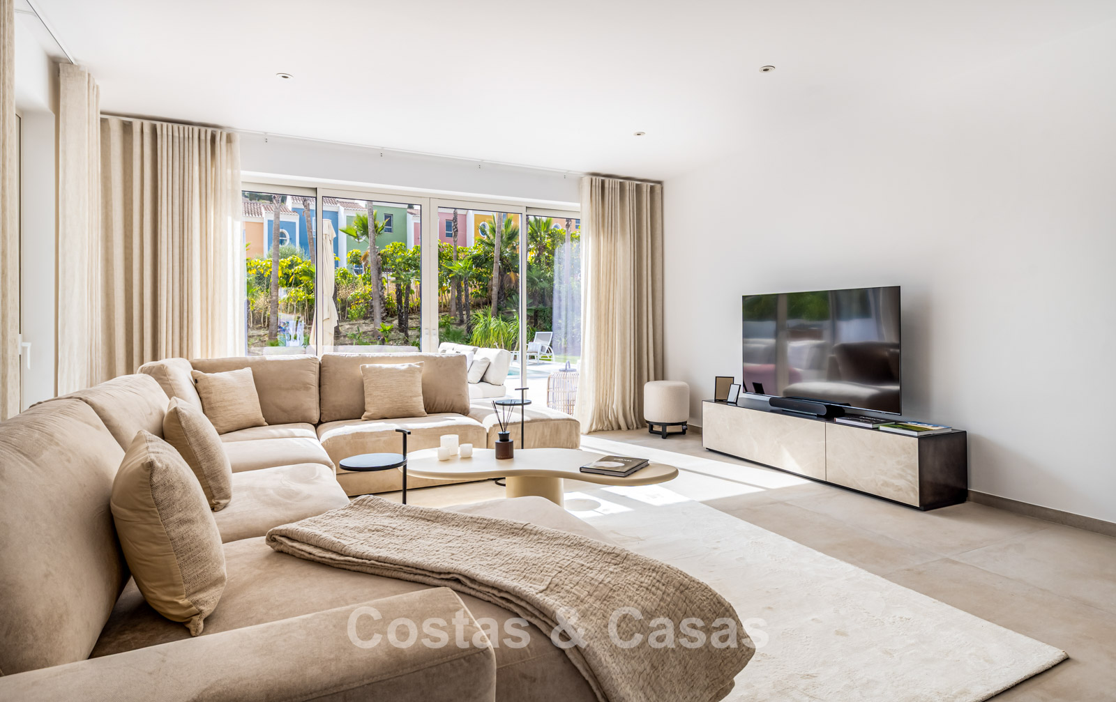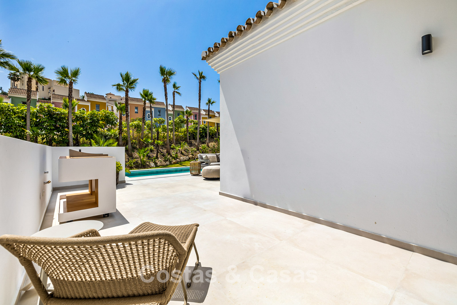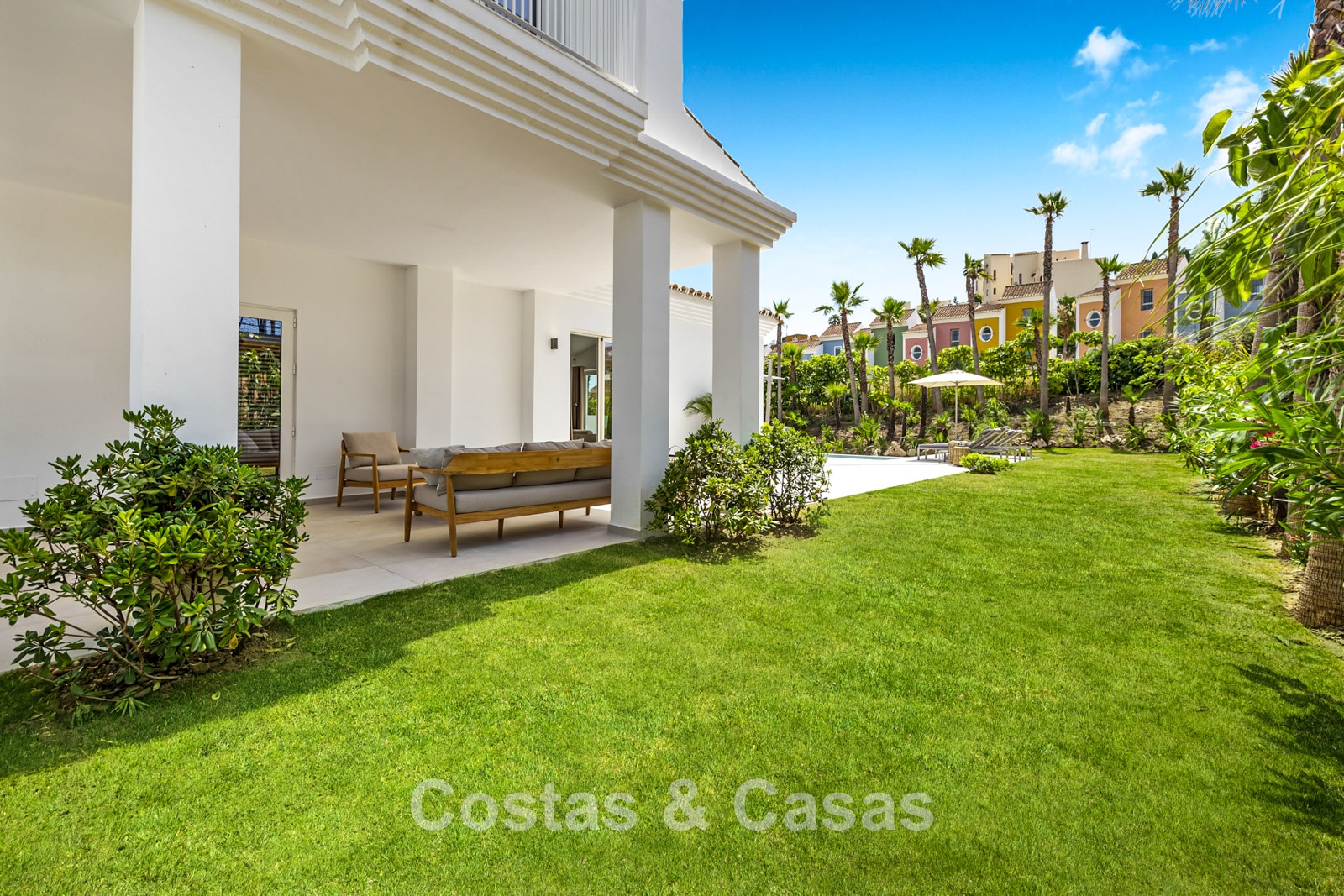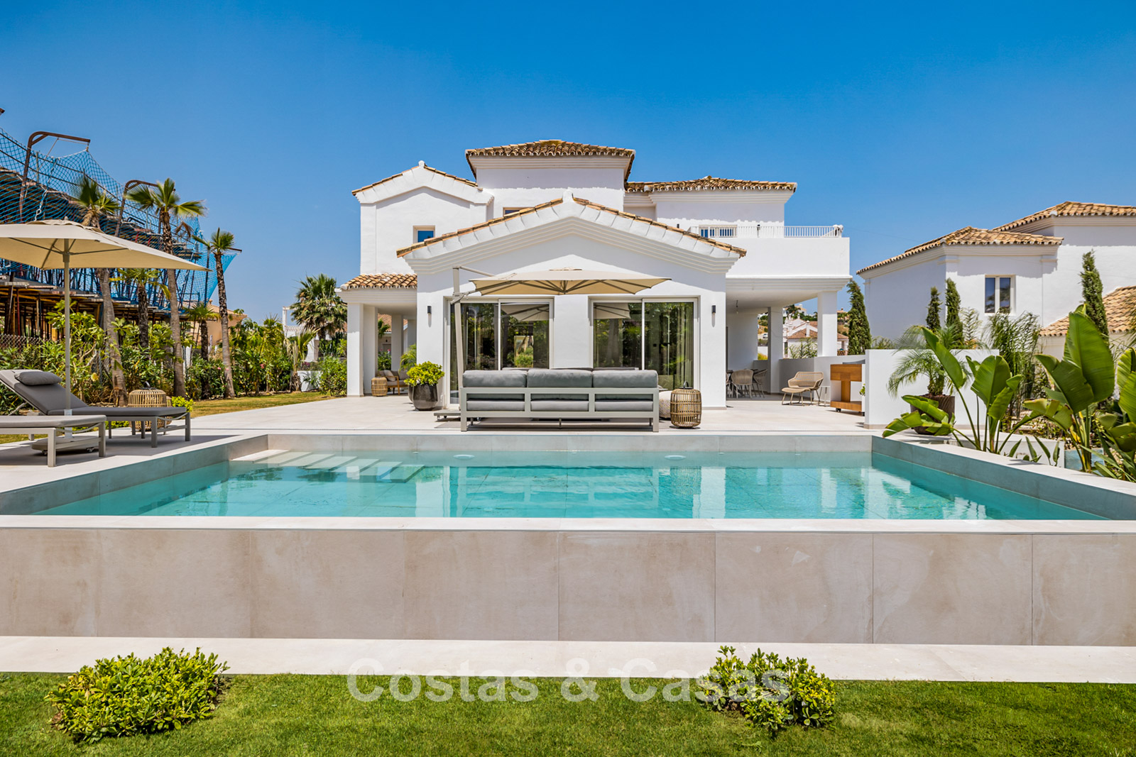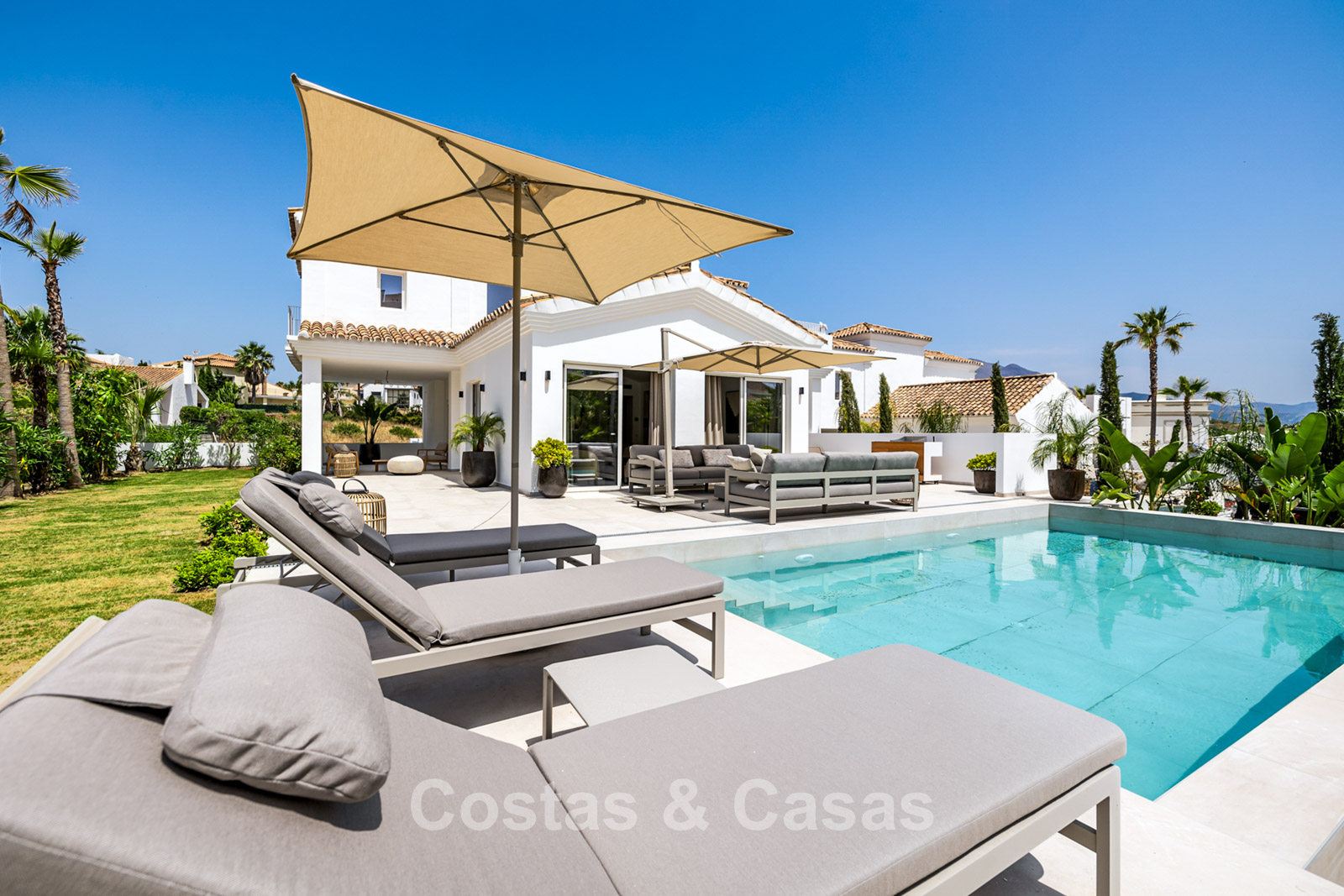 Located in a quiet, residential area, just 400 meters from the beach and a trendy beach club, and a few minutes' drive from an 18-hole golf course. The port of La Duquesa and the beachside village of Sabinillas, with its numerous bistros and restaurants, are a 15- to 20-minute drive away. Estepona is approximately a 15-minute drive away, while Puerto Banus and Marbella are approximately 35 minutes away.