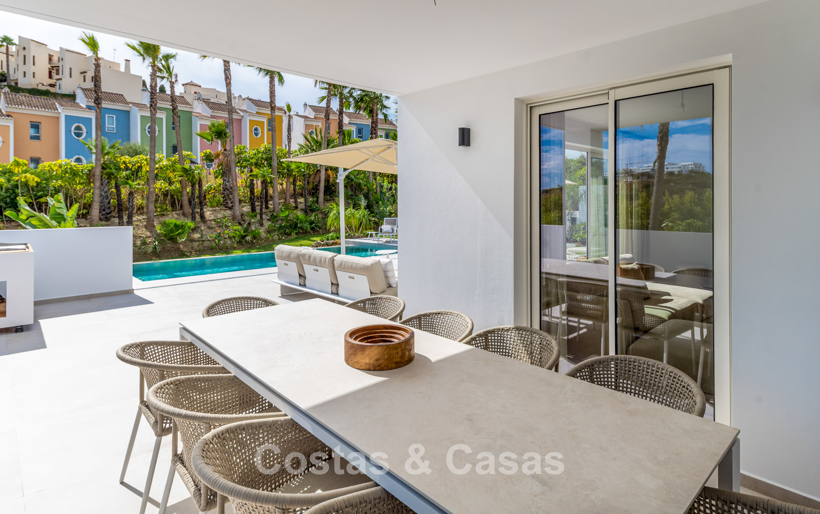 Other features: Air conditioning for cooling and heating. Custom-built wardrobes. Double glazing. Alarm system. Automatic irrigation system.