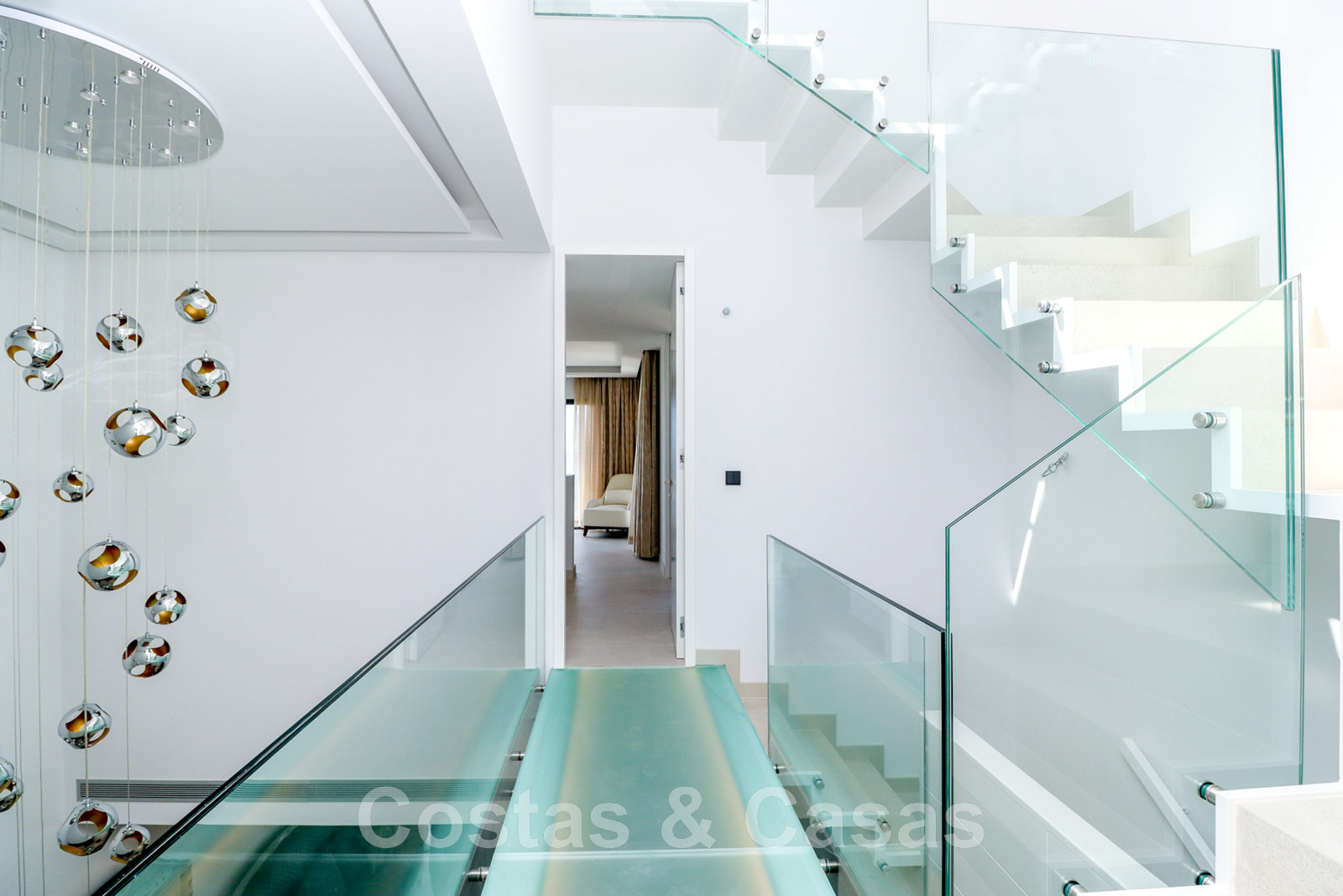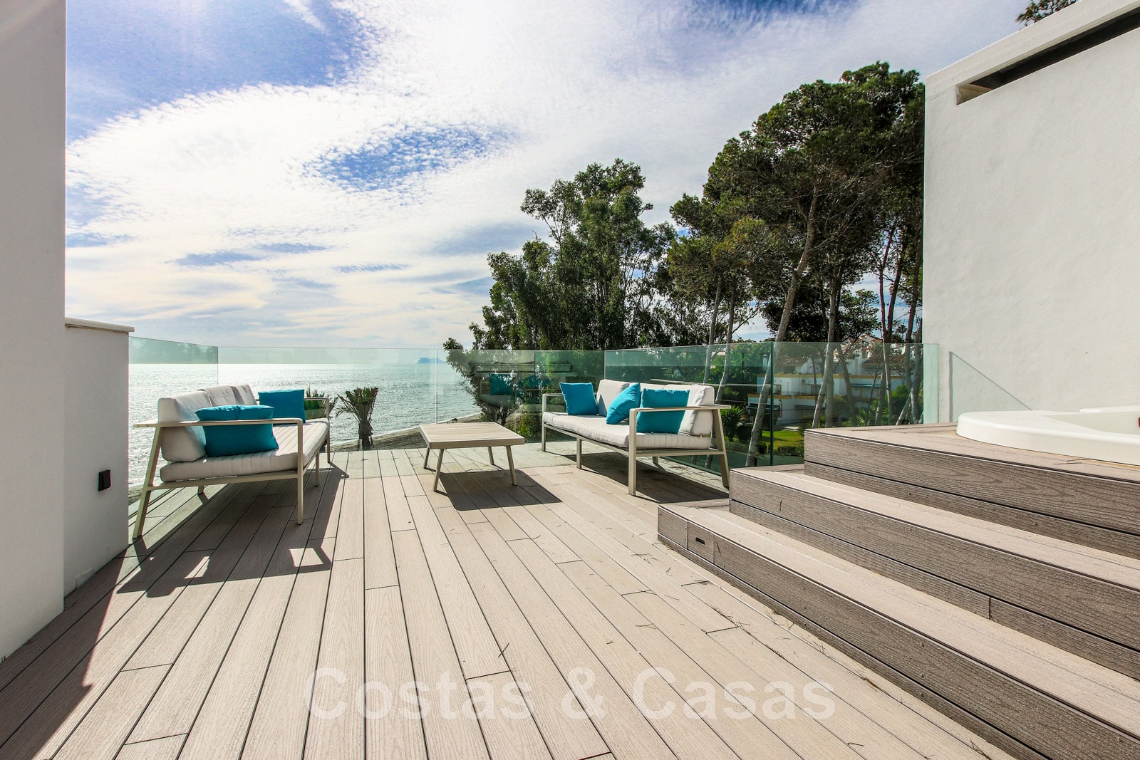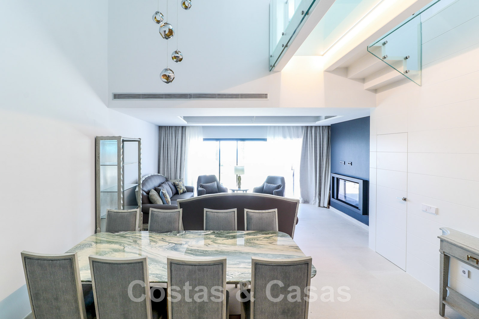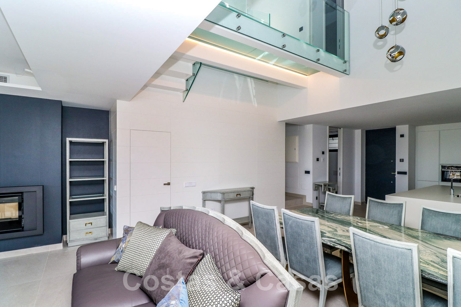 Other features: Air conditioning for cooling and heating. Underfloor heating. Fireplace. Custom-made wardrobes. Glass balustrades around the terra.
