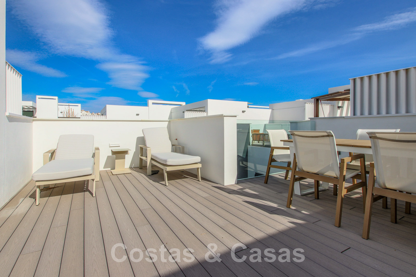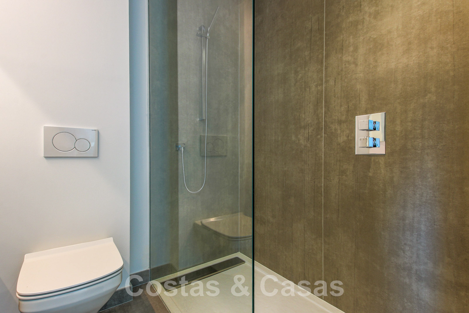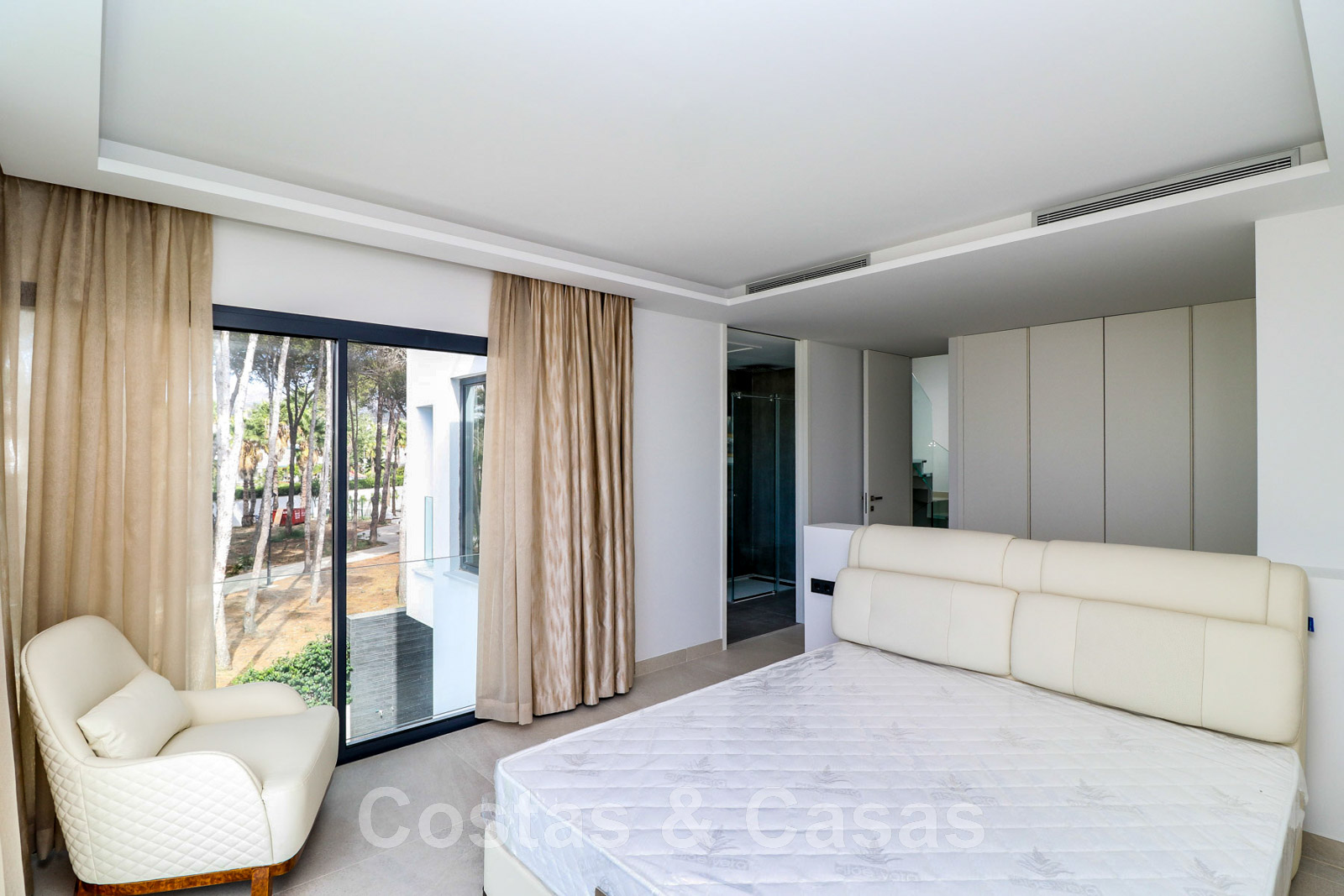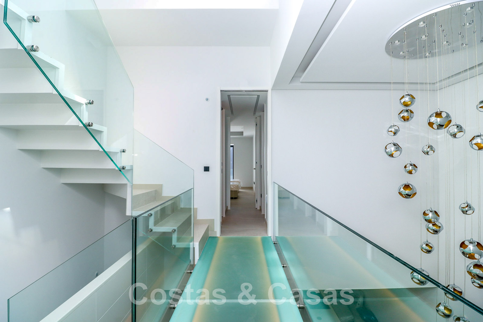 Other features: Air conditioning for cooling and heating. Underfloor heating. Fireplace. Custom-made wardrobes. Glass balustrades around the terra.