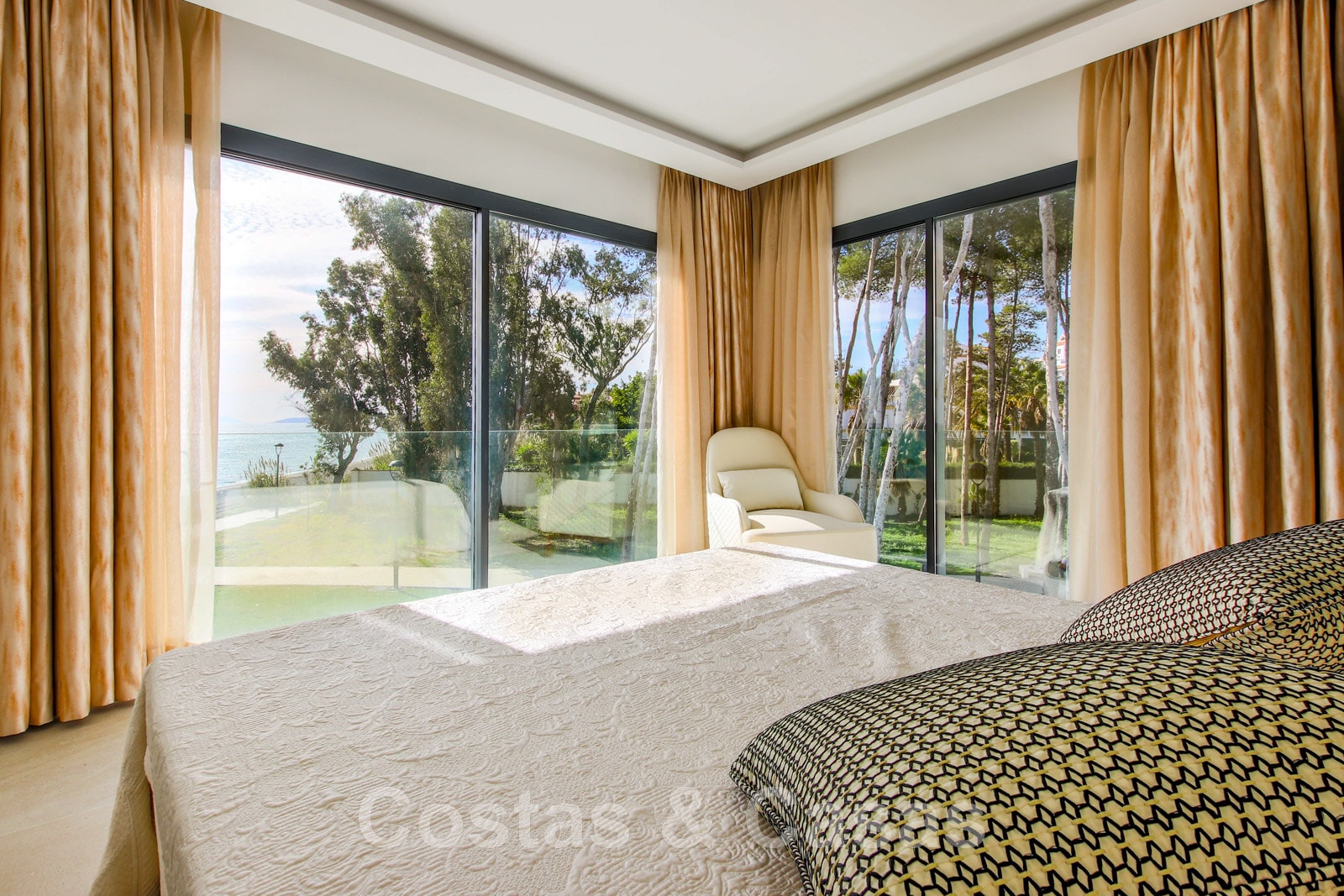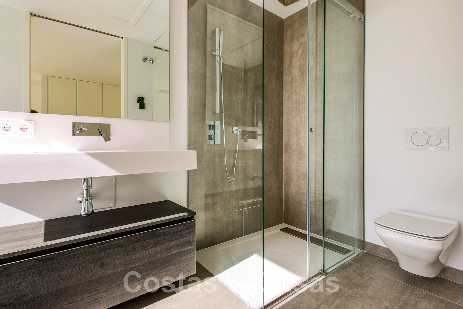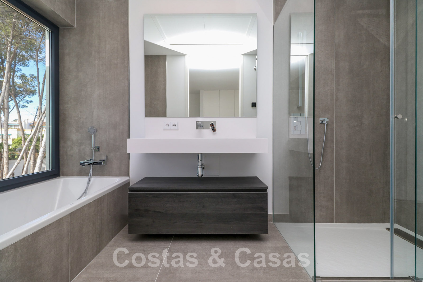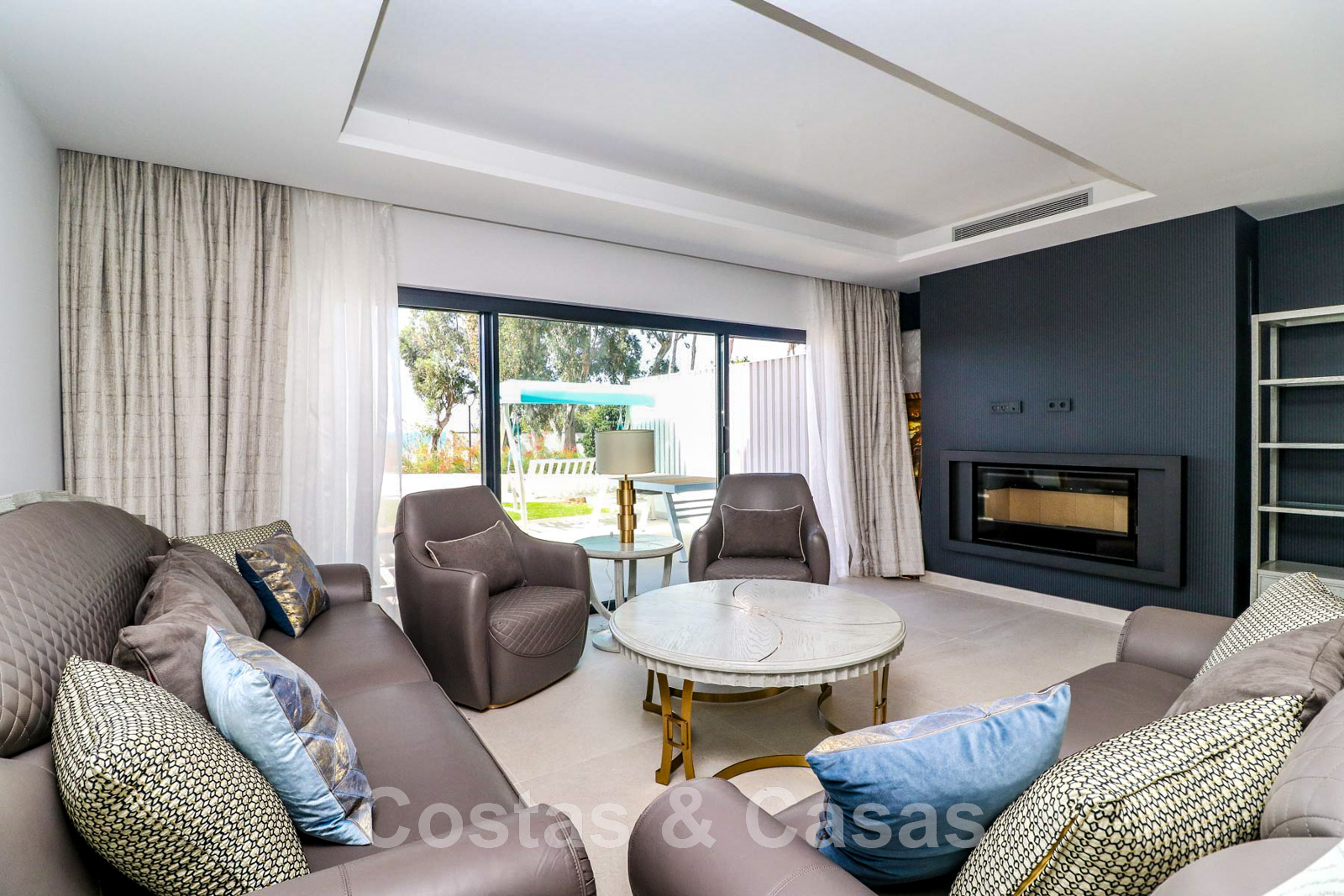 Other features: Air conditioning for cooling and heating. Underfloor heating. Fireplace. Custom-made wardrobes. Glass balustrades around the terra.