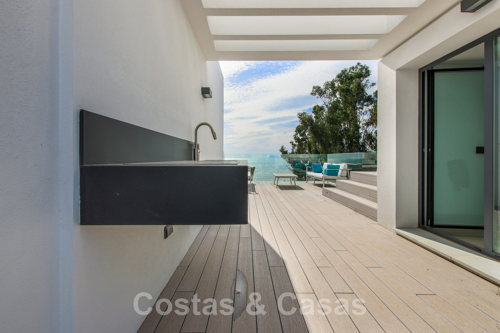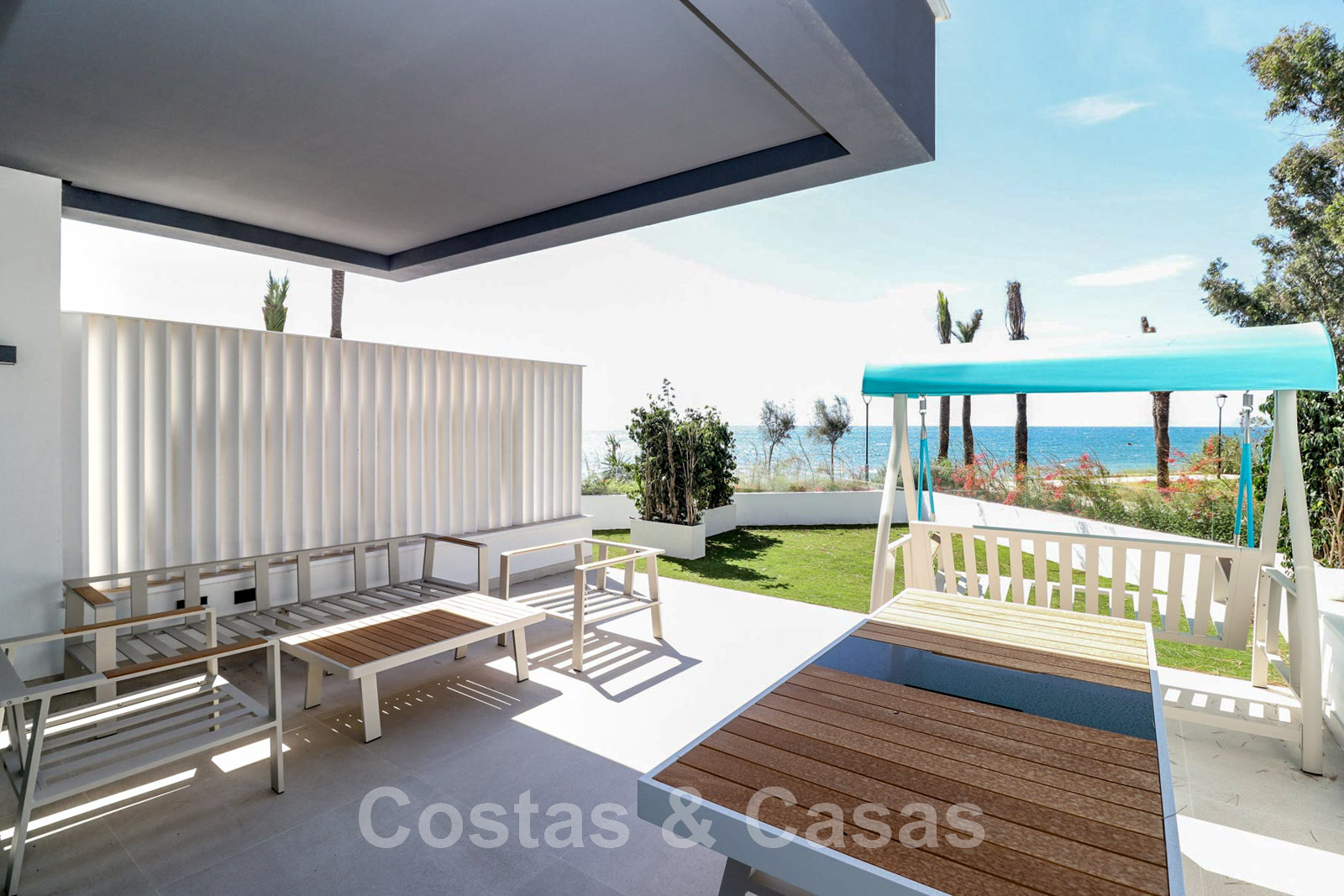 Advanced, frontline beach luxury townhouse for sale within walking distance of Estepona