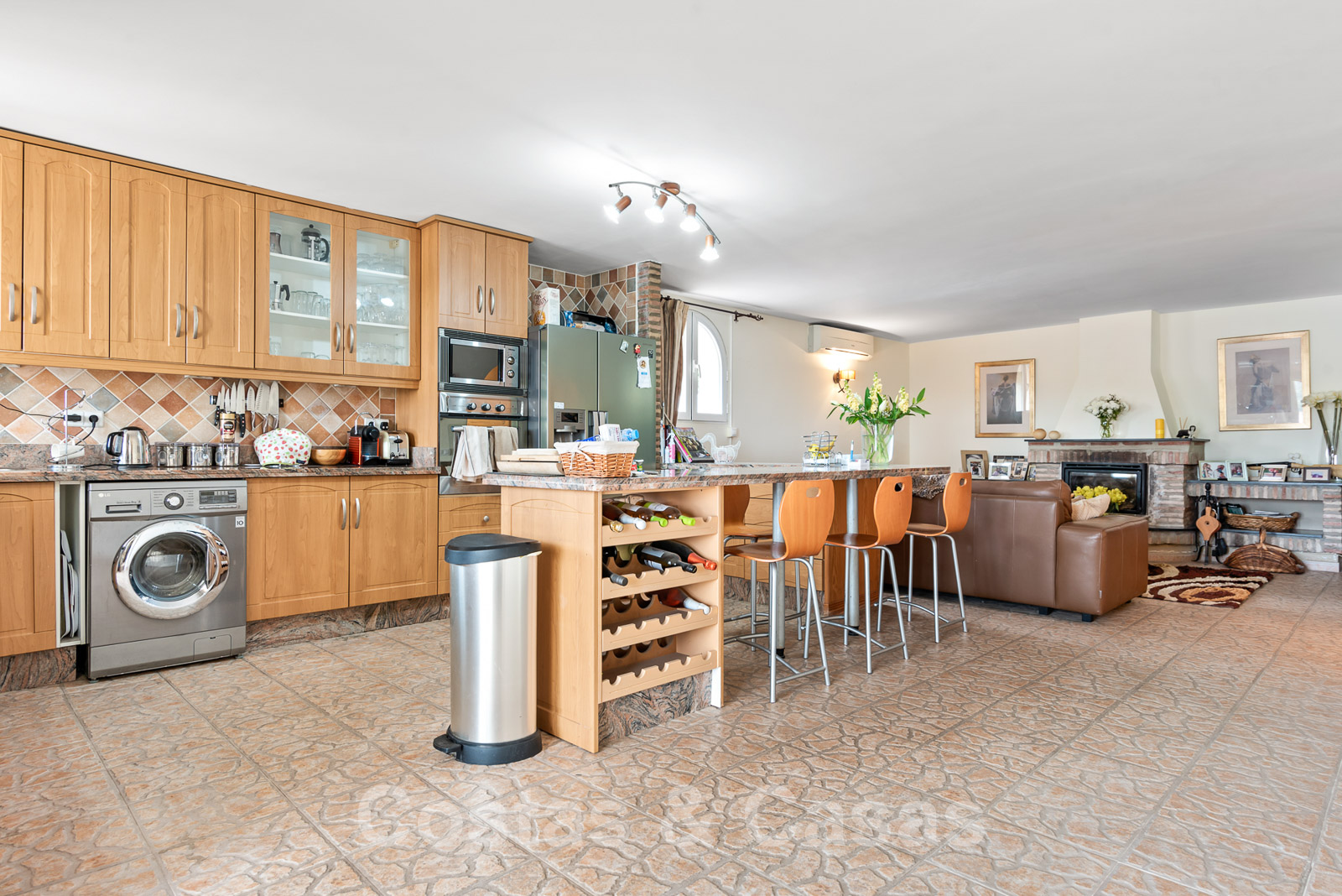 Fully equipped kitchen with seating island, which connects to the lounge thanks to an open character.