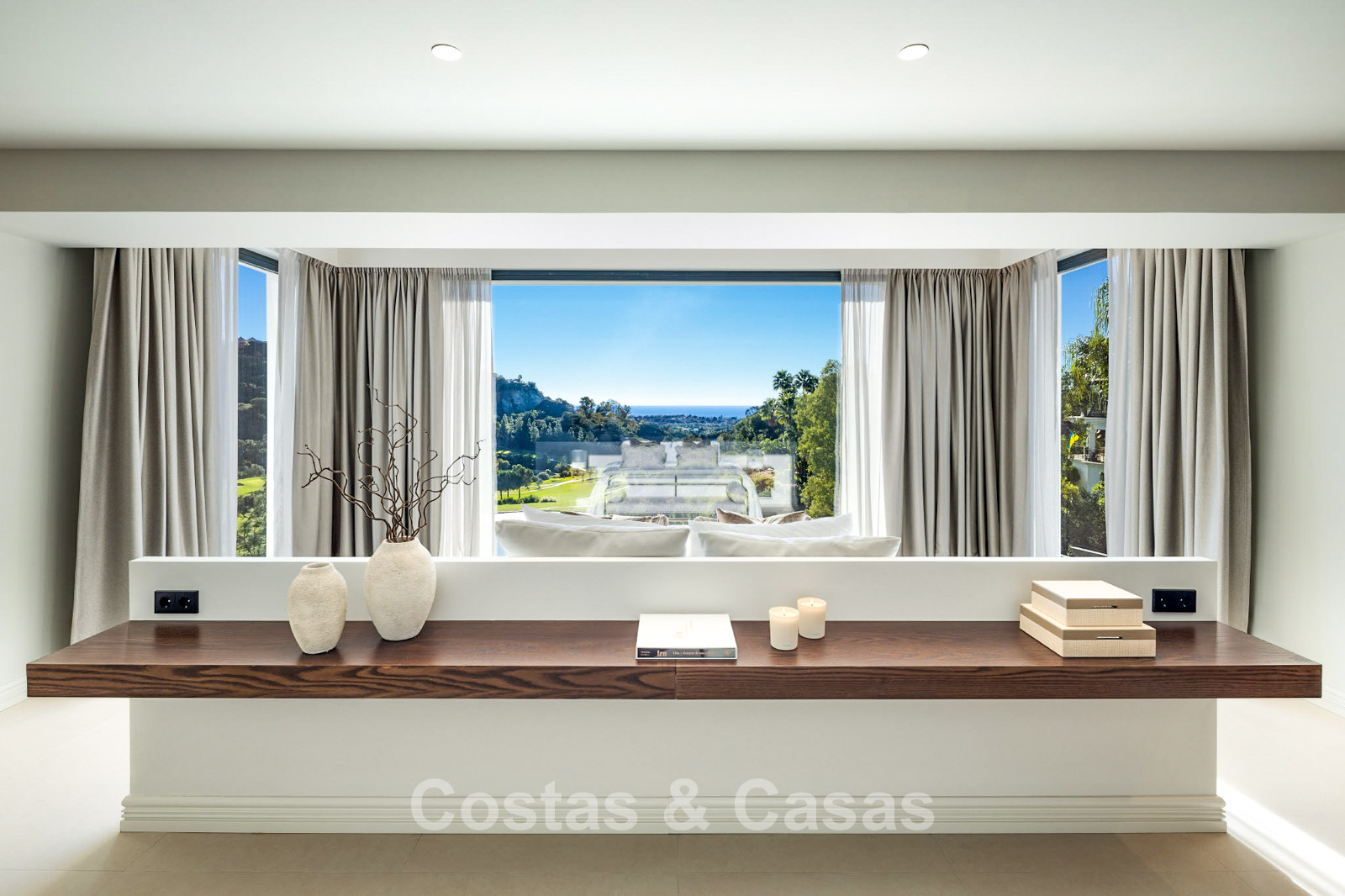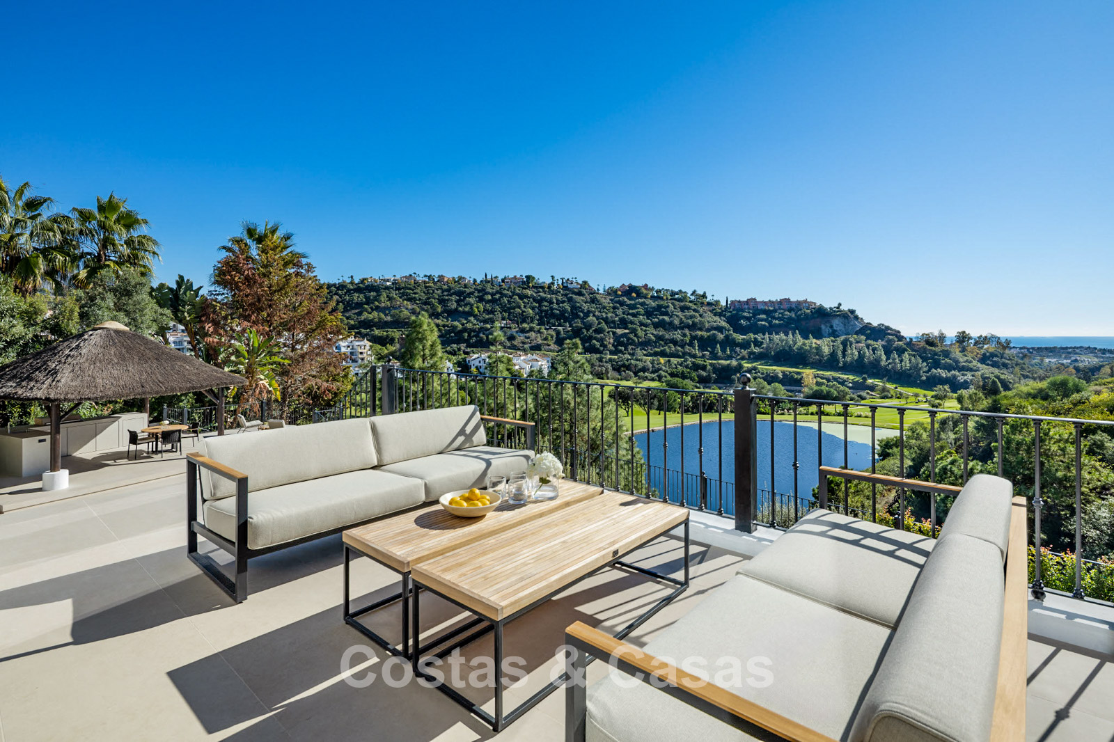 Uninterrupted views of the sea, golf course, lake and mountains