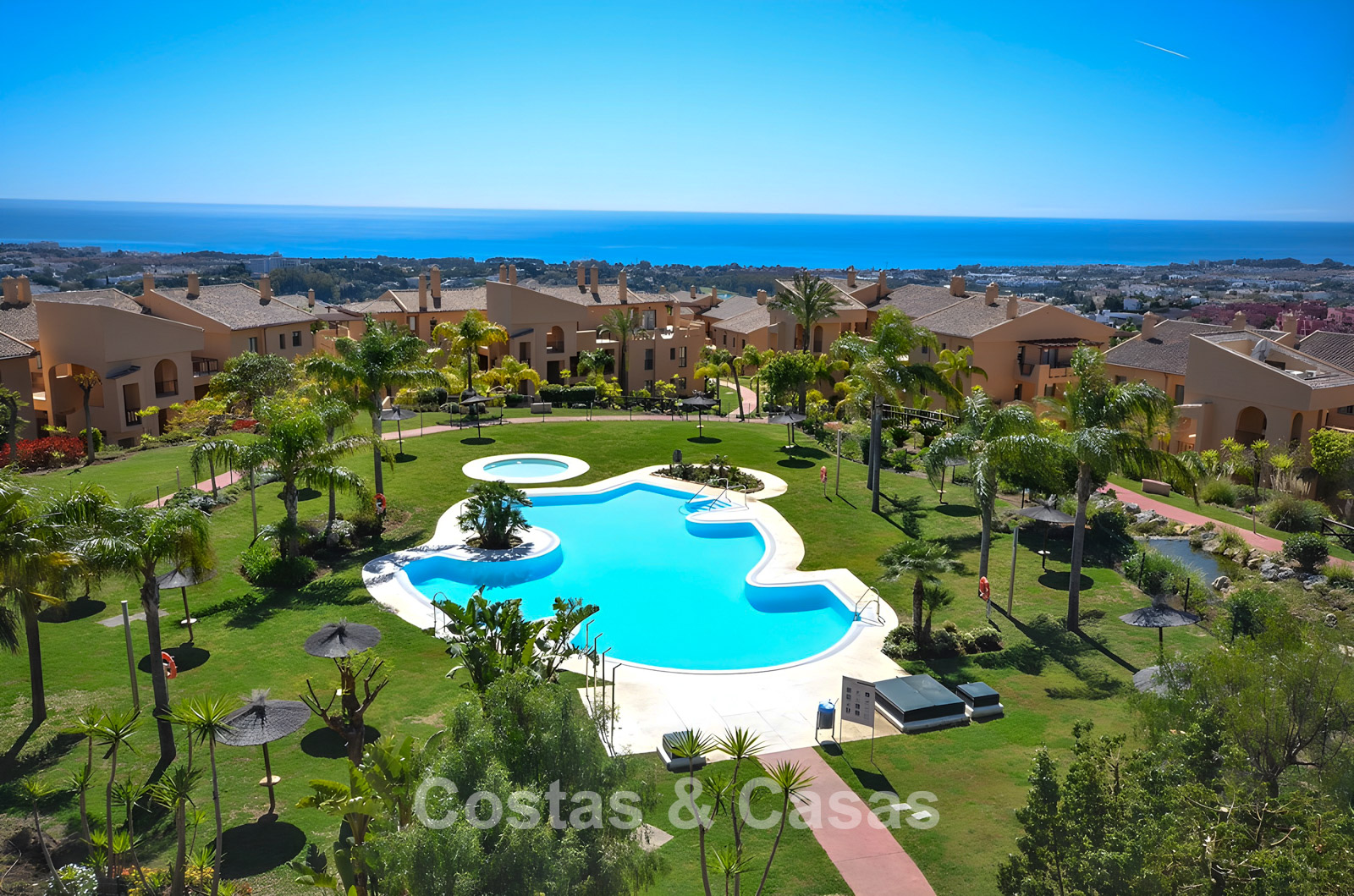 Located within a secure gated urbanisation with permanent security and concierge service, surrounded by greenery. Several renowned golf courses are nearby, including Atalaya Golf, El Paraíso and Los Arqueros. The famous Golf Valley of Nueva Andalucía, offering a wide selection of top-class courses, is only a short drive away. The charming mountain village of Benahavís is just minutes away and is well known for its excellent gastronomy. The lively marina of Puerto Banús and the beaches are approximately a 15-minute drive away, while Marbella town centre can be reached in about 20 minutes. The community features beautifully landscaped tropical gardens, four swimming pools, including an impressive infinity pool heated year-round to 27°C, and soon a modern gym and a cosy social/co-working area.