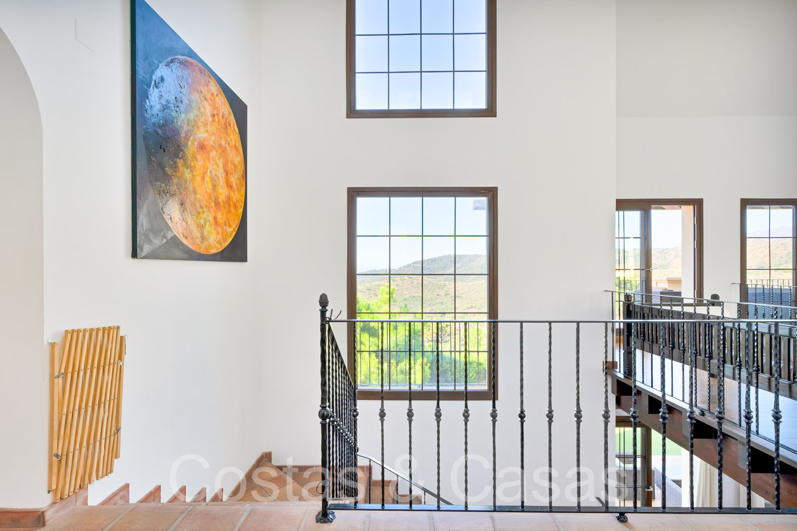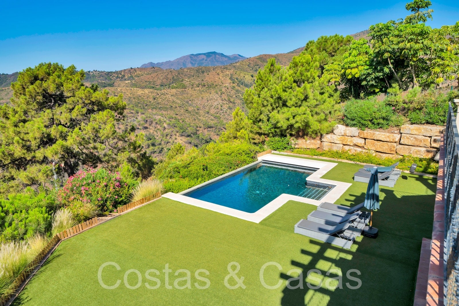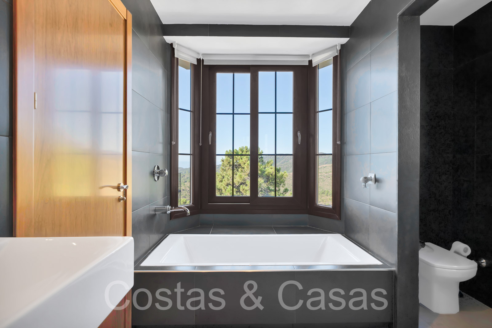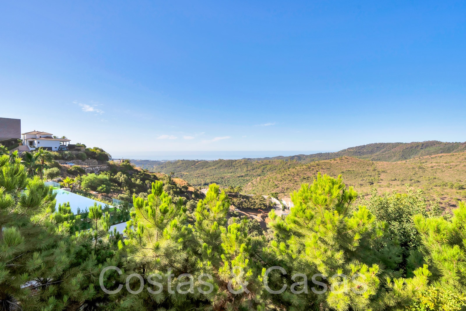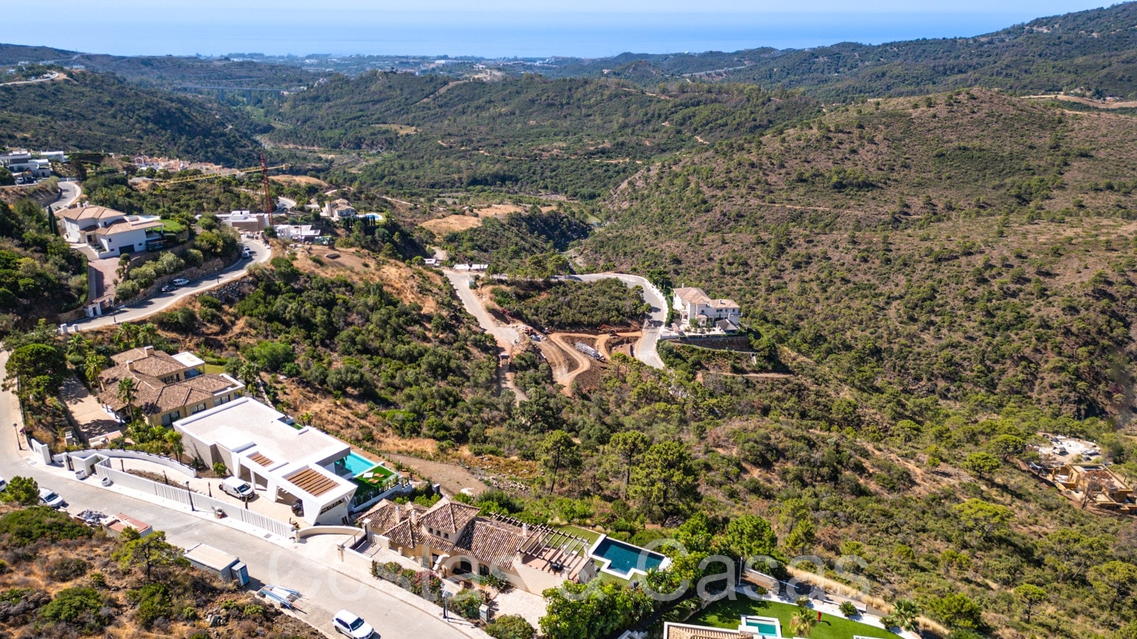 Situated in a peaceful, natural setting in an exclusive, gated residential community in the municipality of Benahavis. Gated urbanization with 24-hour security. 15 minutes’ drive from the beach and all amenities. Several golf courses can be reached within just a 10-minute drive. Thanks to its elevated position, the villa enjoys panoramic views of the valley with the mountains and the sea.