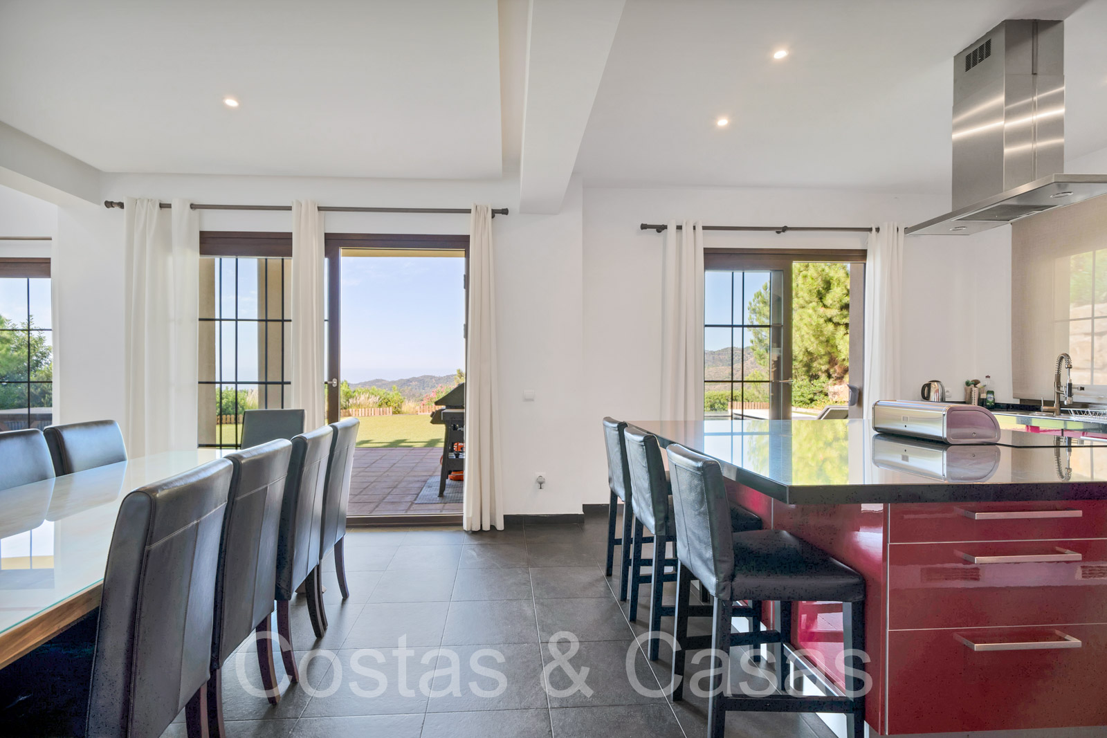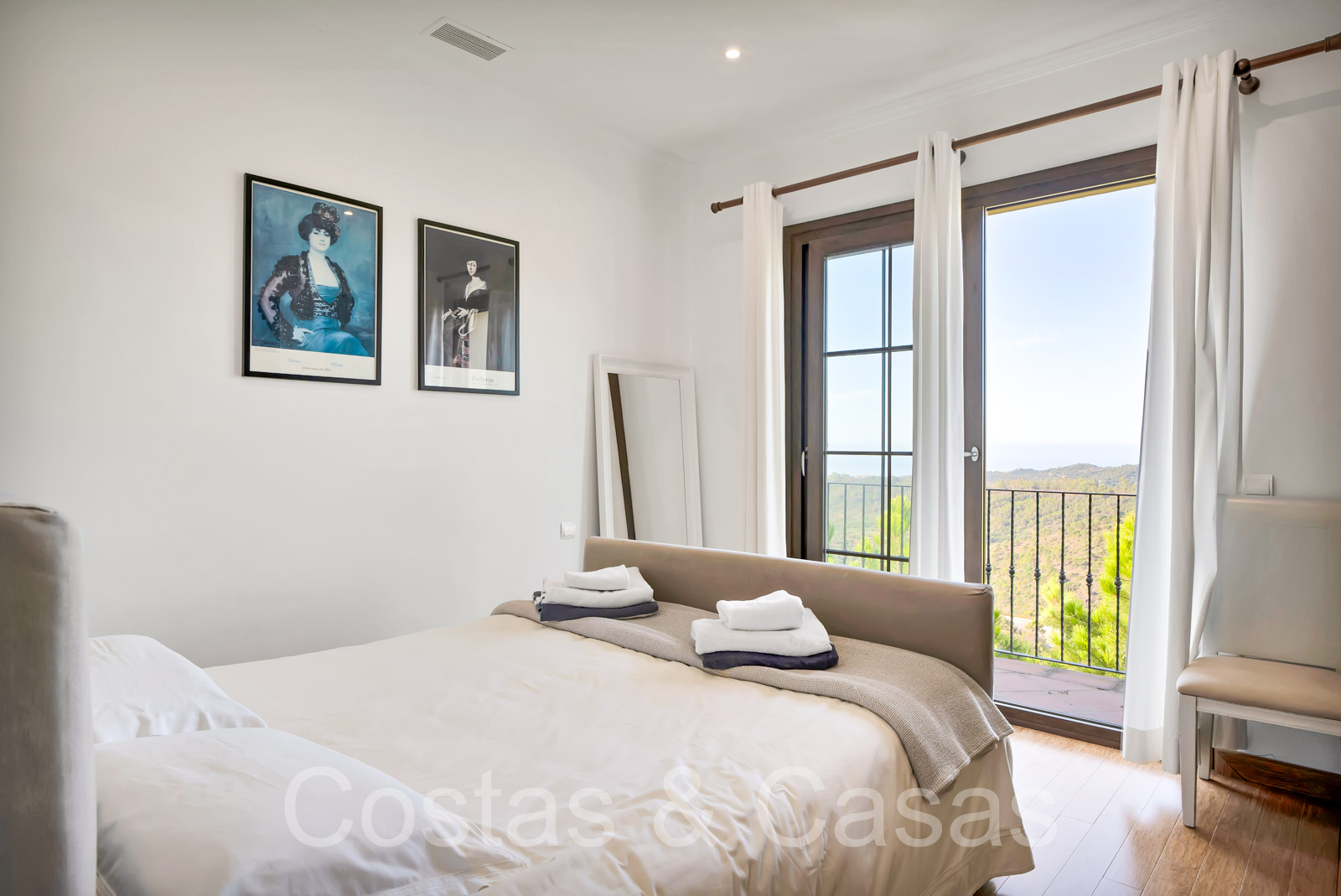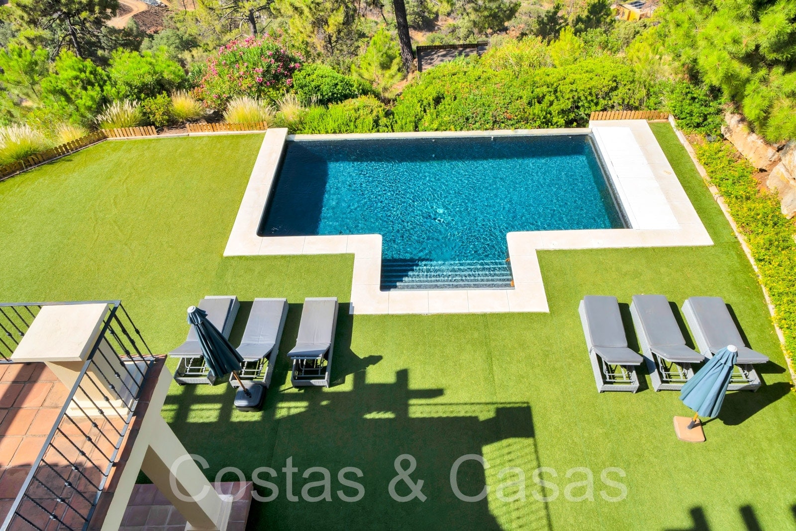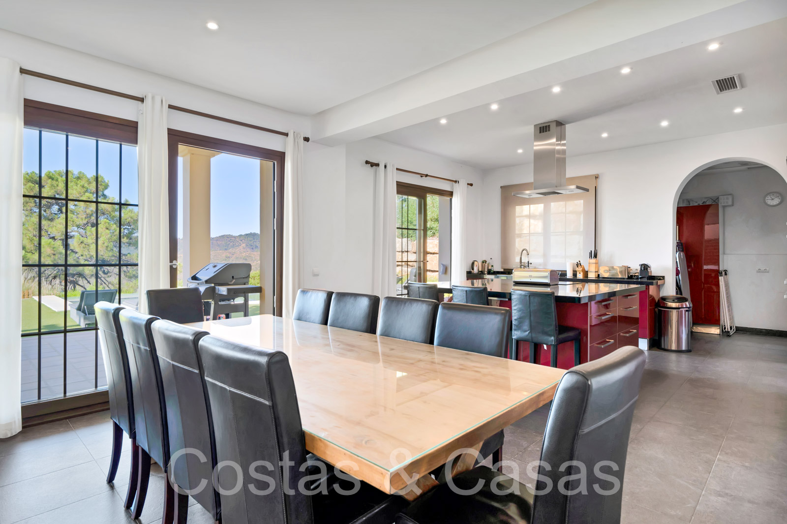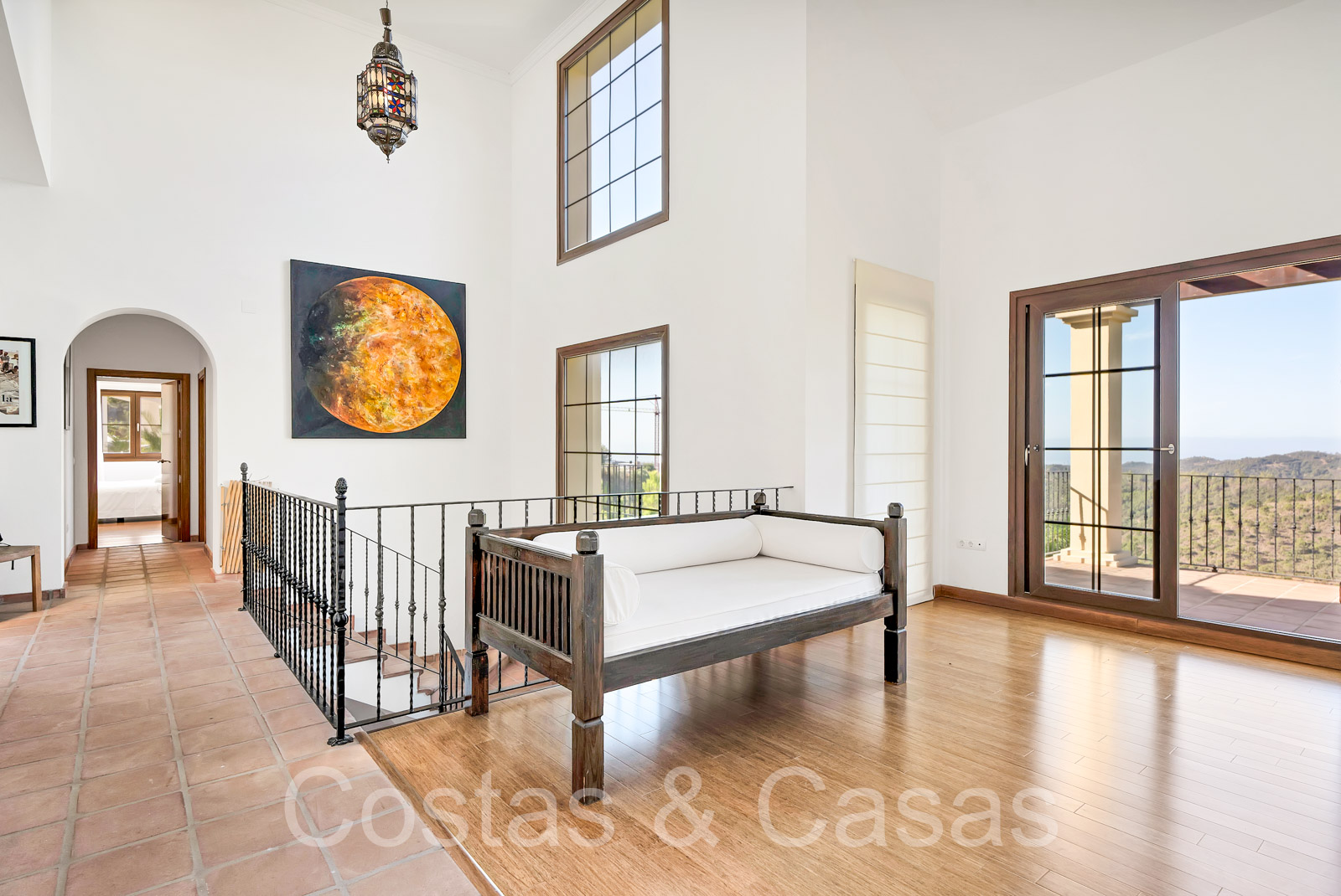 Situated in a peaceful, natural setting in an exclusive, gated residential community in the municipality of Benahavis. Gated urbanization with 24-hour security. 15 minutes’ drive from the beach and all amenities. Several golf courses can be reached within just a 10-minute drive. Thanks to its elevated position, the villa enjoys panoramic views of the valley with the mountains and the sea.