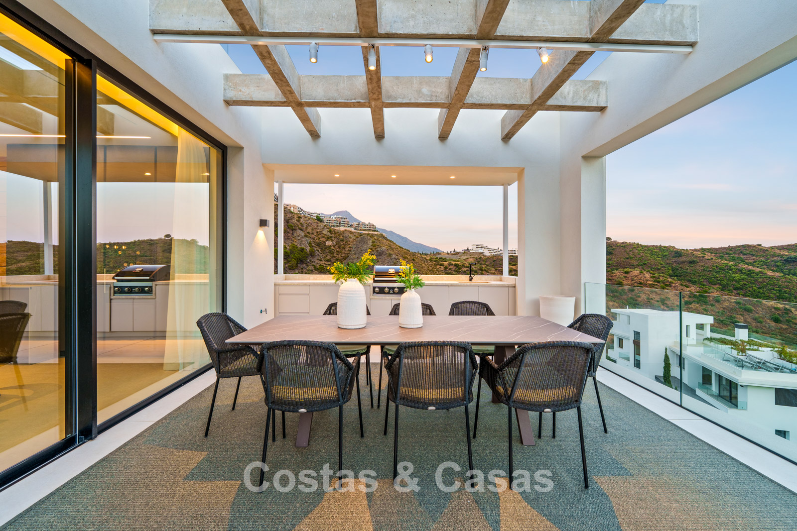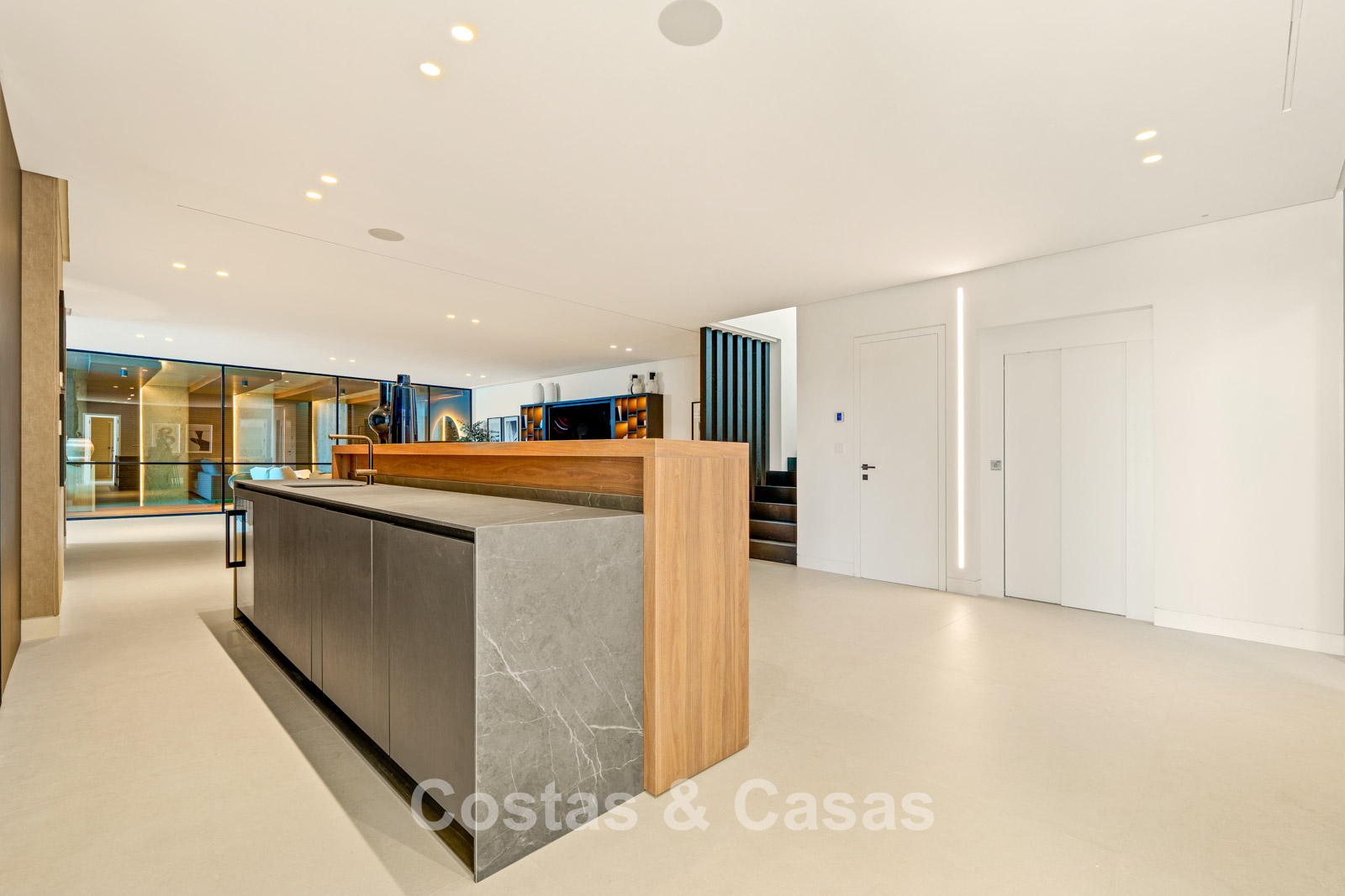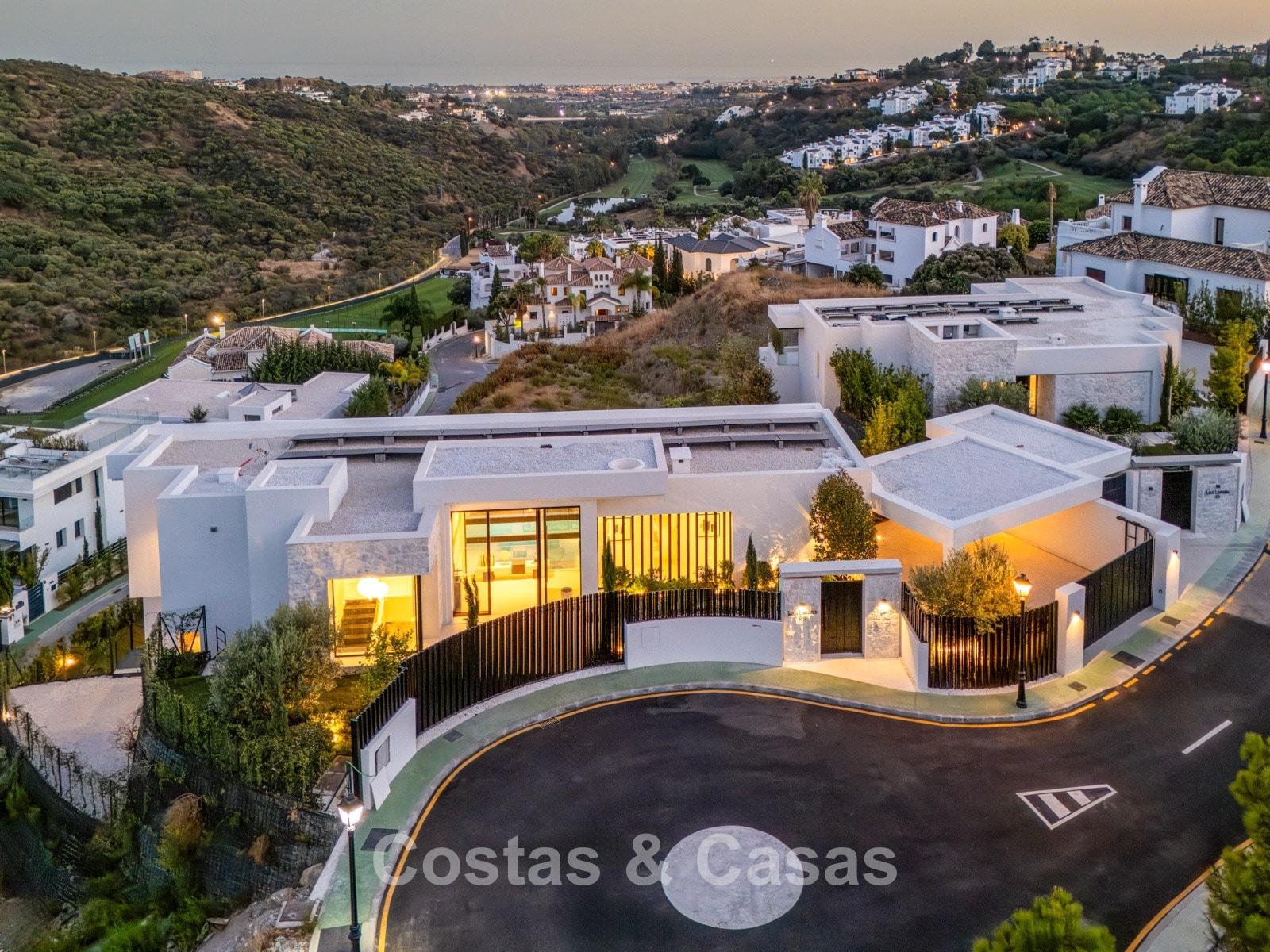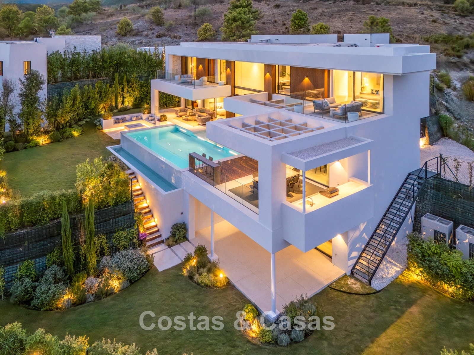 Other features: Elevator to all floors. Air conditioning for cooling and heating. Underfloor heating throughout the villa. Gas fireplace. Home automation system. Double glazing. Glass railings around the terrace. Built-in wardrobes. LED lighting inside and out. Solar panels. Alarm system. Automatic irrigation system.
