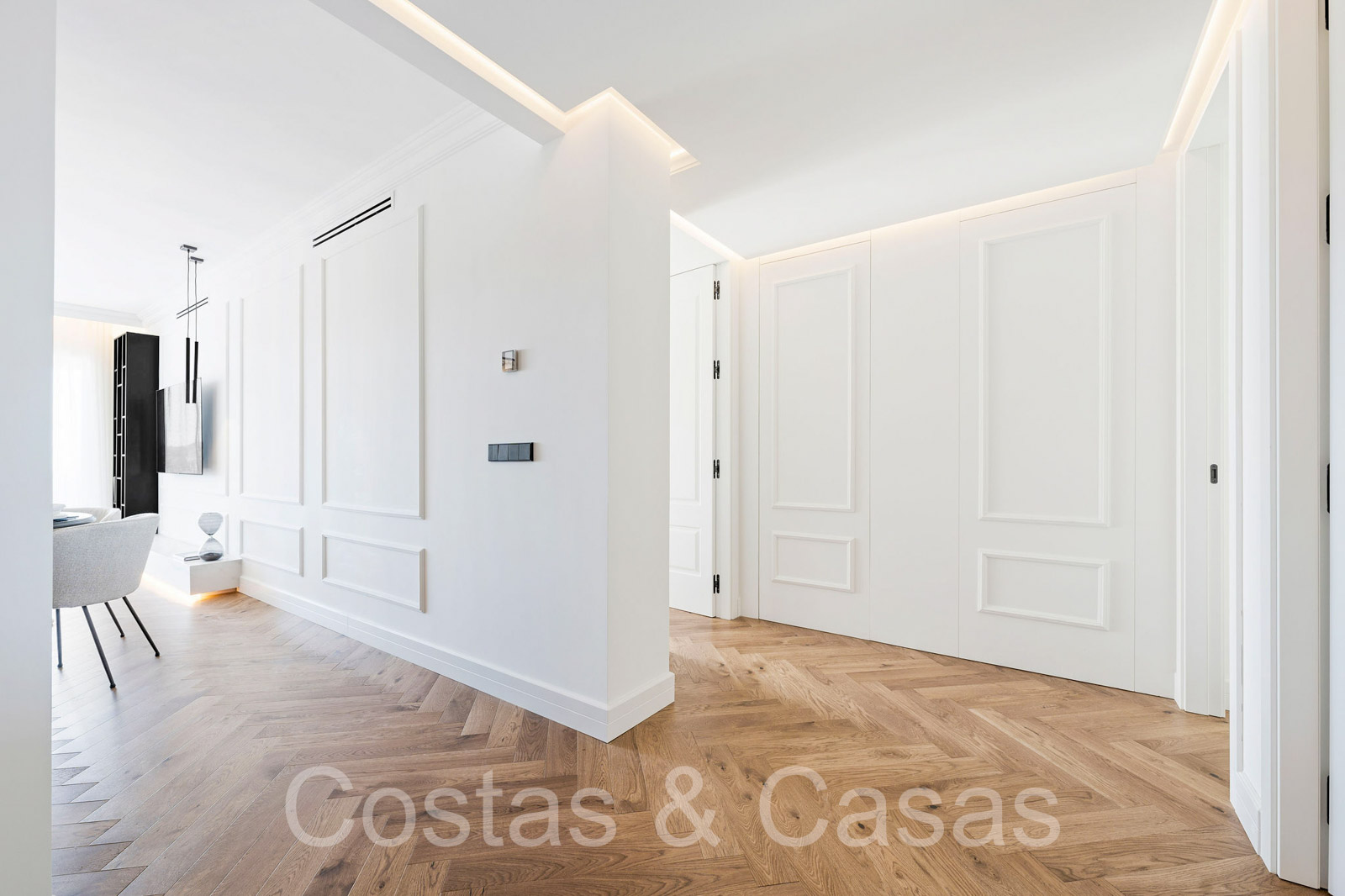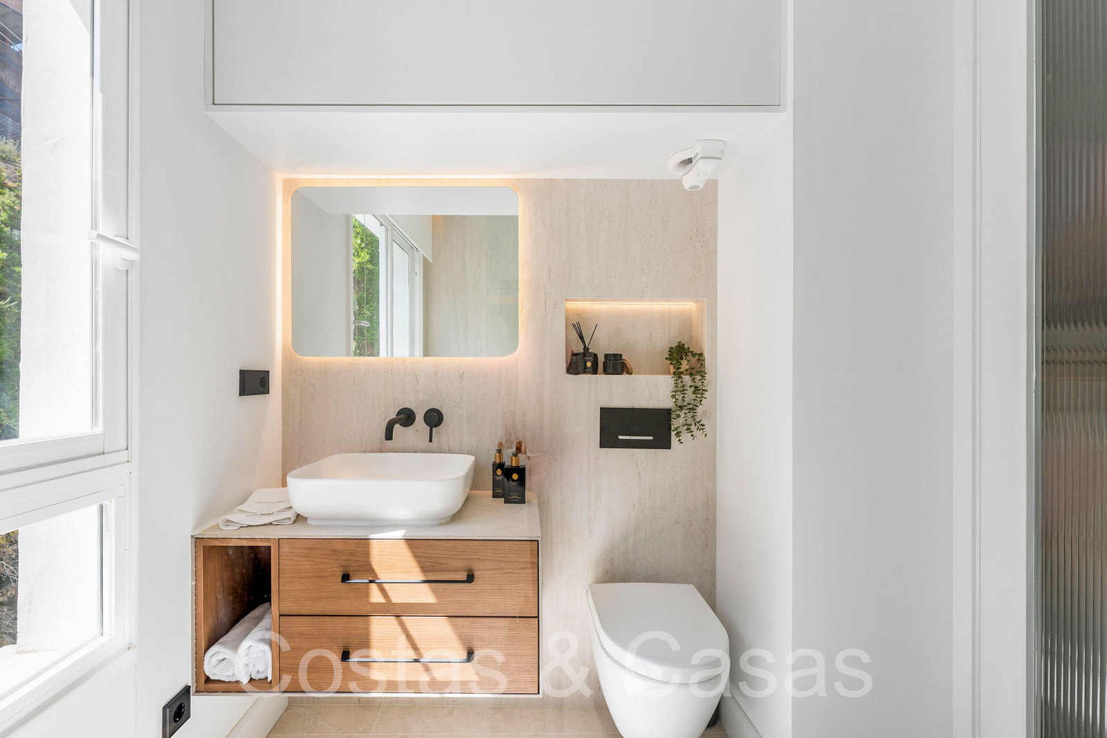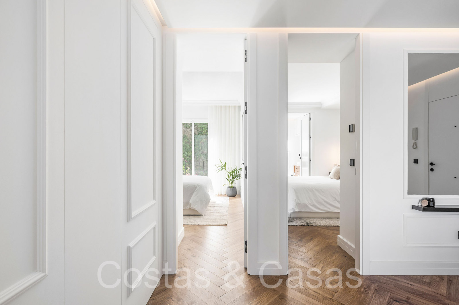 Spacious “Top-floor” apartment renovated with quality materials. Facing south. Views of the valley, the mountain landscape and the Mediterranean Sea. A semi-covered terrace is equipped with a lounge and a barbecue area. Designed with attention to a superior finish. Tall sliding windows with recessed frames provide a seamless flow between the indoor and outdoor spaces and also generate plenty of natural daylight. Comfortable layout to optimize space and functionality. Practical kitchen/diner, equipped with high-quality appliances and stylish finishes. 3 bedrooms, 3 bathrooms and separate toilet. High-quality hardwood floors in herringbone shape. Storage. Private parking for 1 car.