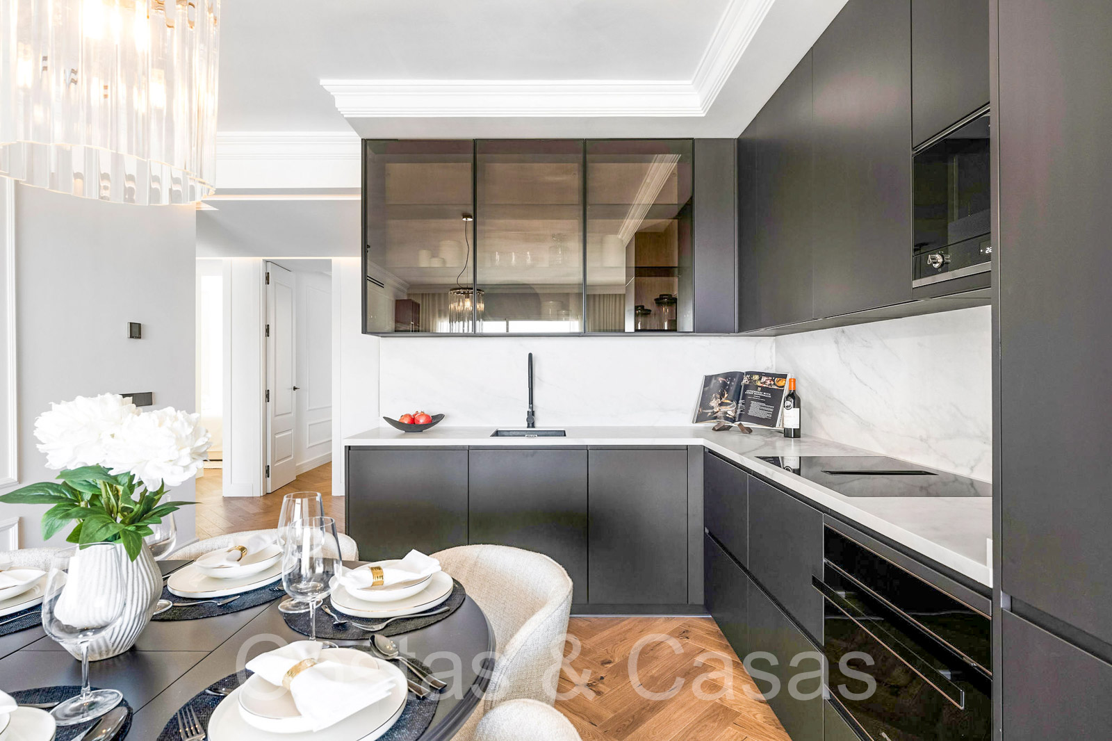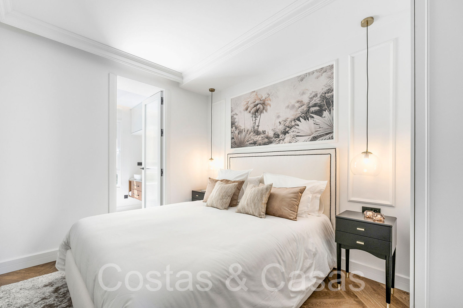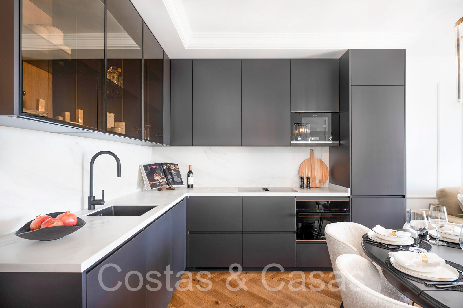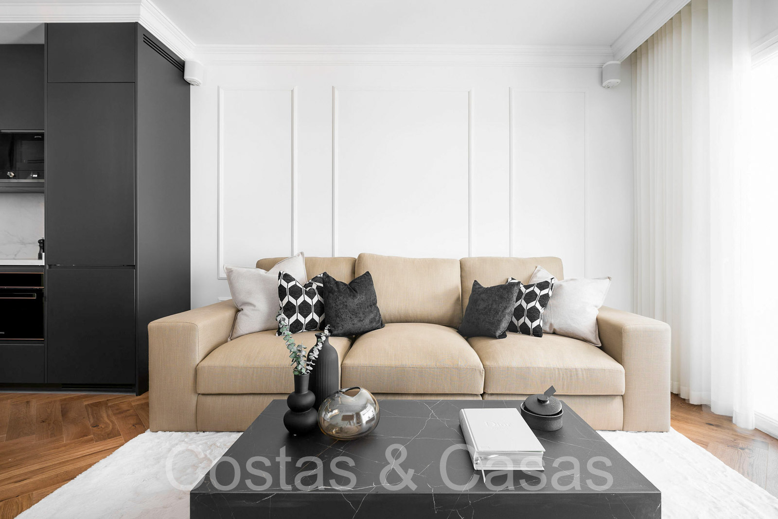 Spacious “Top-floor” apartment renovated with quality materials. Facing south. Views of the valley, the mountain landscape and the Mediterranean Sea. A semi-covered terrace is equipped with a lounge and a barbecue area. Designed with attention to a superior finish. Tall sliding windows with recessed frames provide a seamless flow between the indoor and outdoor spaces and also generate plenty of natural daylight. Comfortable layout to optimize space and functionality. Practical kitchen/diner, equipped with high-quality appliances and stylish finishes. 3 bedrooms, 3 bathrooms and separate toilet. High-quality hardwood floors in herringbone shape. Storage. Private parking for 1 car.