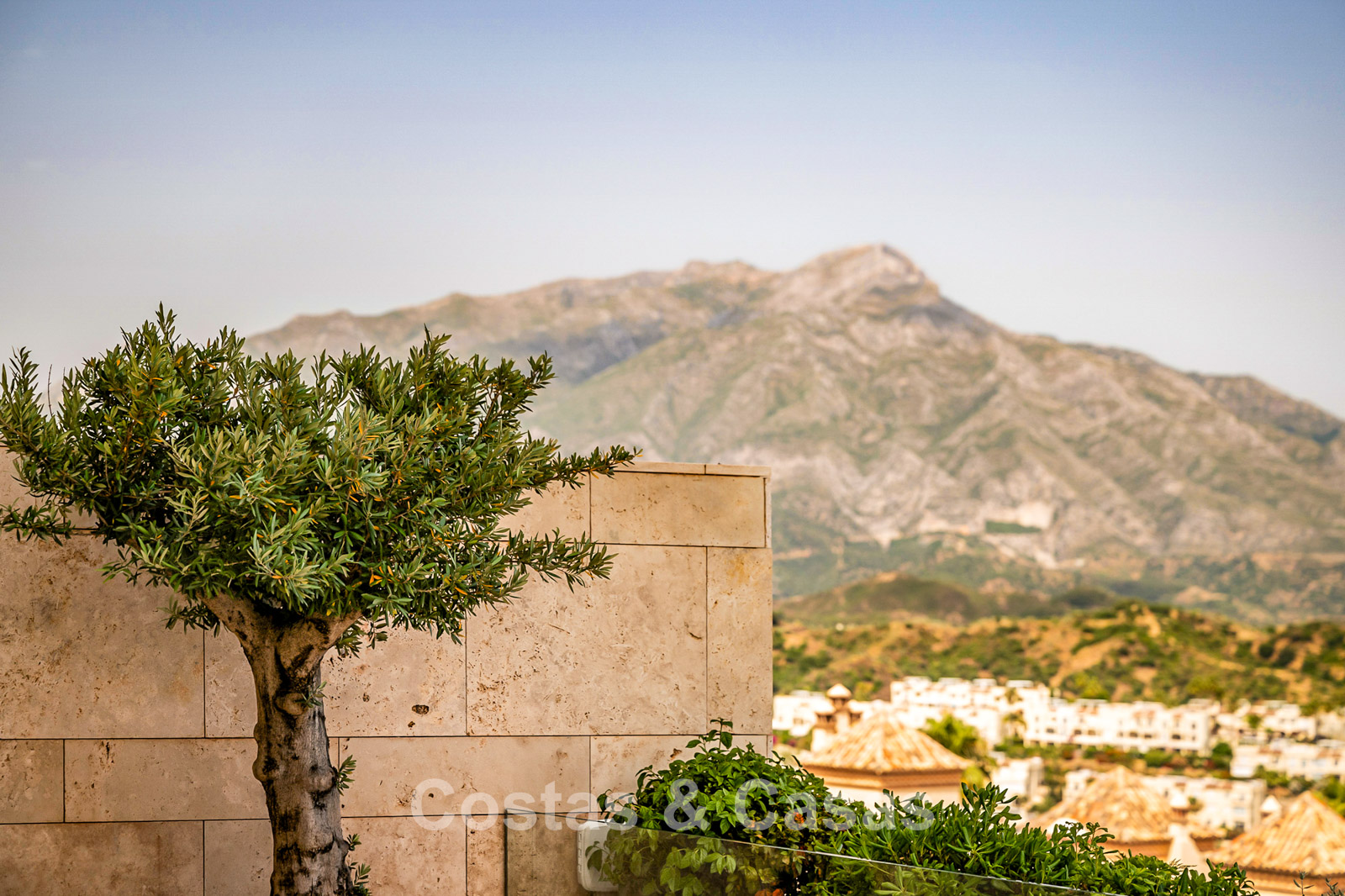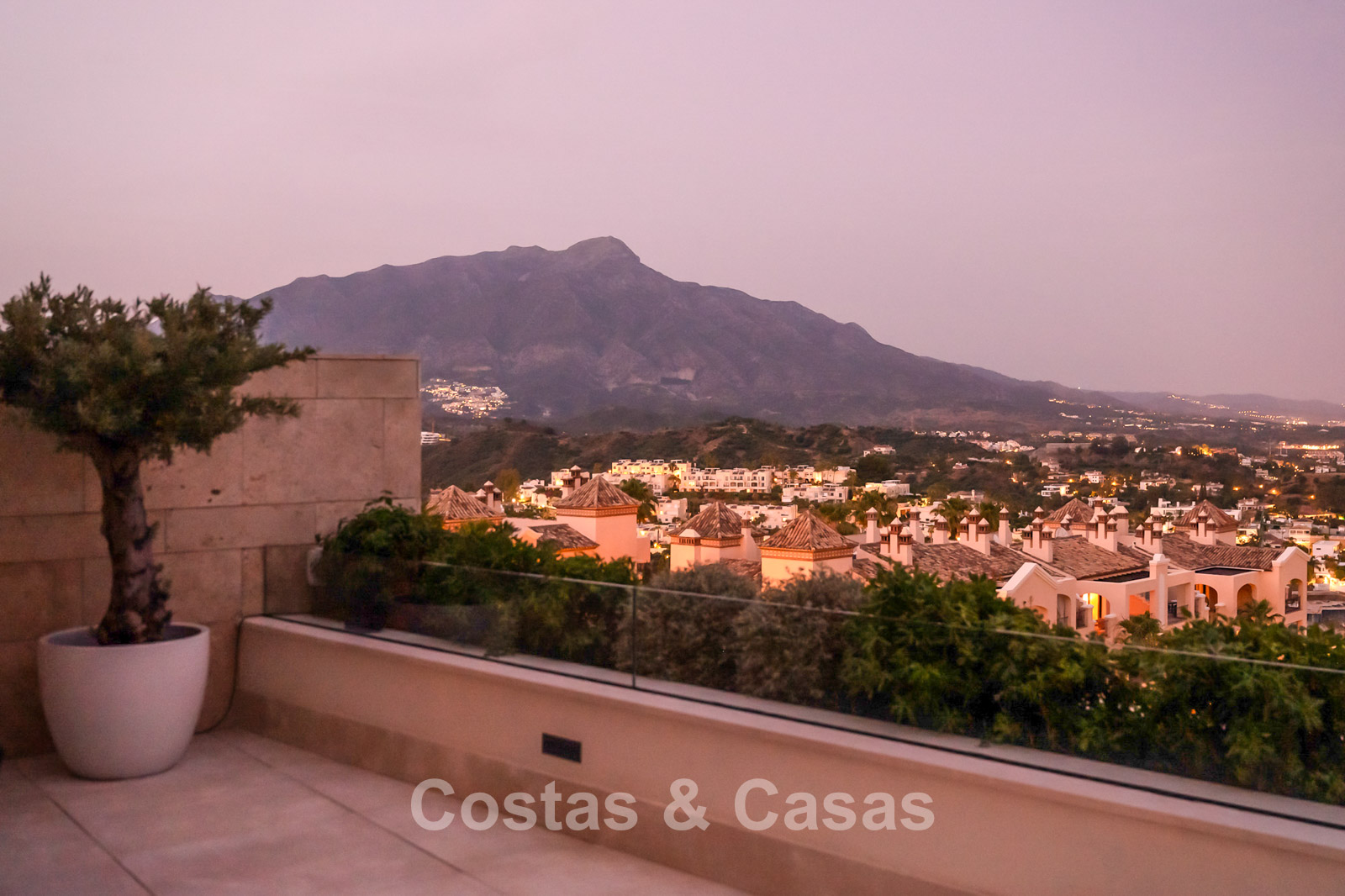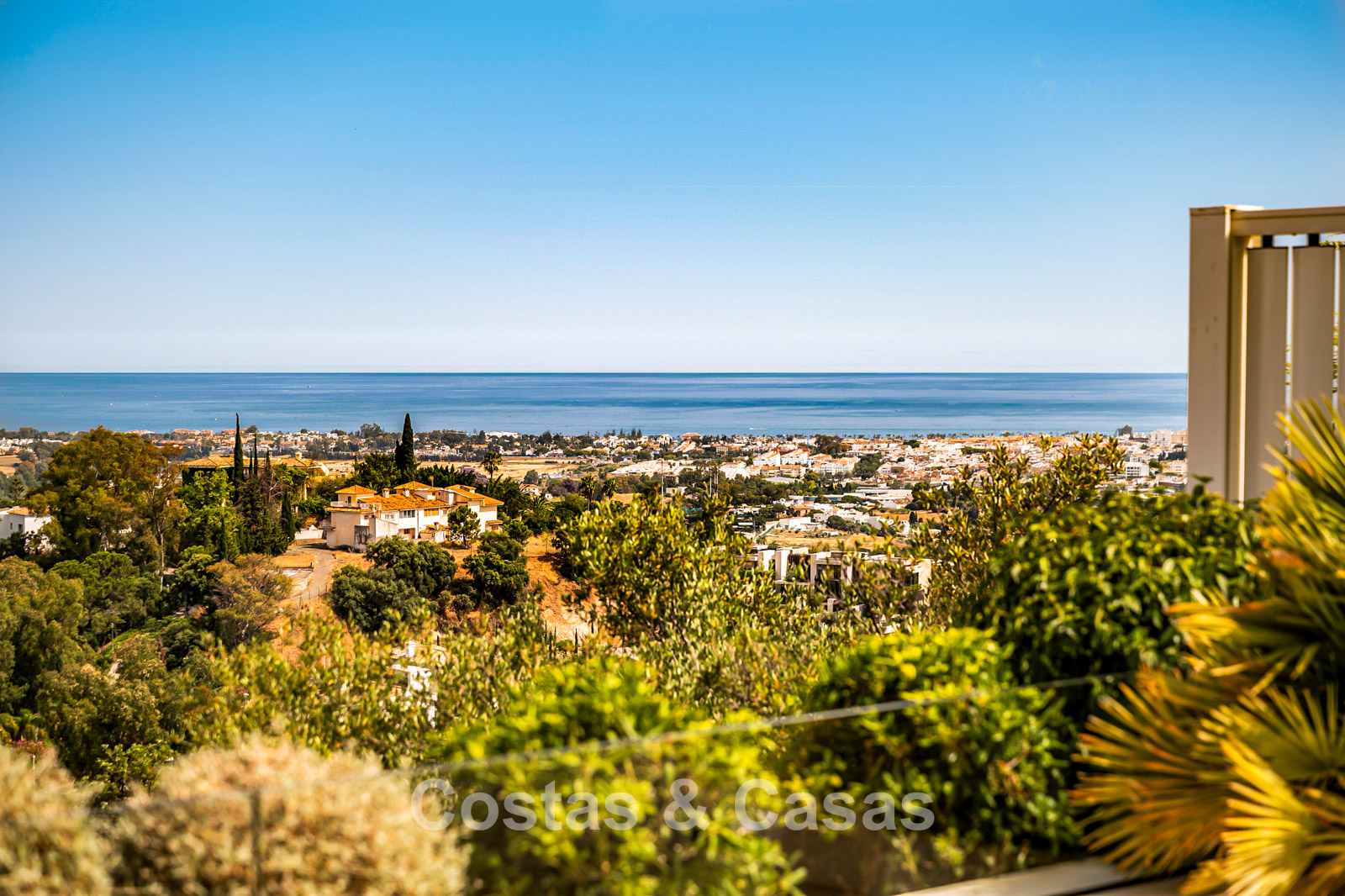 Panoramic views of La Concha, almost all of Marbella, and the sea.