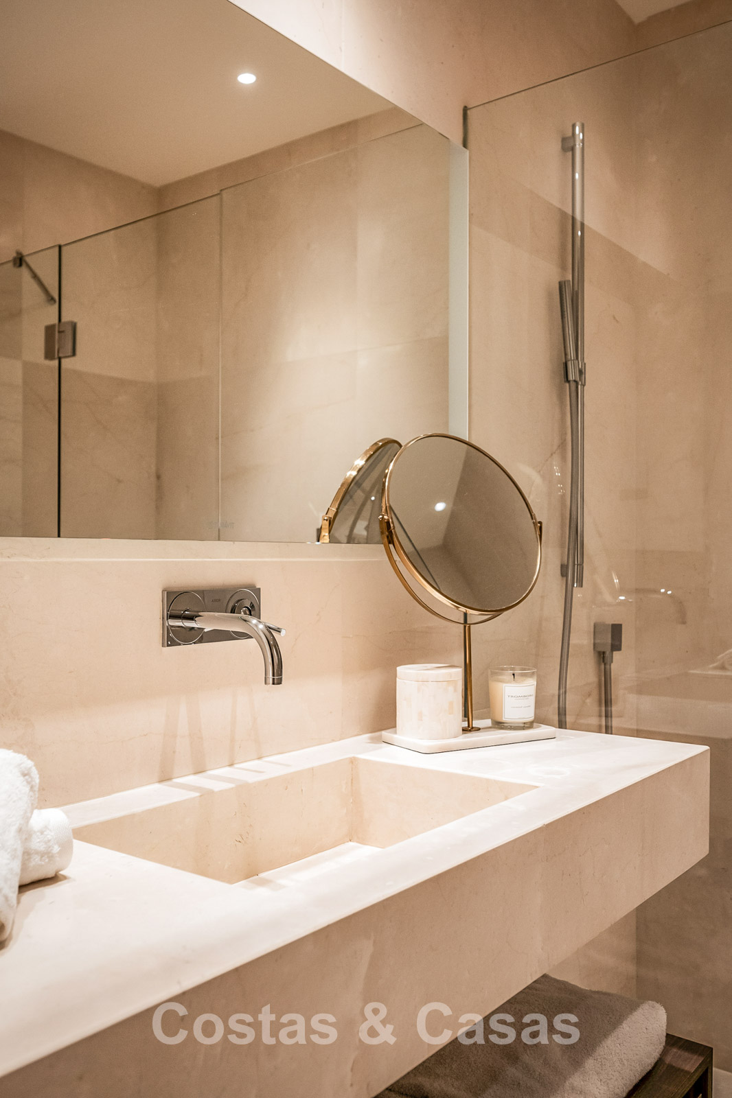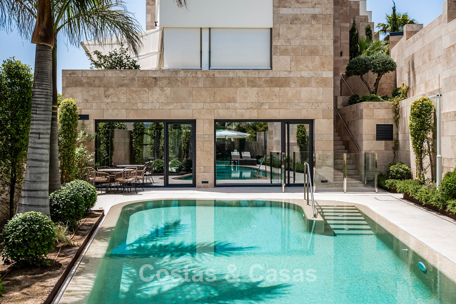 Additional features: Energy certificate: A Glass balustrades on terrace Air conditioning for cooling and heating Fireplace Aerothermal system for water heating Underfloor heating throughout Porcelain floors Home automation system Double glazing Electric shutters LED lighting Automatic sun awnings Built-in wardrobes Outdoor shower Alarm system with CCTV cameras.