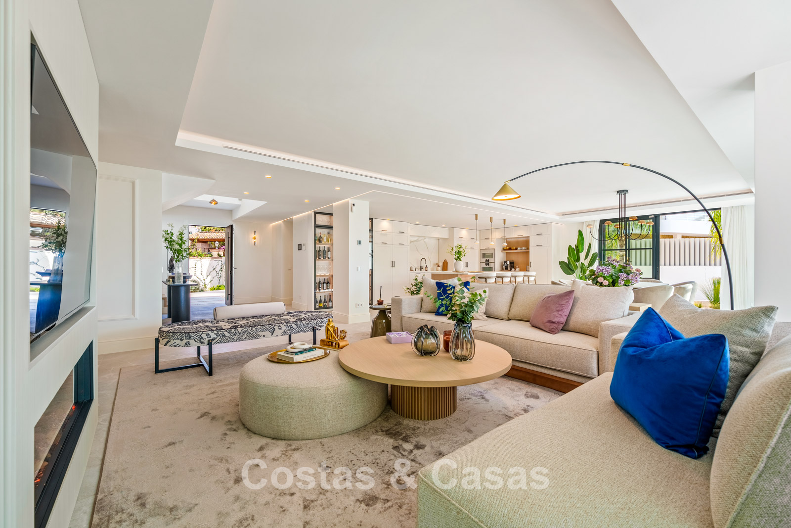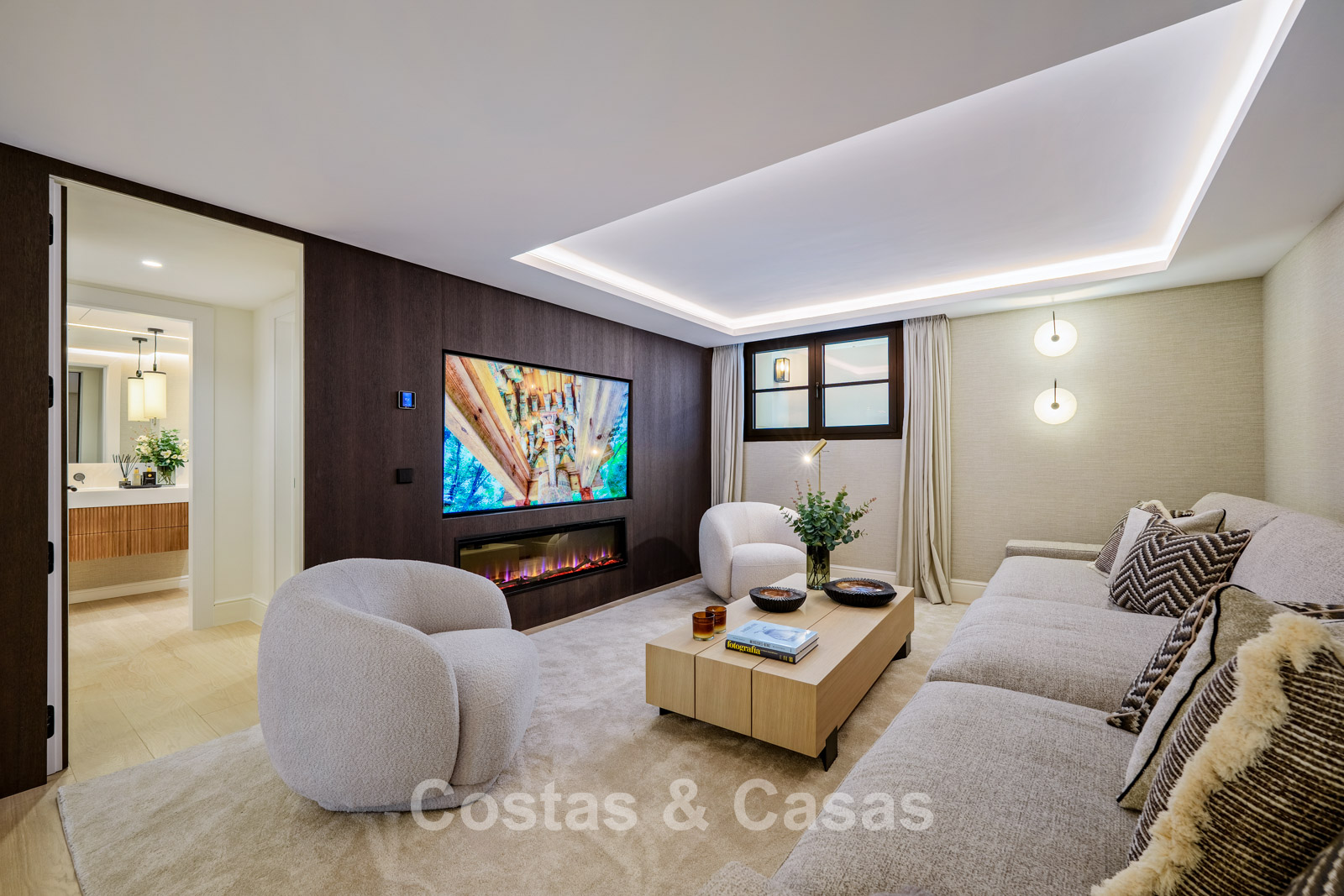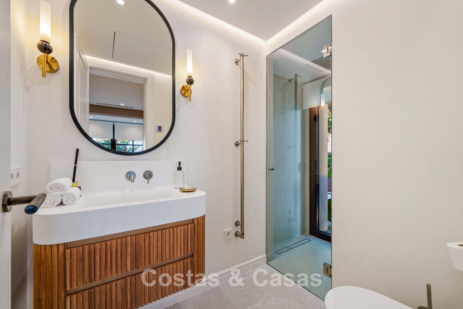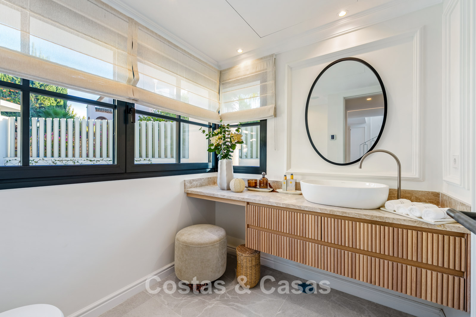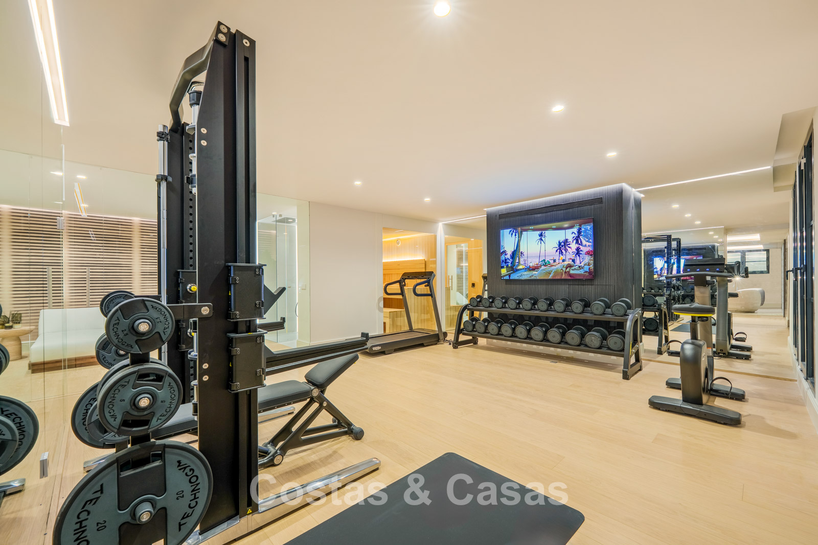 Detached villa with modern-Mediterranean architecture. Stylishly renovated using top-quality materials and premium brands. Comfortable open layout with a bright interior. Floor-to-ceiling sliding windows with sunken profiles flood the interior with natural light and create a seamless connection between indoors and outdoors. Cozy TV lounge with a fireplace. Integrated dining area. Open kitchen equipped with Gaggenau appliances, ample storage and a kitchen island that doubles as a breakfast area. 5 bedrooms, 5 bathrooms and 2 toilets. Office space. Atmospheric basement level with a TV lounge by the fireplace and a bar, ideal for entertaining family and friends in comfort and style. Fully equipped gym, including a Finnish sauna and massage room. Fully equipped laundry room with Miele appliances. Technical room. Indoor garage for 2 cars. Additional carport.