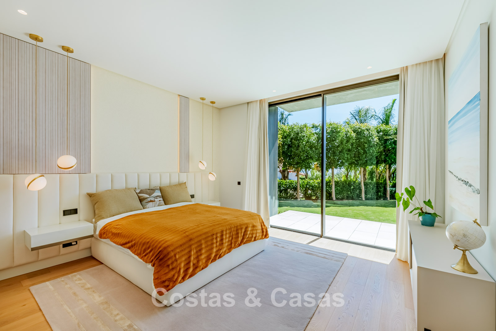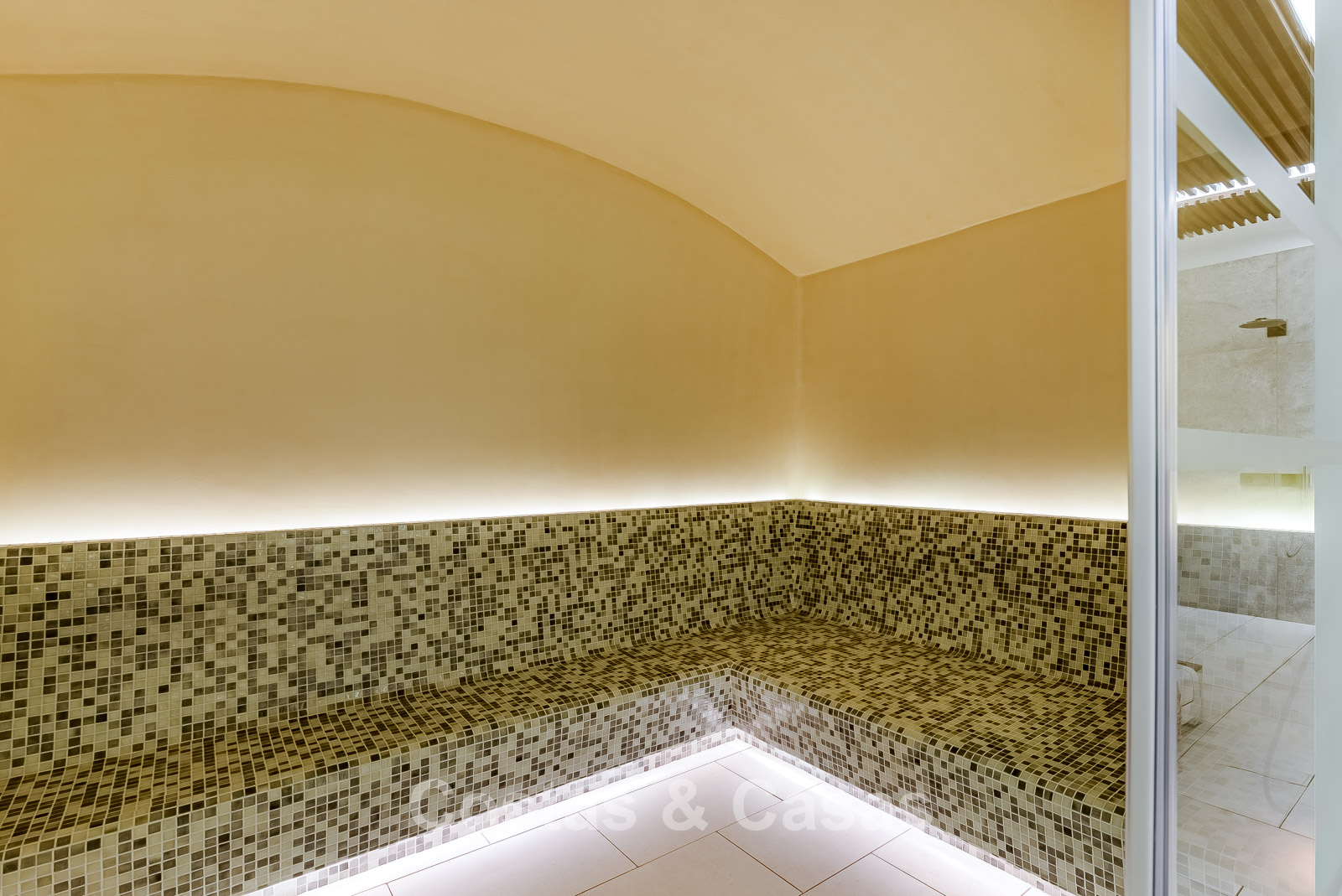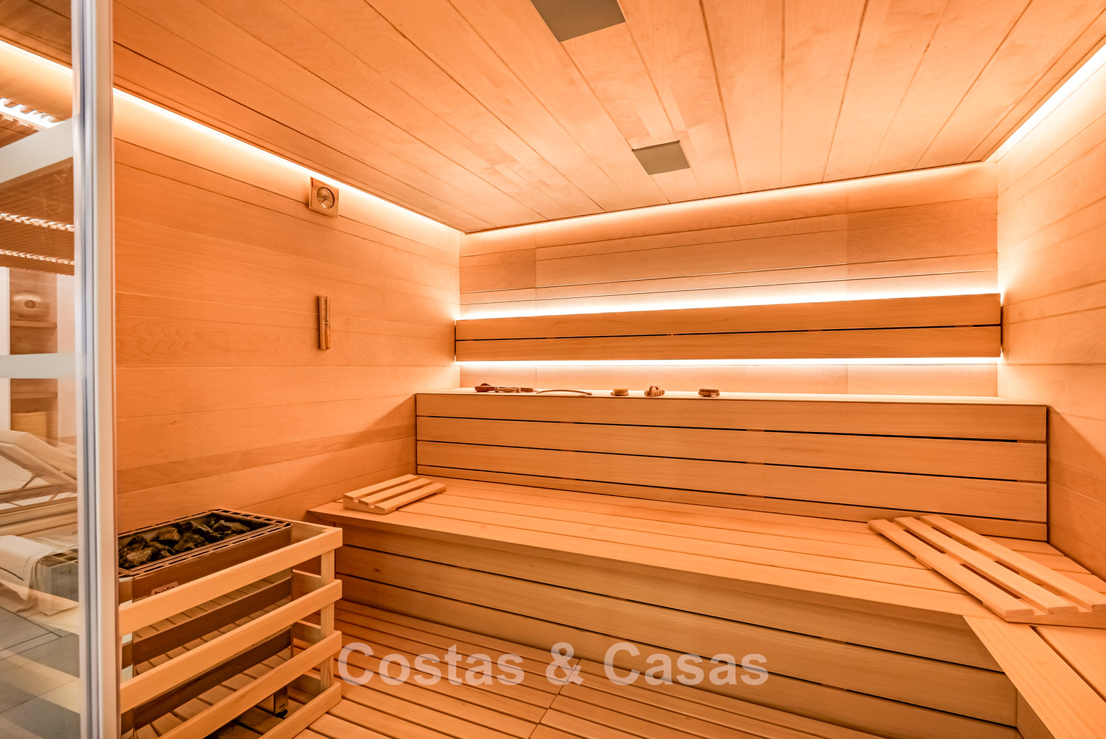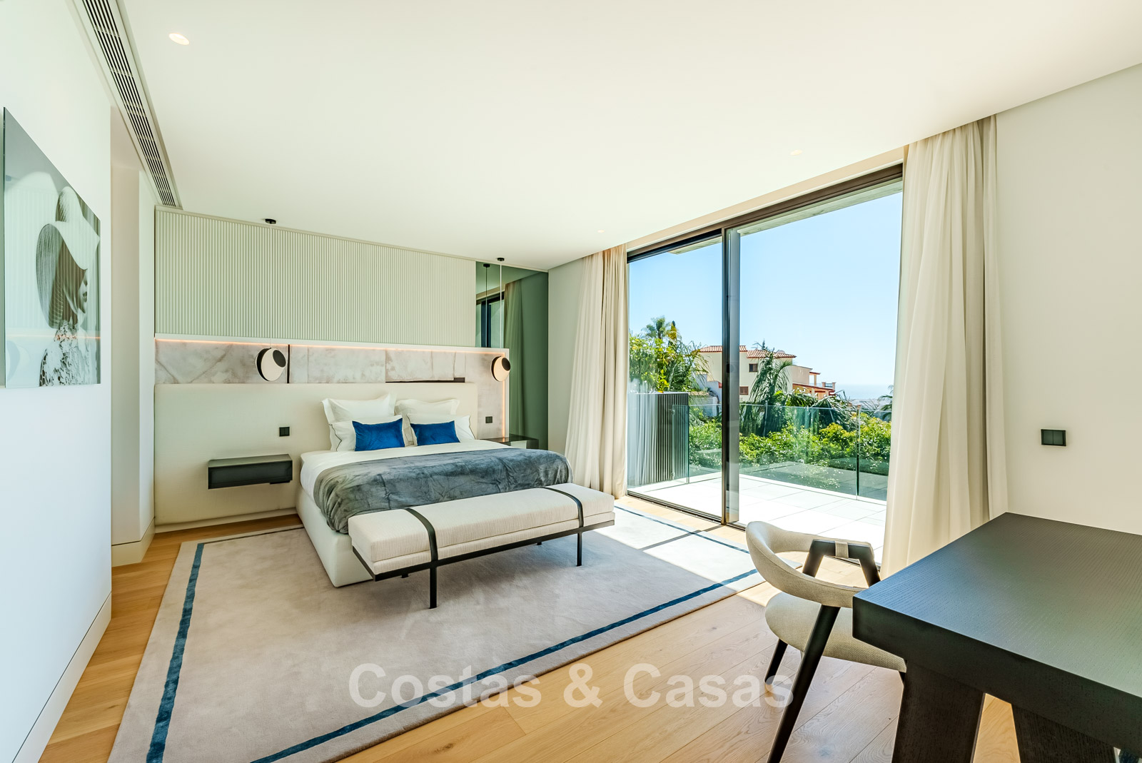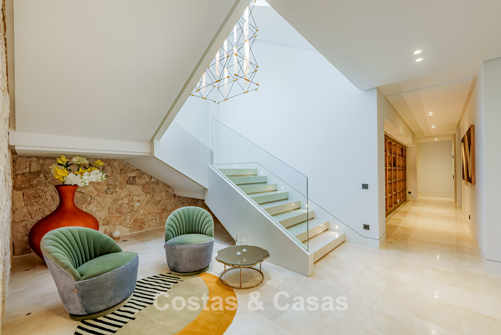 Exceptional, detached villa with ultra-modern architecture. The architecture combines minimalism with warmth: white facades, natural stone, wood accents, and lush gardens create an atmosphere of timeless elegance. Designed with an eye for refined design and sustainability. Super-high ceilings. Floor-to-ceiling sliding windows with recessed profiles throughout the villa create a seamless transition between indoors and outdoors, letting in abundant natural light. The airy, open-plan living area connects directly to the outdoor space, creating a feeling of space and light. High-quality, custom-designed open-plan kitchen with a large central island, breakfast bar, and dining table. Eight custom-designed bedrooms, eight bathrooms, and four separate toilets. The master suite features a spacious walk-in closet and a spa-inspired bathroom. An indoor spa includes a heated indoor pool, sauna, Turkish steam bath, and separate shower, ideal for ultimate relaxation year-round. Formal office space. Private loft-style home cinema. Air-conditioned wine cellar. Fully equipped gym with adjoining massage room. Storage room. Equipped laundry room. Utility room. Parking for 6 cars.