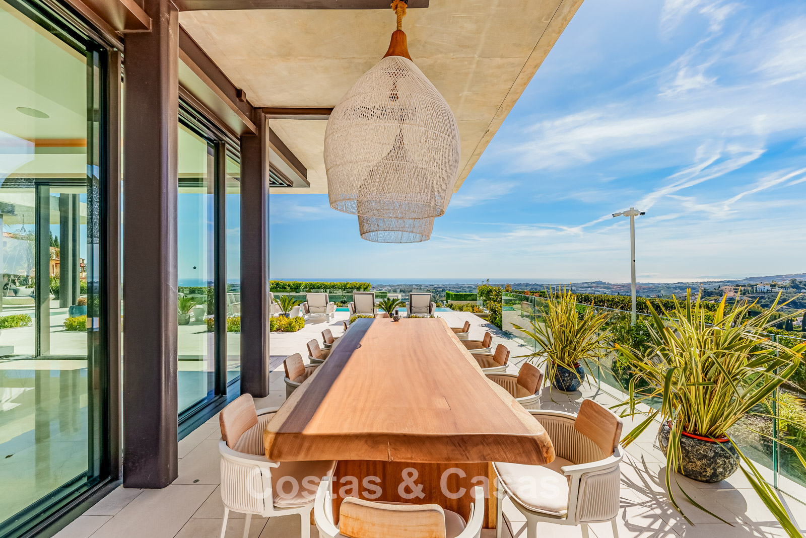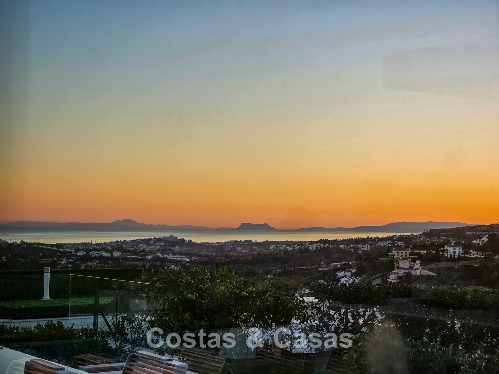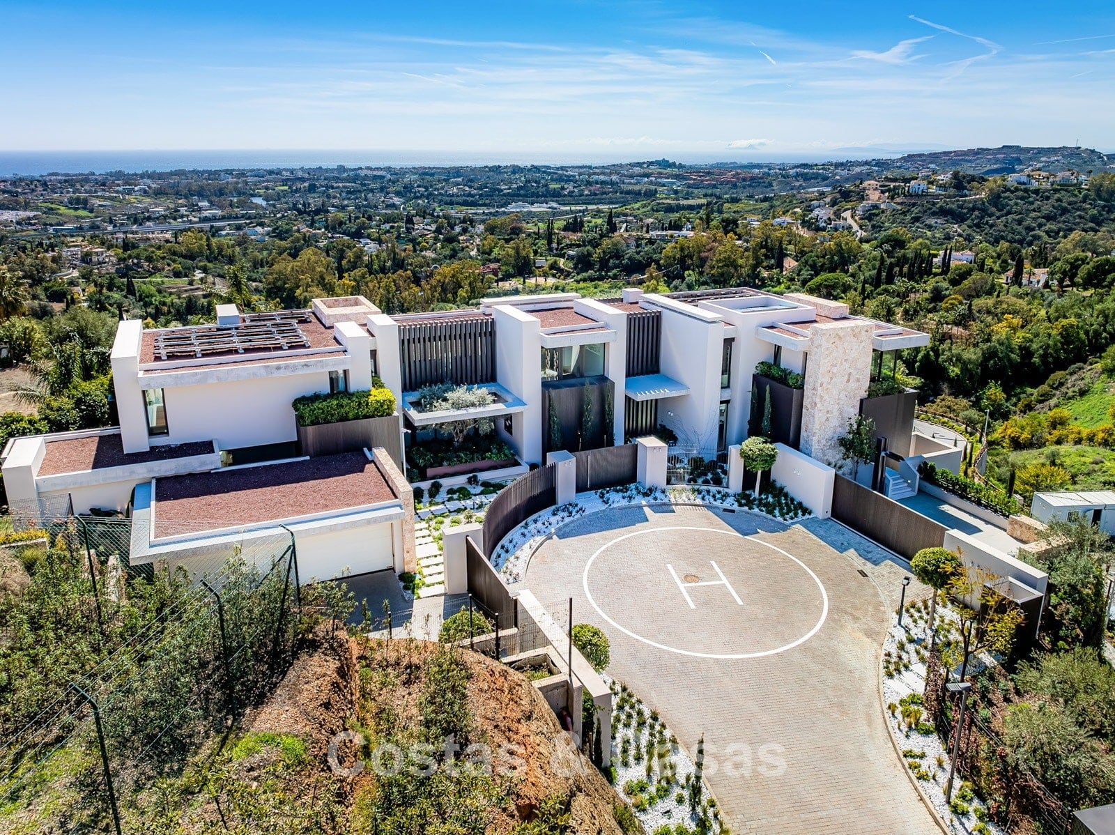 Situated on a generous, secluded plot in an elevated position. A sweeping access road leads to a spacious courtyard with a private helipad, immediately emphasizing the exclusive character of this residence. The outdoor area is designed as a private resort, with a vast infinity pool, sunny lounge terraces, and immaculately maintained gardens. An outdoor kitchen with a barbecue and outdoor dining area, perfect for relaxed summer evenings and stylish gatherings overlooking the sea. South-facing. Magnificent views over the green landscapes, with the Mediterranean Sea and the Strait of Gibraltar on the horizon.