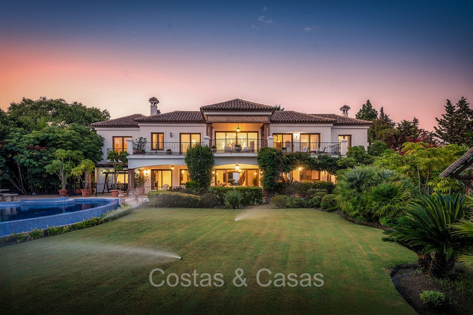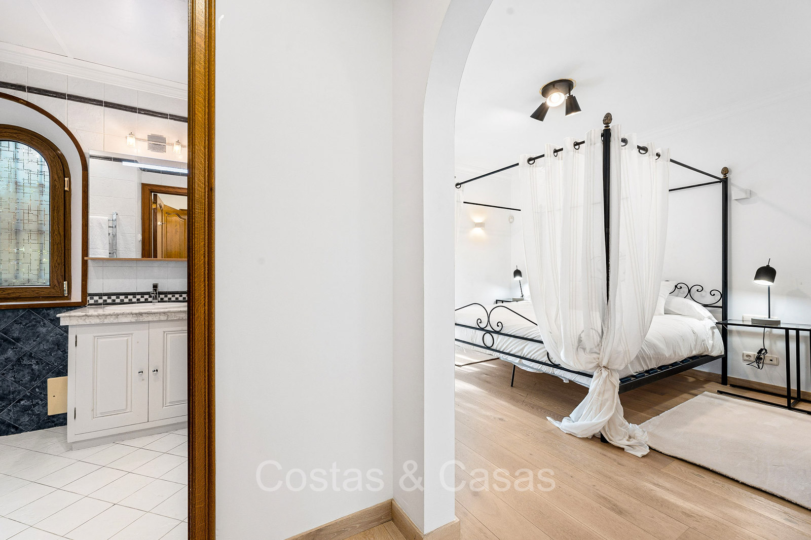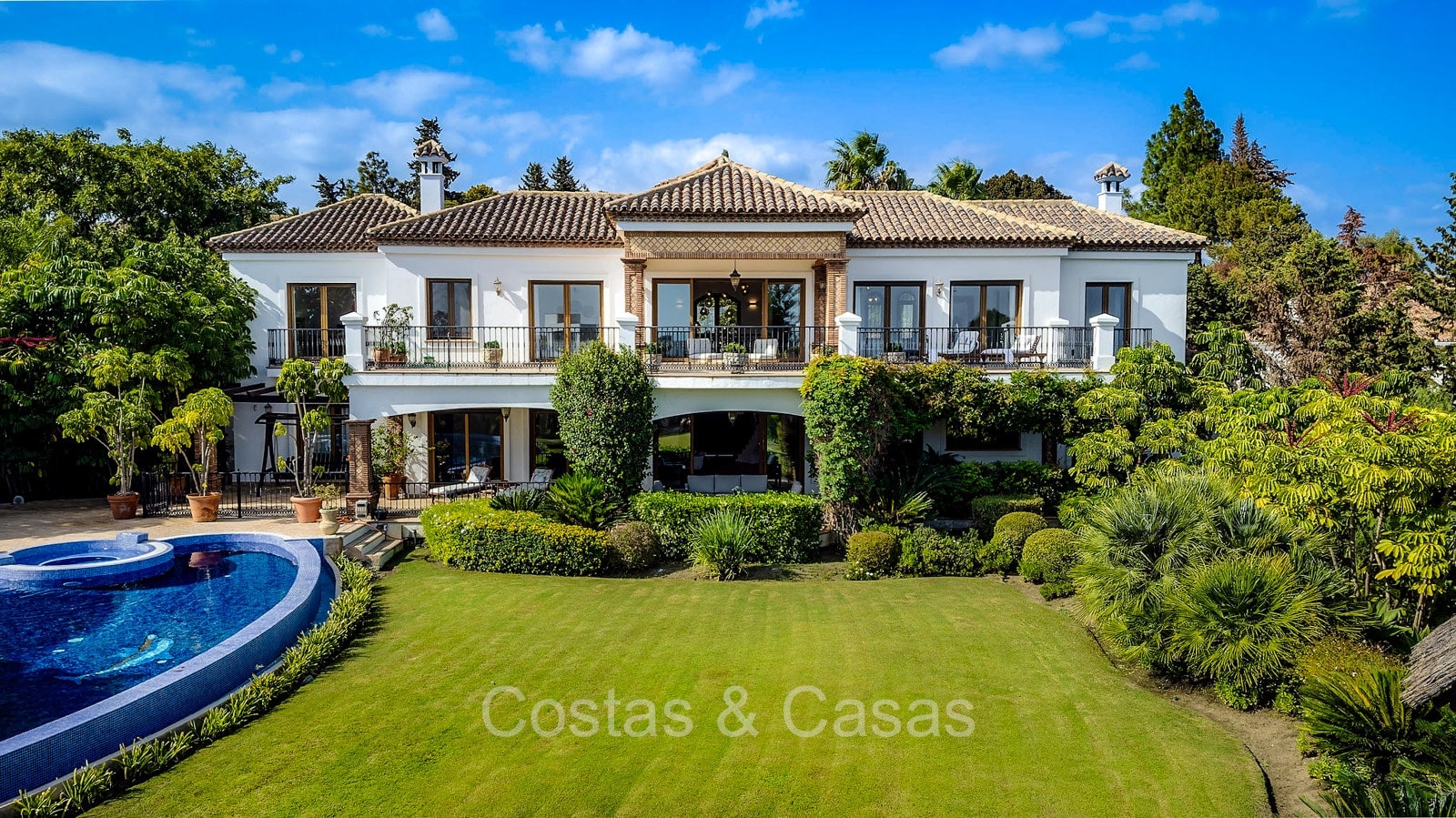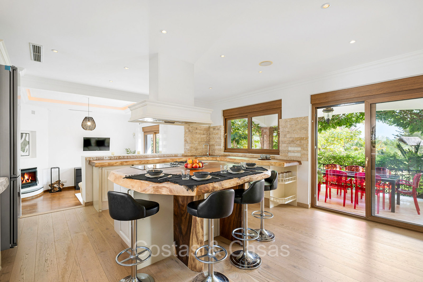 Detached villa with a traditional Andalusian architectural style. Carefully renovated in 2020. High sliding windows open onto the outdoor areas and also generate plenty of natural daylight. Upon entering, you are greeted by a large, charming space with a graceful staircase and a double-height ceiling that elegantly climbs to the upper floor. Cozy open living room with fireplace. Integrated dining area. Practical custom kitchen with a central island for seating. Utility room with a walk-in refrigerator. 6 bedrooms, 6 bathrooms and 2 separate toilets. The master suite is located upstairs and enjoys a large bathroom, walk-in closet and provides access to the expansive terrace. A small room upstairs can be freely arranged as a private office or study. Hardwood floors. An indoor guest house with private access. Laundry room. Indoor garage for 2 cars. Additional parking for 3 to 4 cars.
