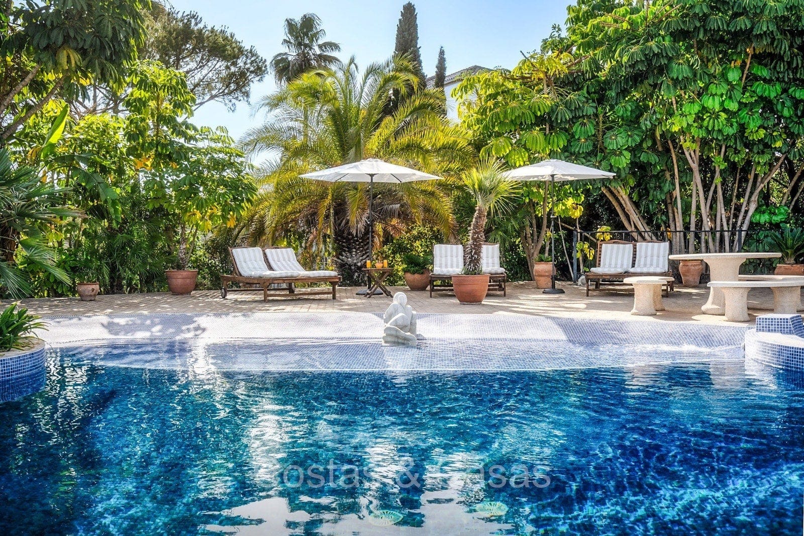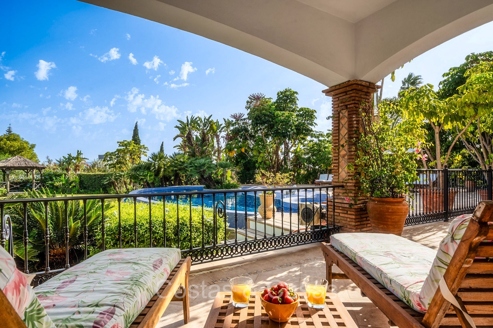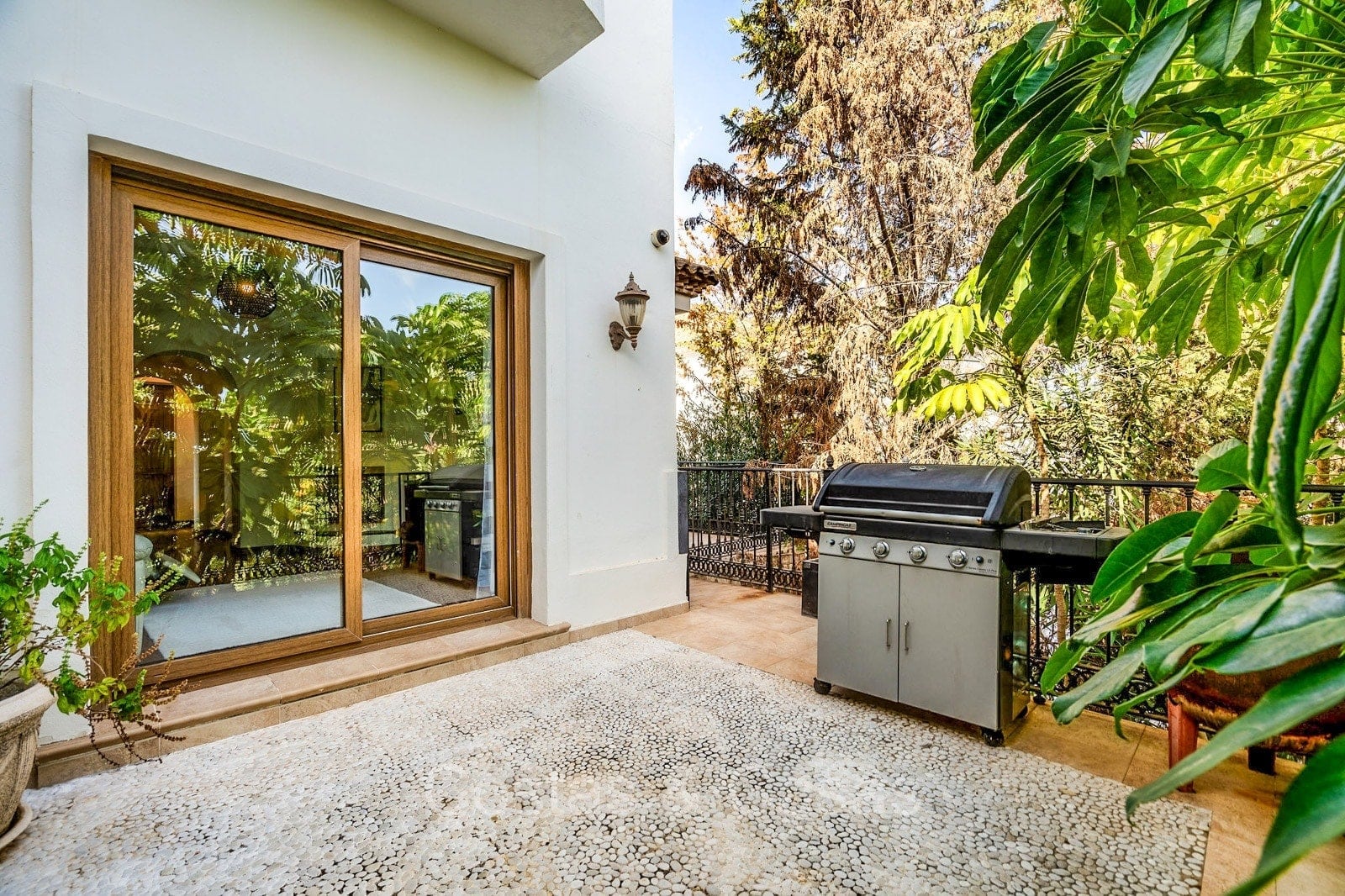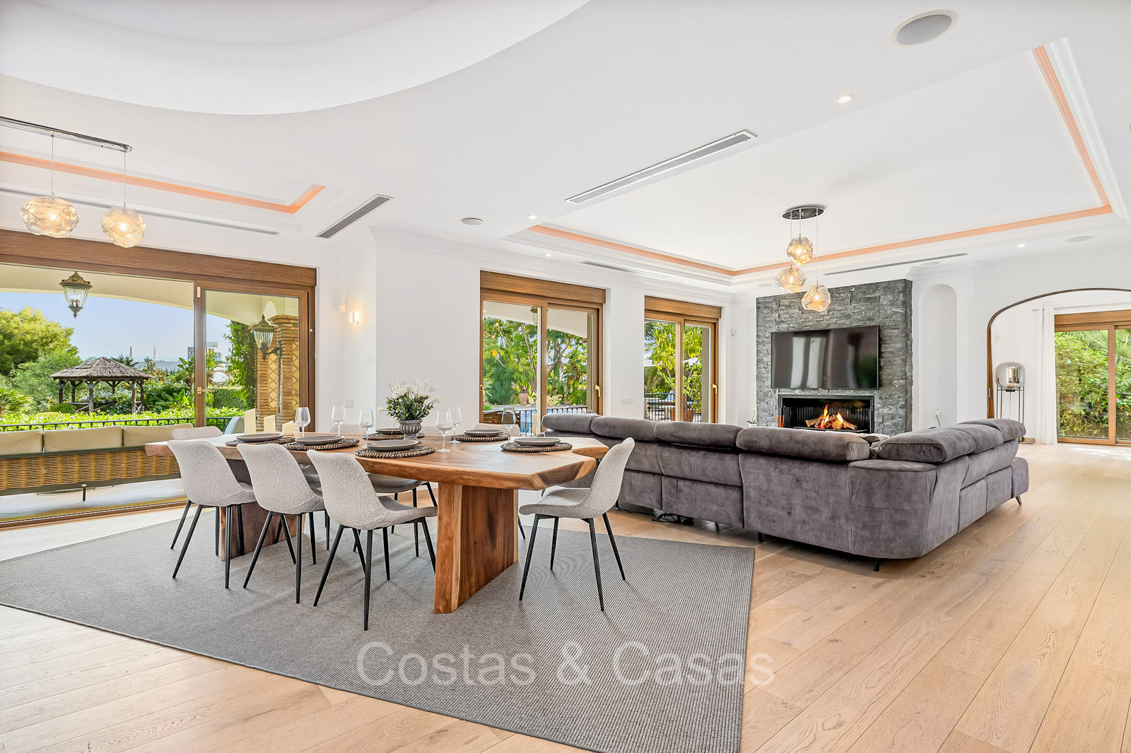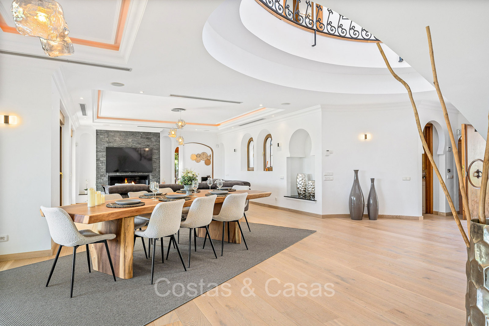 Detached villa with a traditional Andalusian architectural style. Carefully renovated in 2020. High sliding windows open onto the outdoor areas and also generate plenty of natural daylight. Upon entering, you are greeted by a large, charming space with a graceful staircase and a double-height ceiling that elegantly climbs to the upper floor. Cozy open living room with fireplace. Integrated dining area. Practical custom kitchen with a central island for seating. Utility room with a walk-in refrigerator. 6 bedrooms, 6 bathrooms and 2 separate toilets. The master suite is located upstairs and enjoys a large bathroom, walk-in closet and provides access to the expansive terrace. A small room upstairs can be freely arranged as a private office or study. Hardwood floors. An indoor guest house with private access. Laundry room. Indoor garage for 2 cars. Additional parking for 3 to 4 cars.