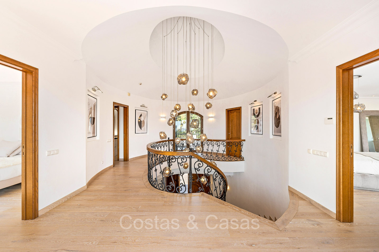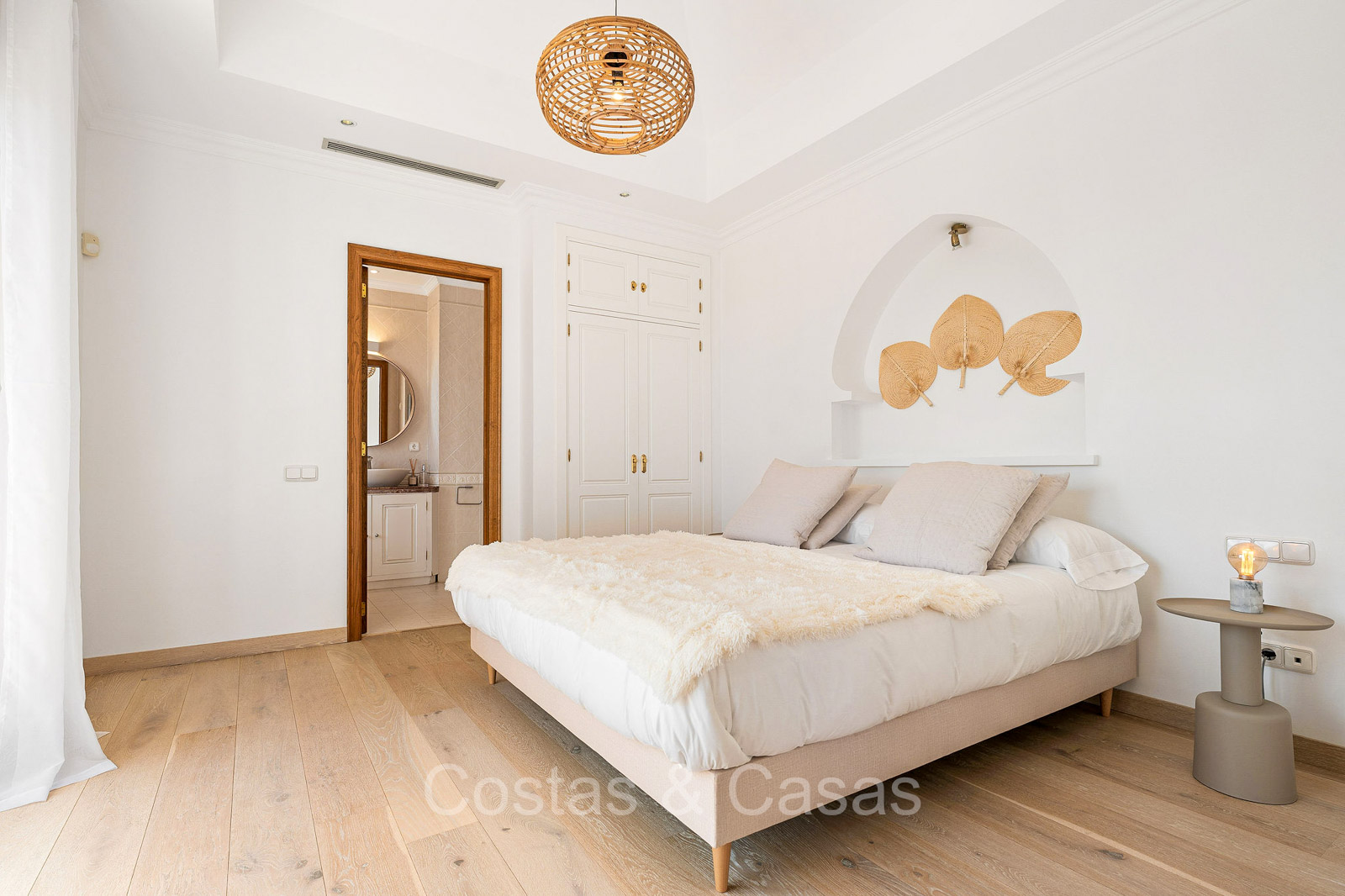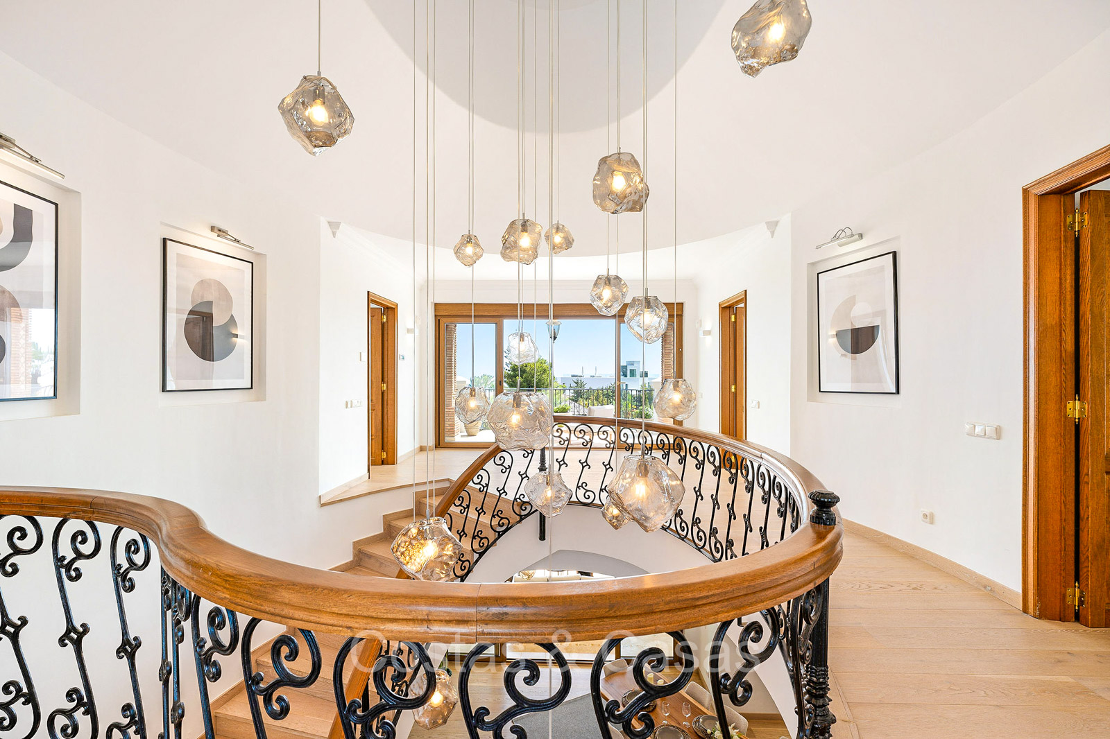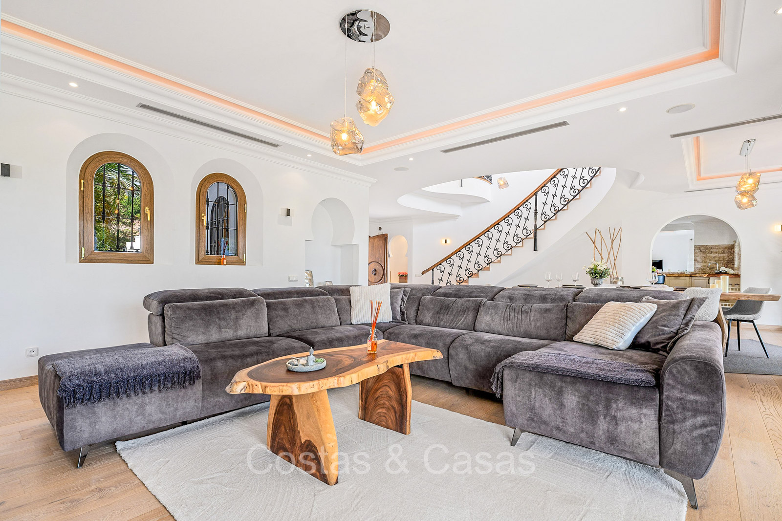 Detached villa with a traditional Andalusian architectural style. Carefully renovated in 2020. High sliding windows open onto the outdoor areas and also generate plenty of natural daylight. Upon entering, you are greeted by a large, charming space with a graceful staircase and a double-height ceiling that elegantly climbs to the upper floor. Cozy open living room with fireplace. Integrated dining area. Practical custom kitchen with a central island for seating. Utility room with a walk-in refrigerator. 6 bedrooms, 6 bathrooms and 2 separate toilets. The master suite is located upstairs and enjoys a large bathroom, walk-in closet and provides access to the expansive terrace. A small room upstairs can be freely arranged as a private office or study. Hardwood floors. An indoor guest house with private access. Laundry room. Indoor garage for 2 cars. Additional parking for 3 to 4 cars.