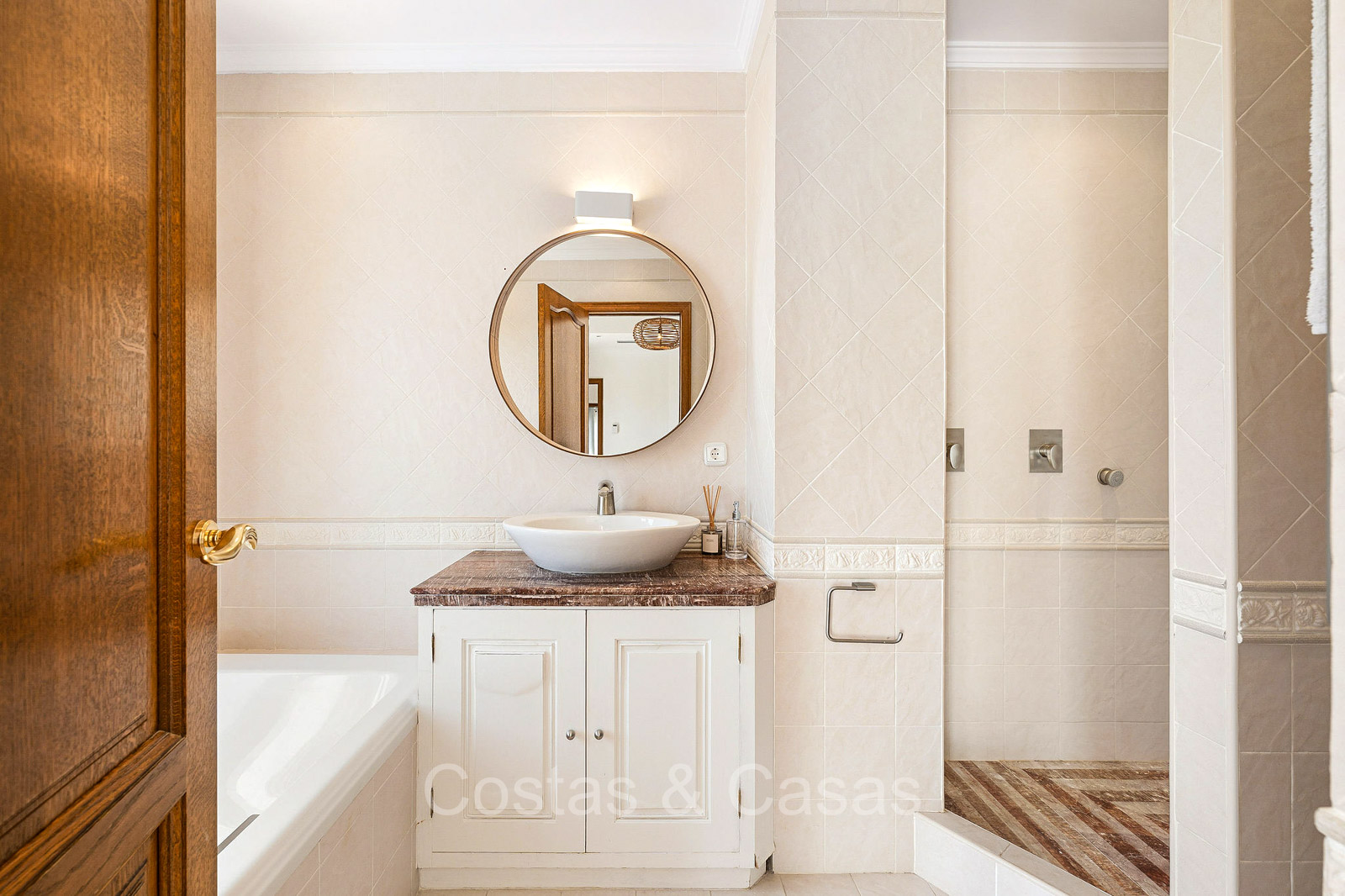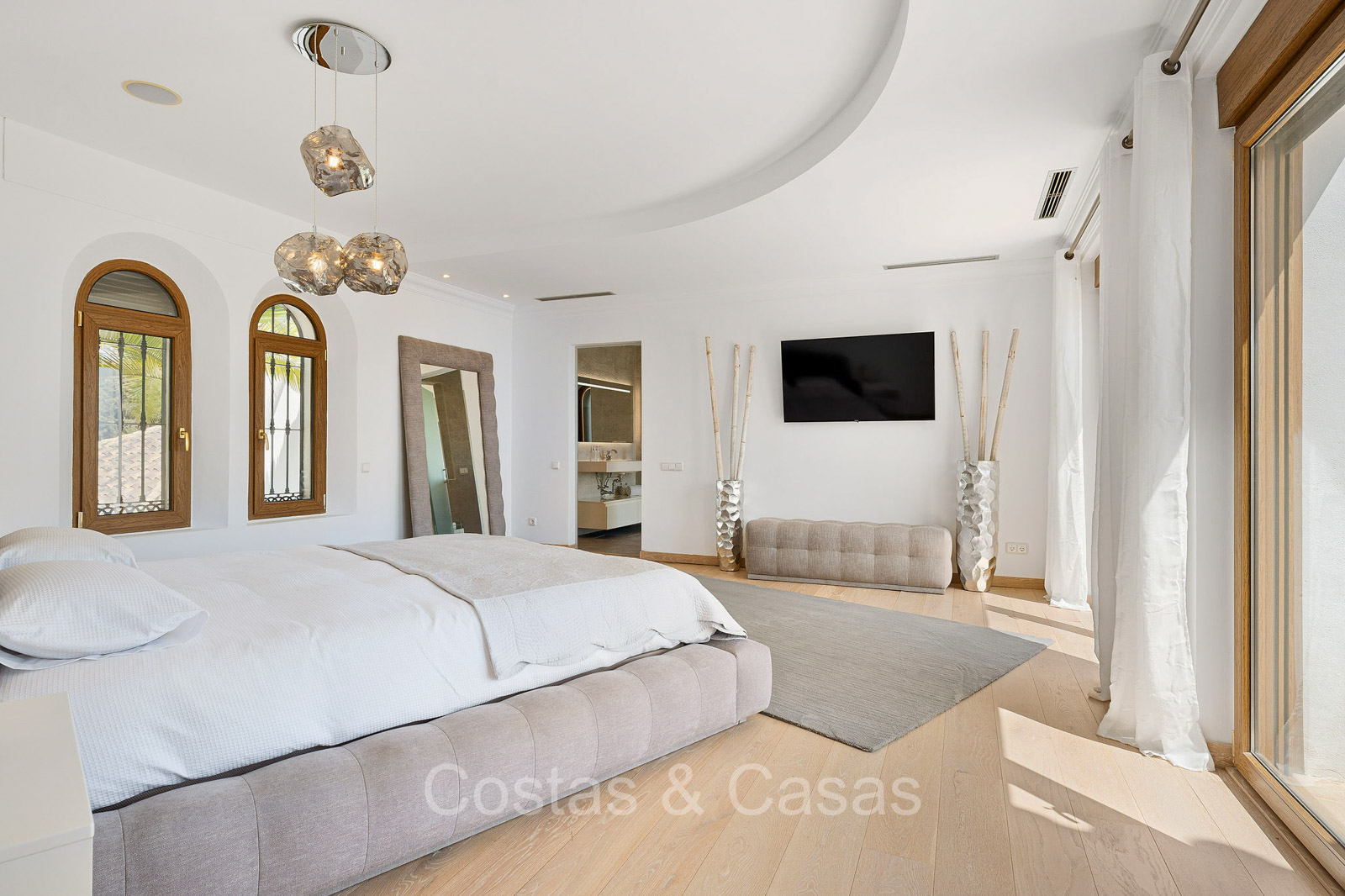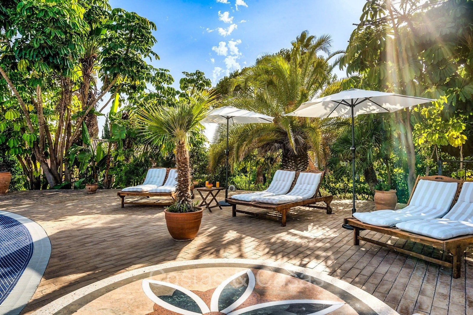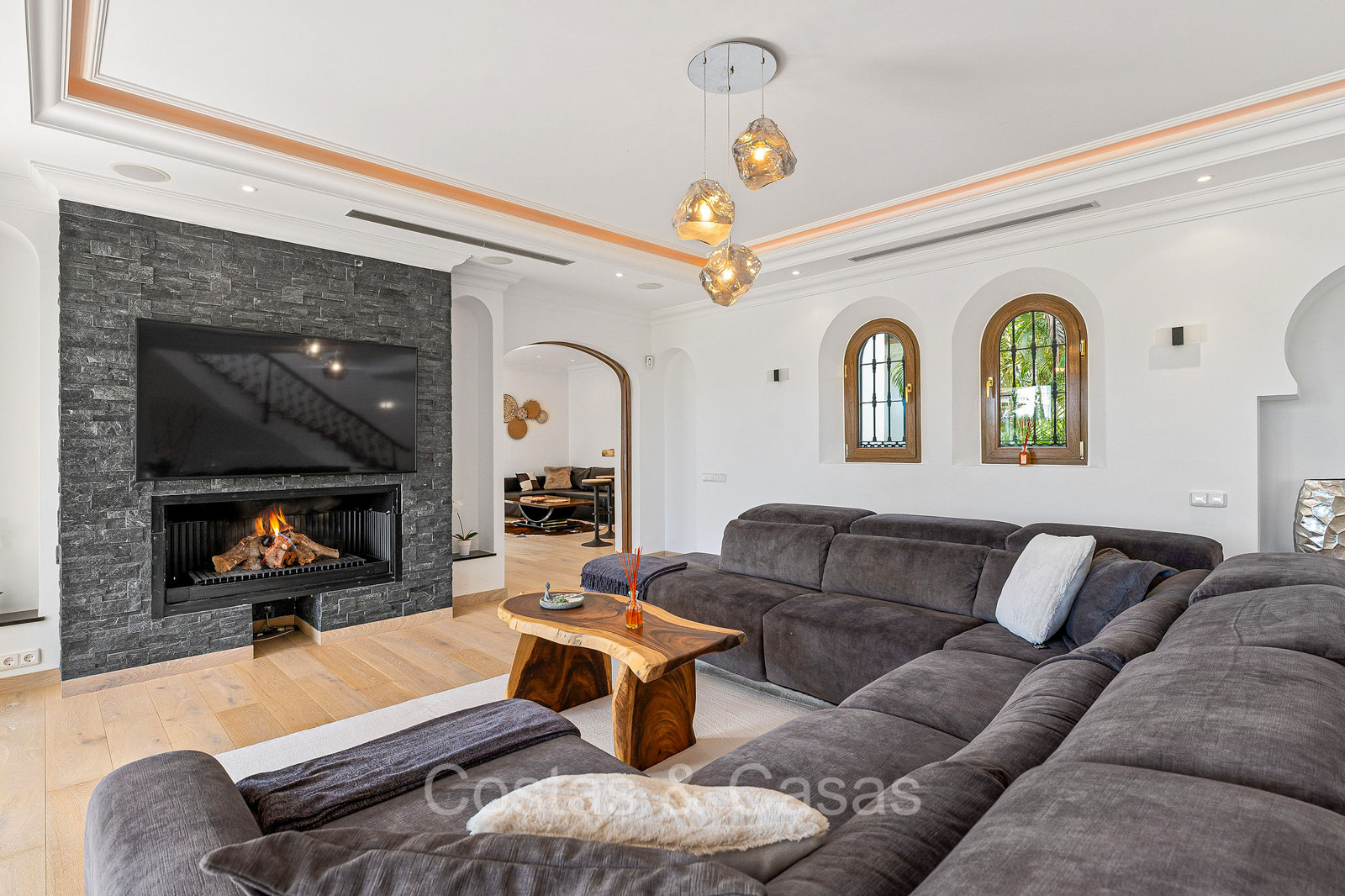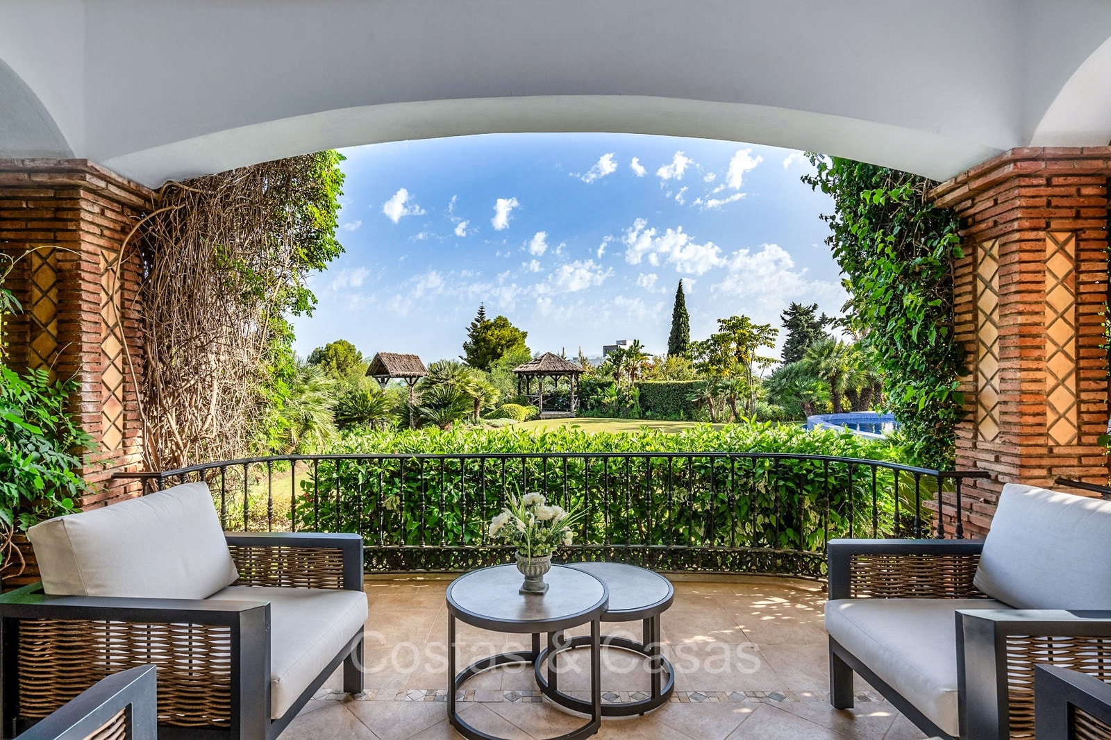 Detached villa with a traditional Andalusian architectural style. Carefully renovated in 2020. High sliding windows open onto the outdoor areas and also generate plenty of natural daylight. Upon entering, you are greeted by a large, charming space with a graceful staircase and a double-height ceiling that elegantly climbs to the upper floor. Cozy open living room with fireplace. Integrated dining area. Practical custom kitchen with a central island for seating. Utility room with a walk-in refrigerator. 6 bedrooms, 6 bathrooms and 2 separate toilets. The master suite is located upstairs and enjoys a large bathroom, walk-in closet and provides access to the expansive terrace. A small room upstairs can be freely arranged as a private office or study. Hardwood floors. An indoor guest house with private access. Laundry room. Indoor garage for 2 cars. Additional parking for 3 to 4 cars.