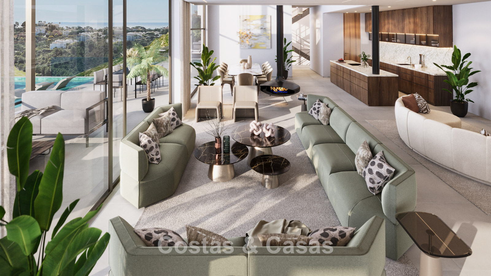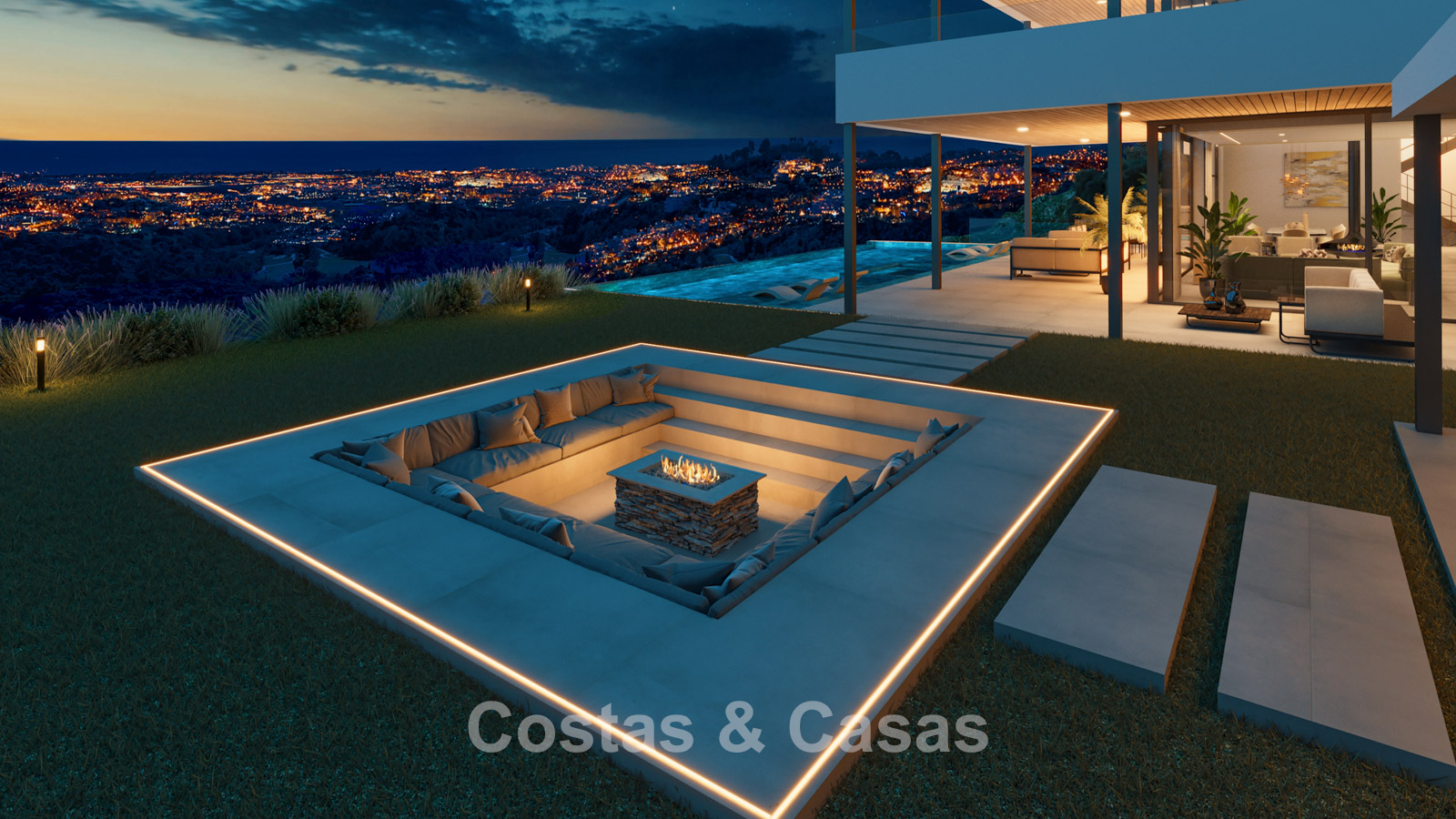 On a spacious plot of more than 3,700m². Spectacular infinity pool with built-in loungers. The terraces offer the perfect setting for relaxation and socializing, with an outdoor kitchen, a sunken lounge and an atmospheric outdoor dining area. Southwest facing. Stunning views of the surrounding area, with the mountain landscape and the Mediterranean Sea in the distance.