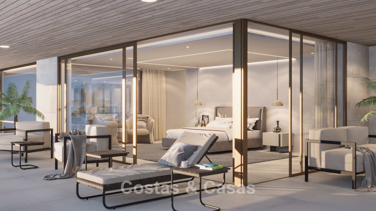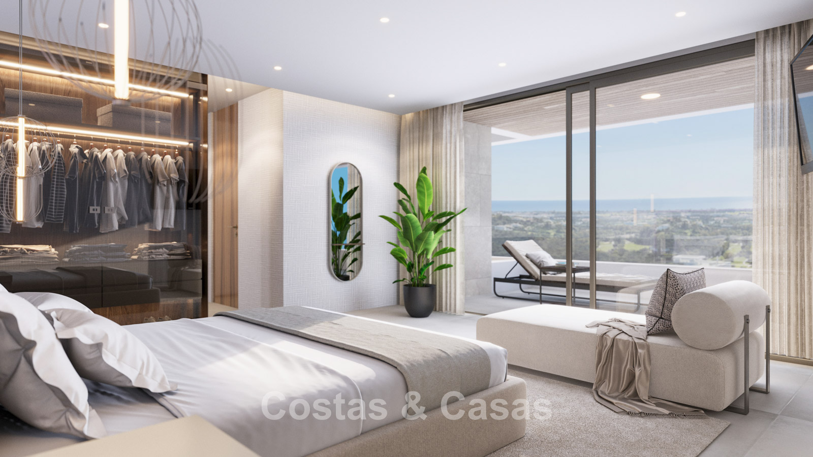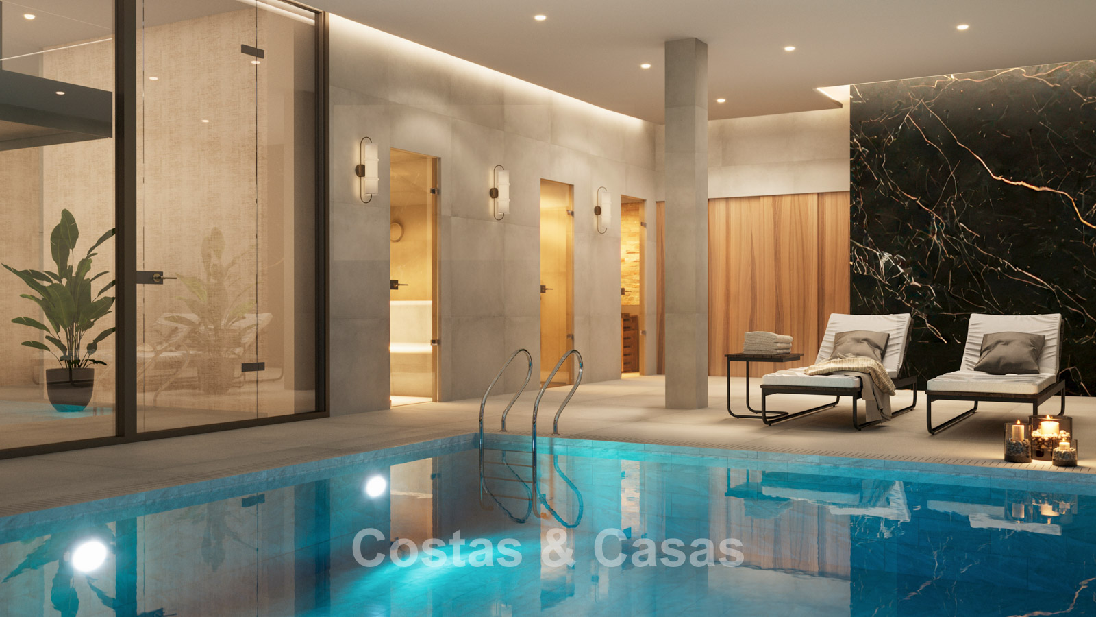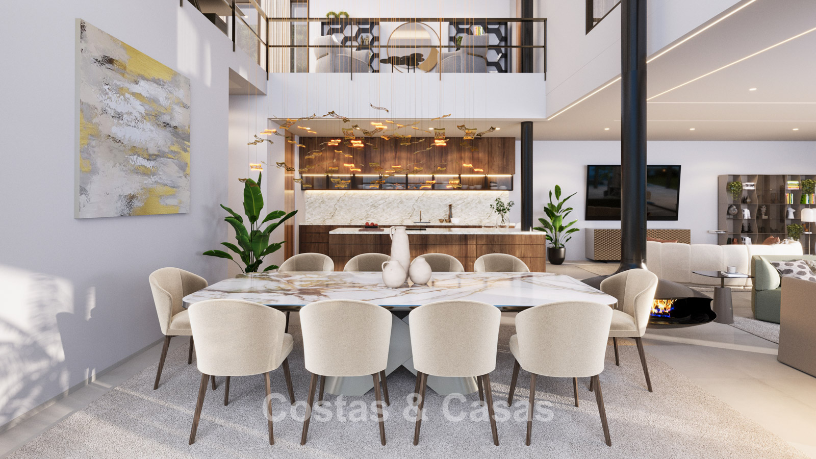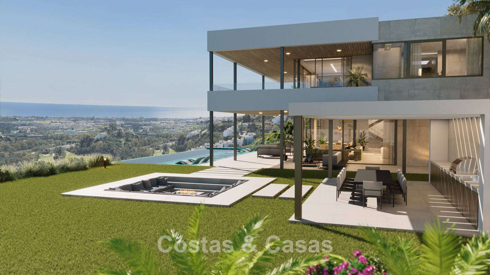 Luxurious new build villa with an architectural design on plan. Expertly designed with advanced technologies. Trendy and luxurious interior style. An abundance of large windows creates a seamless transition between indoors and outdoors, while offering panoramic views of the stunning surroundings. Spacious open plan living space, with a partial double height ceiling, features a living room and dining area. A functional custom designer kitchen with high-end appliances and a central cooking island. 6 bedrooms, 7 bathrooms and 3 separate toilets. Climatised wine cellar. The lower floor features a spa with an indoor pool, Turkish bath, sauna and a bathroom. Fully equipped gym. On the lower floor there is a recreation room with a bar, play area and chill-out zone. Storage room. (multiple) Laundry room. Technical room.