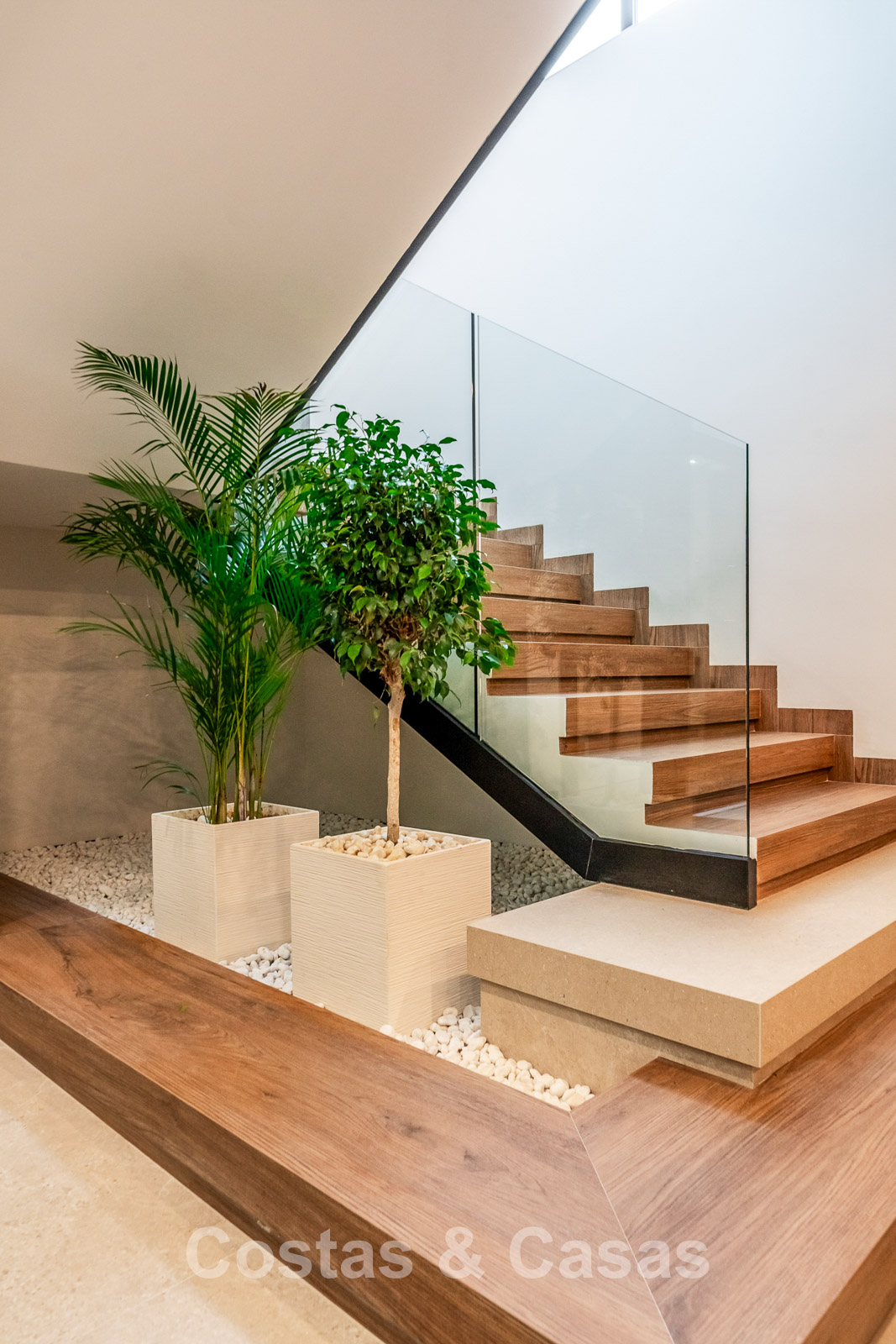 Exclusively located in the highly sought-after, gated community of El Madroñal, in the hills of Benahavis. Here you can enjoy absolute peace and privacy, surrounded by lush nature. Only a 10-minute drive from San Pedro, Puerto Banus and the beautiful beaches. Daily amenities such as groceries, shops, restaurants, bars, a bakery and a butcher are less than a 3-minute drive away. The picturesque mountain village of Benahavis, known as the culinary pearl of the Costa del Sol, is 10 minutes away. Here you will find a wide choice of renowned restaurants, atmospheric tapas bars and cosy bodegas. Golf enthusiasts are also in the perfect place here: the famous golf valley of Nueva Andalucia and the golf courses of Los Arqueros and El Higueral are just a short distance away.