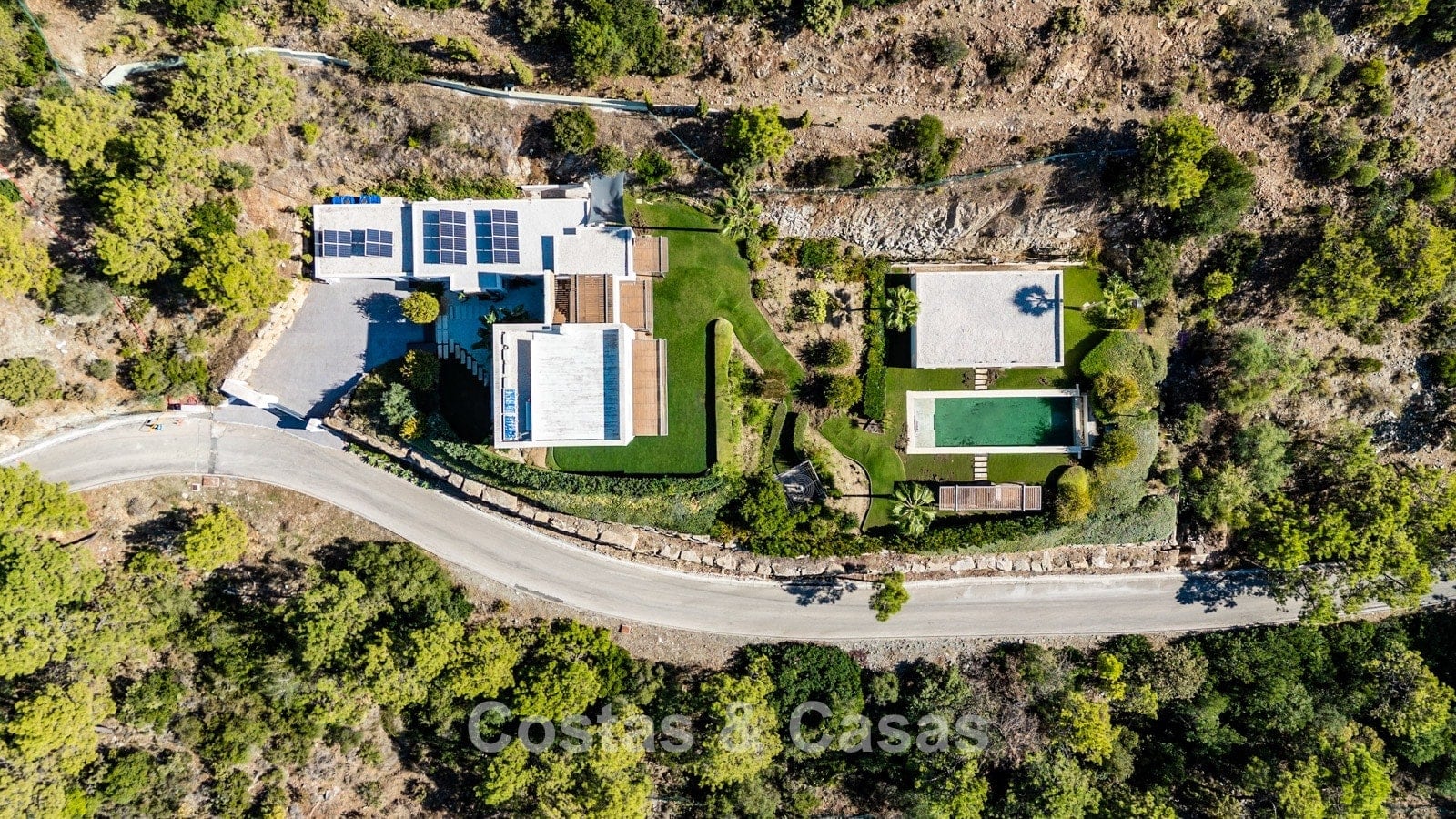 Plot: 3,000 m² Built area: 458 m² Terrace area: 163 m² Bedrooms: 6 (including guest house) Bathrooms: 6 Guest toilet