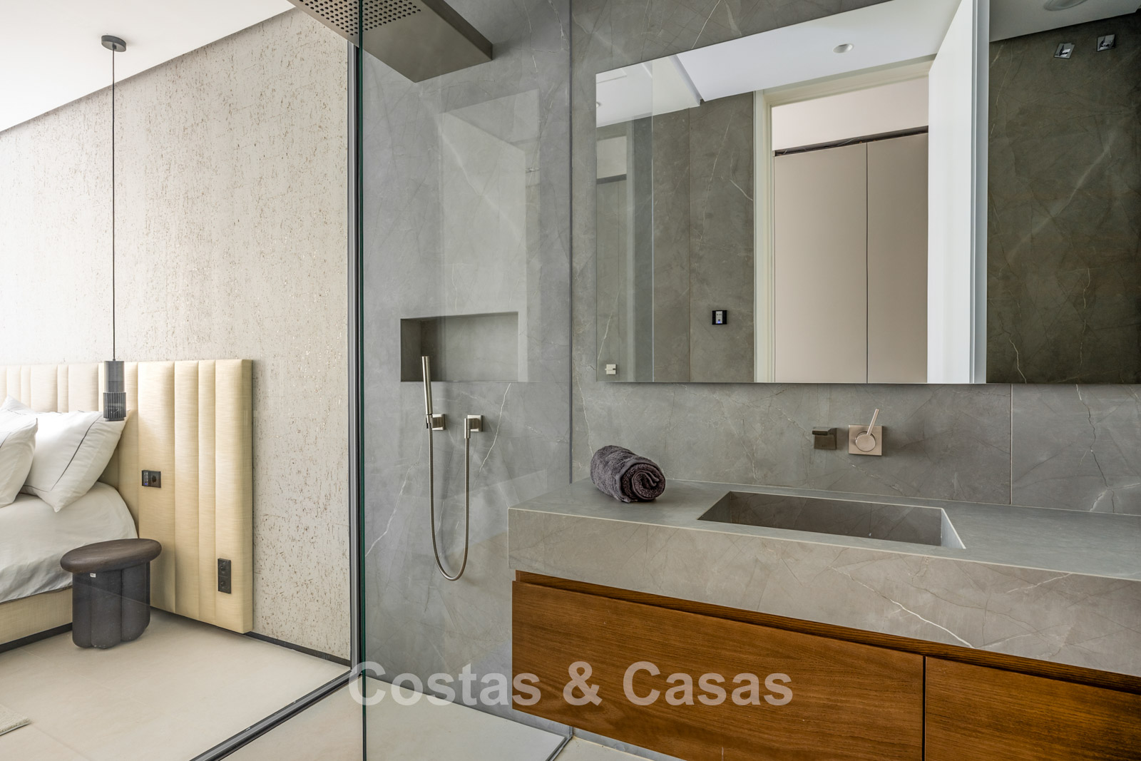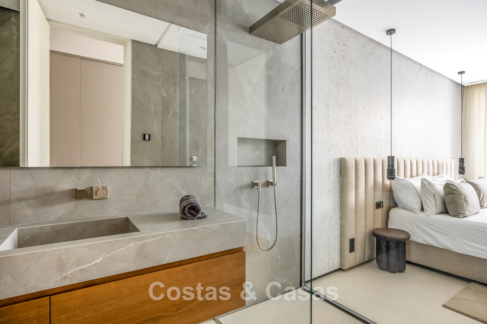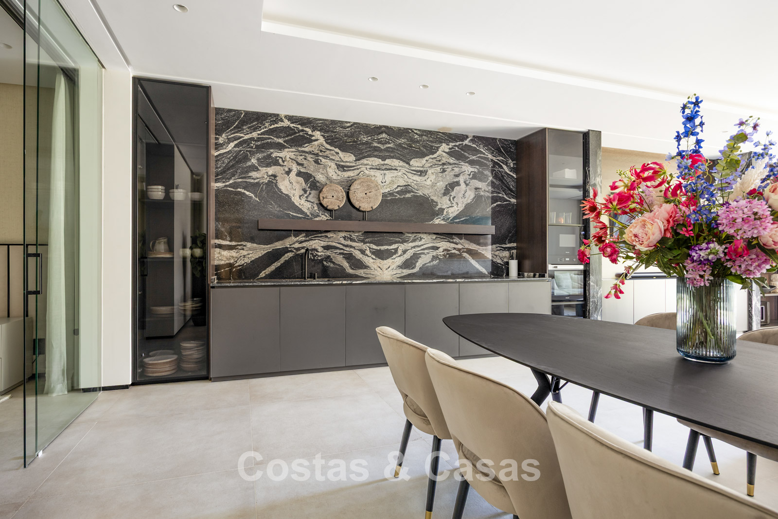 Additional features: Air conditioning for both cooling and heating Underfloor heating throughout Modern fireplace Built-in wardrobes Double glazing with solar protection Glass balustrades Home automation system for lighting and climate control LED lighting indoors and outdoors Advanced alarm system Solar panels