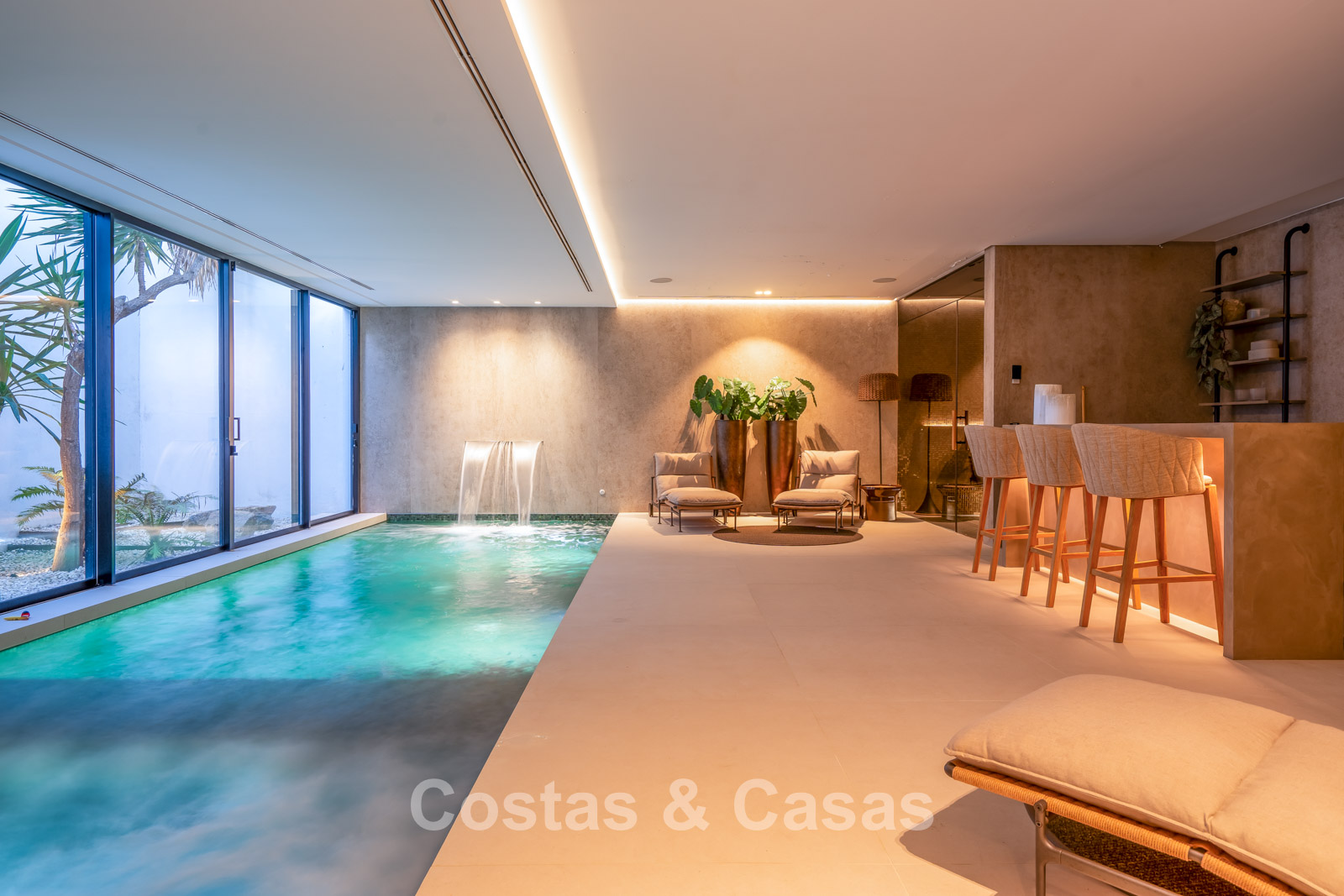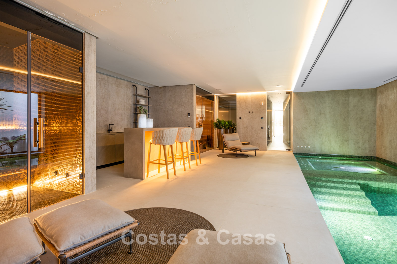 Private spa with indoor pool, sauna, and hammam