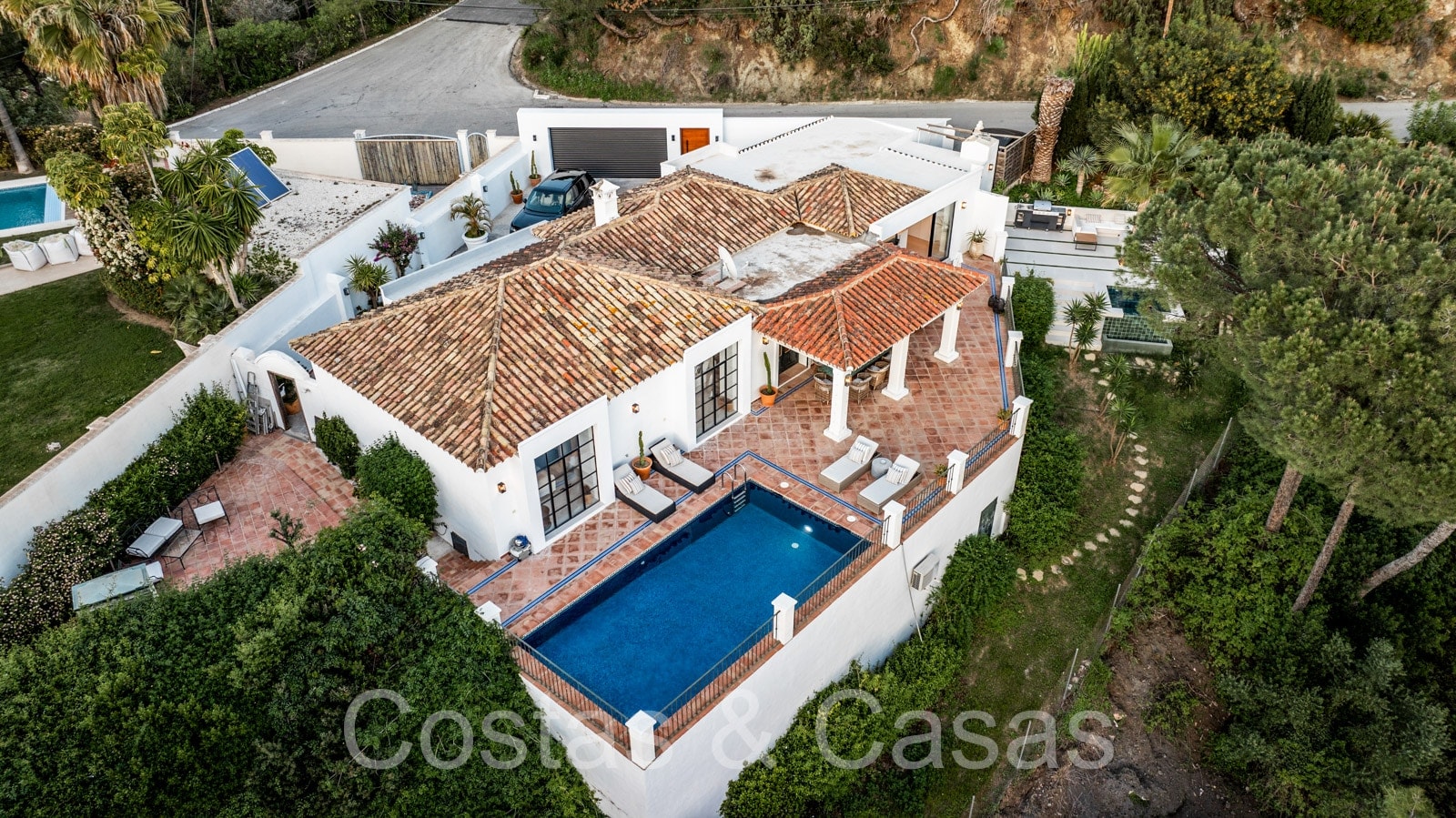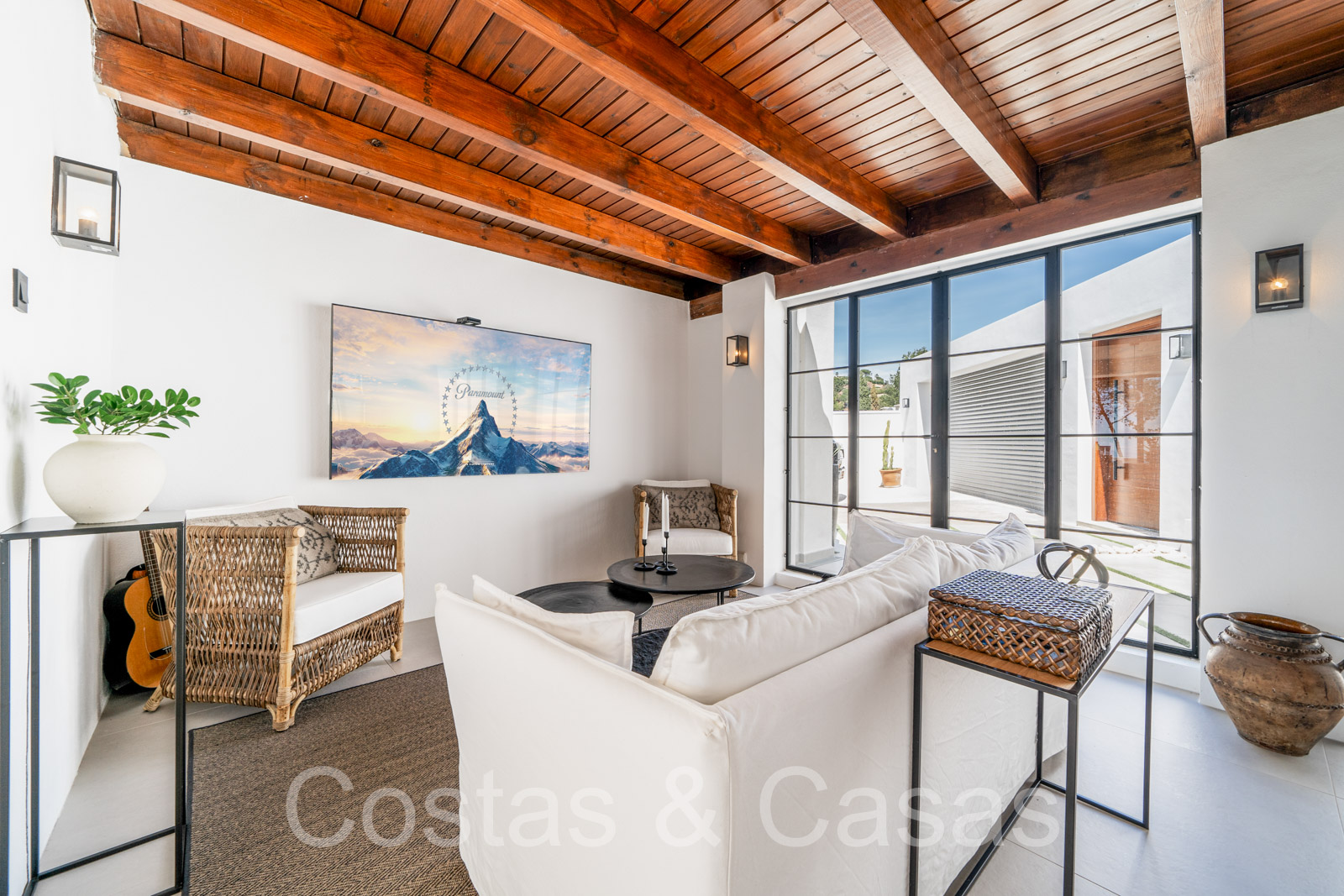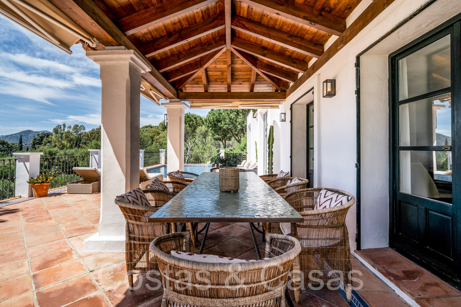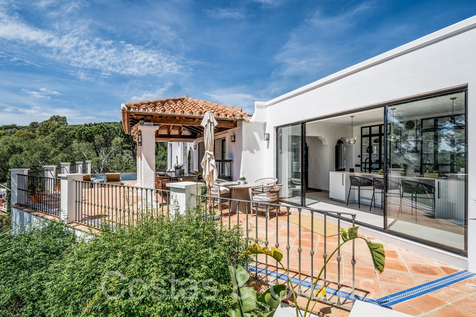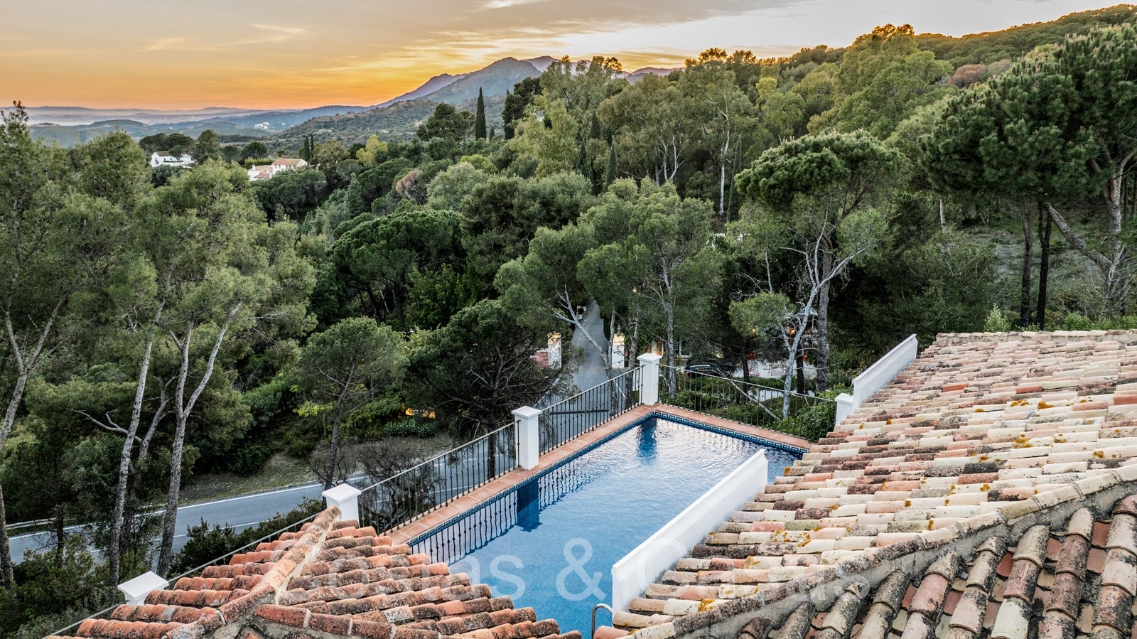 Quietly located in the hills of the municipality of Benahavis, in the exclusive secure domain of El Madroñal. El Madroñal is an oasis of peace and privacy, surrounded by unspoilt nature, yet less than 10 minutes by car from San Pedro, Puerto Banus and the beach. Essential amenities, various restaurants, bar, bakery and butcher can even be reached within a 3-minute drive. The picturesque mountain village of Benahavis itself, just a 10-minute drive away, is widely known as the culinary attraction par excellence of the Costa del Sol, not least because it has the highest concentration of top restaurants in the entire region. There are also a number of excellent and cozy tapas bars and bodegas. With the golf valley of Nueva Andalucia as well as the golf courses of Los Arqueros, La Quinta and El Higueral only a short distance away, golfers will also be able to enjoy themselves.