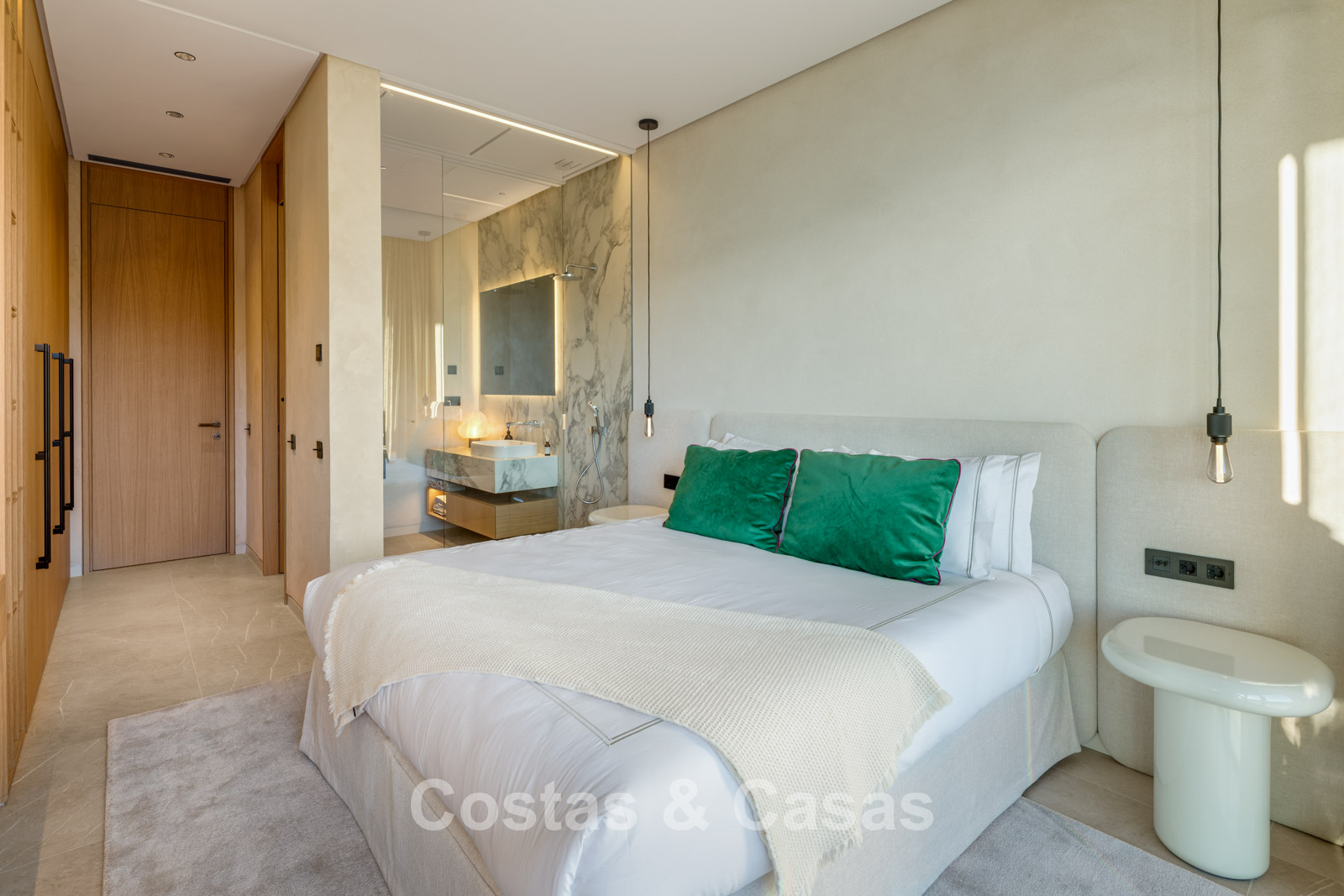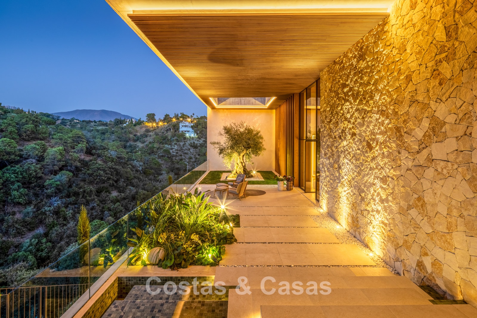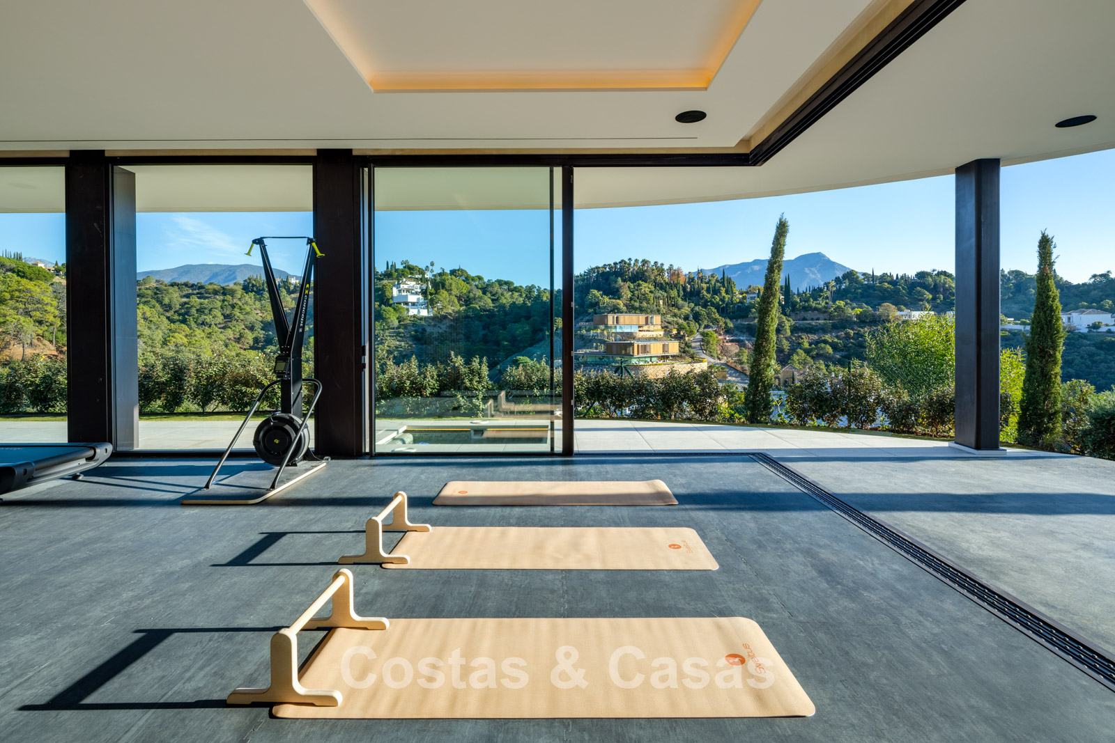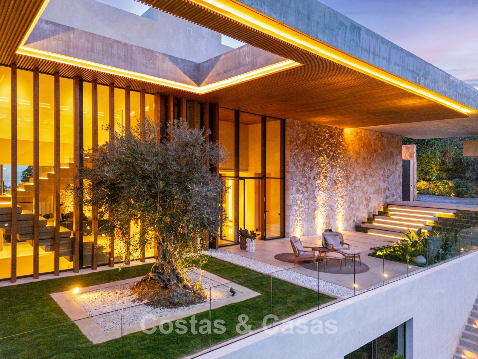 Additional features: Private lift. Air conditioning for cooling and heating. Modern open fireplace. Built-in bespoke wardrobes. Double glazing. Smart Home System. LED lighting inside and out. Glass balustrades around terraces. Solar panels. Automatic irrigation system.