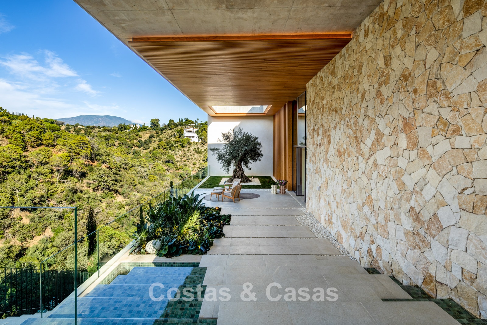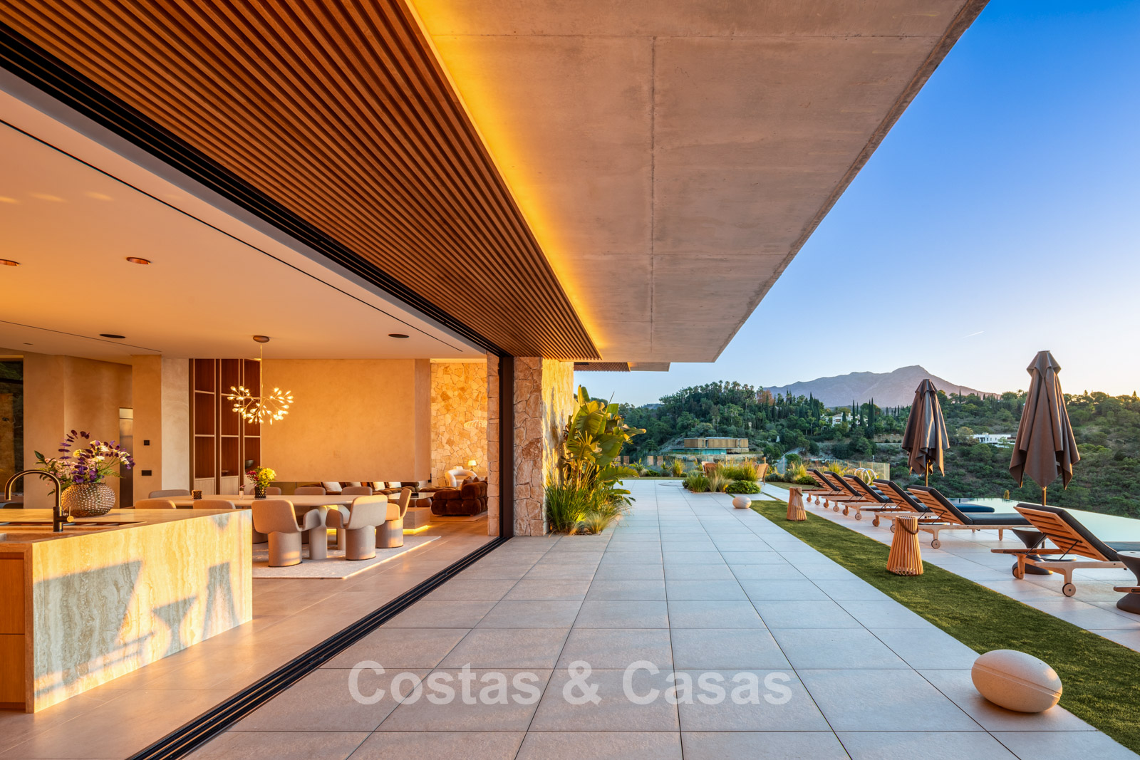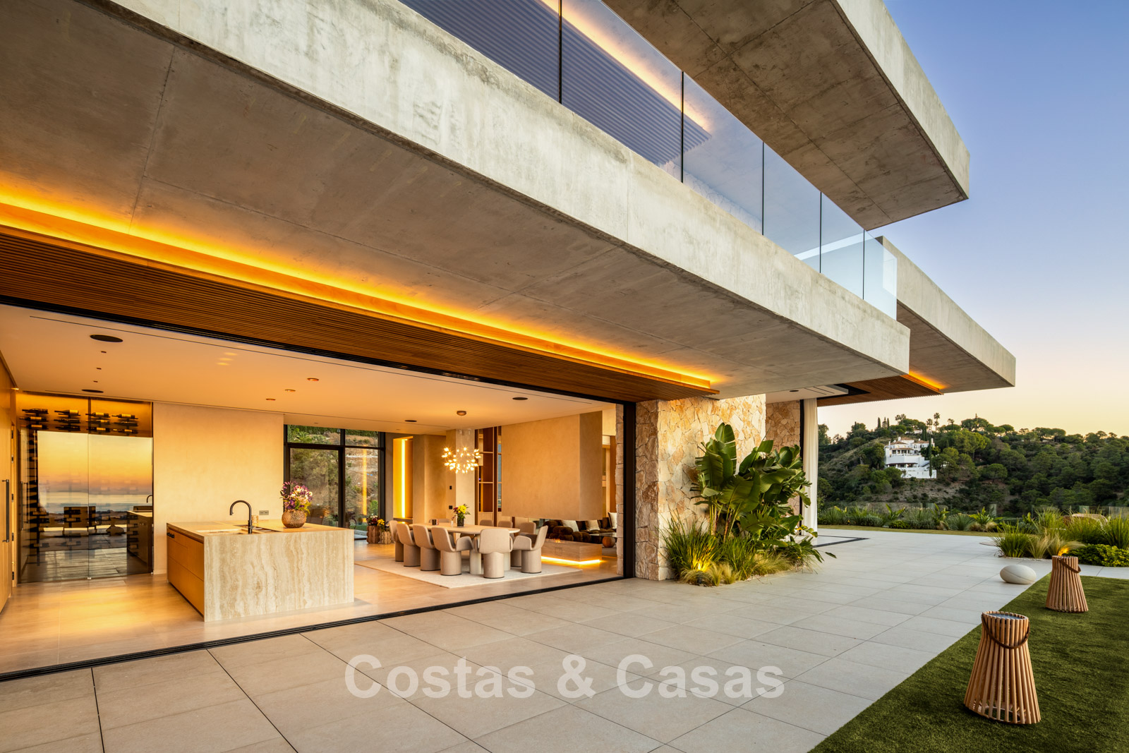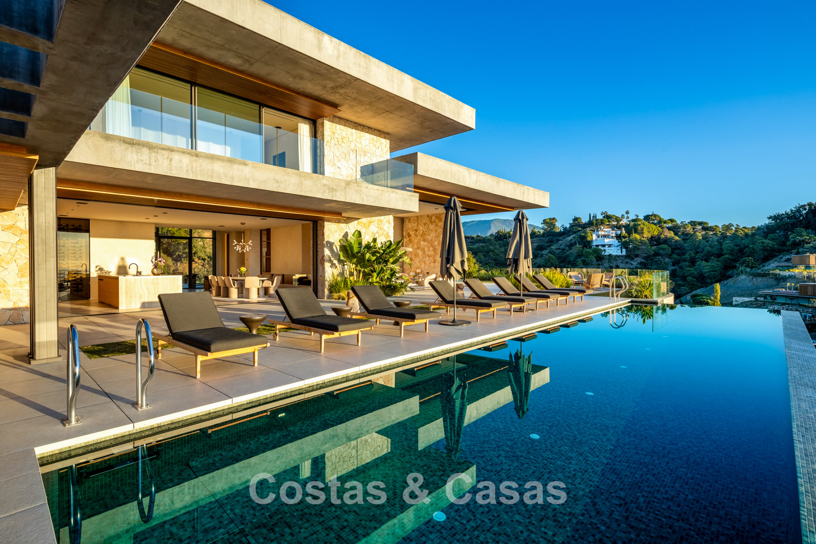 Fully fenced, generous plot on an elevated position. Beautifully landscaped exterior with lawn and tropical greenery. Spacious outdoor areas with a sunken chill-out, al fresco dining, and an outdoor kitchen with barbecue and pizza oven. Built-in infinity pool with adjoining sun terrace. South-facing. Panoramic valley and Mediterranean Sea views.