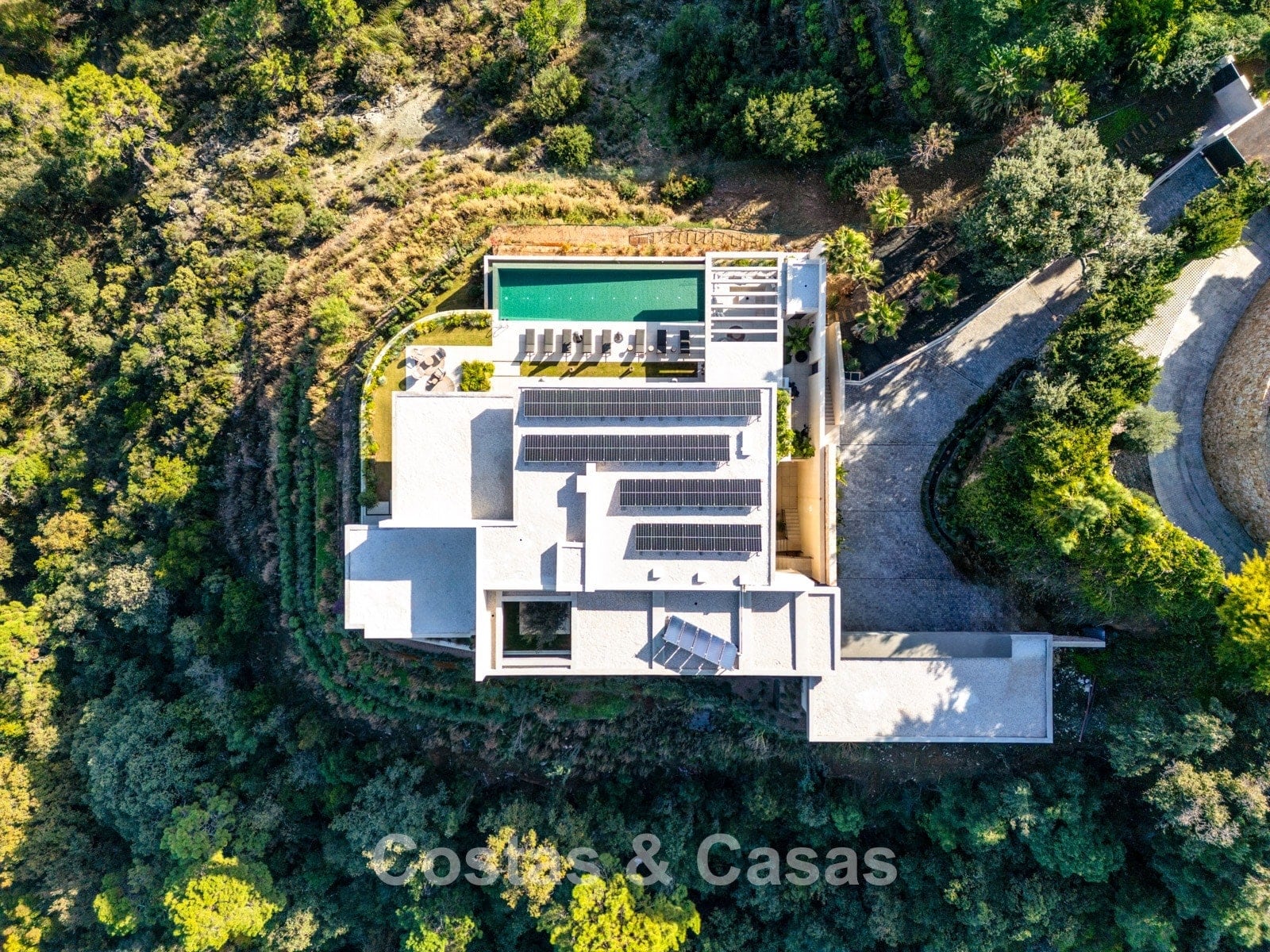 Plot: 4,149 m² Total built area: 1,520 m² Interior built area (gross): 1,028 m² Terraces: 492 m² Bedrooms: 6 Bathrooms: 6 Guest toilet