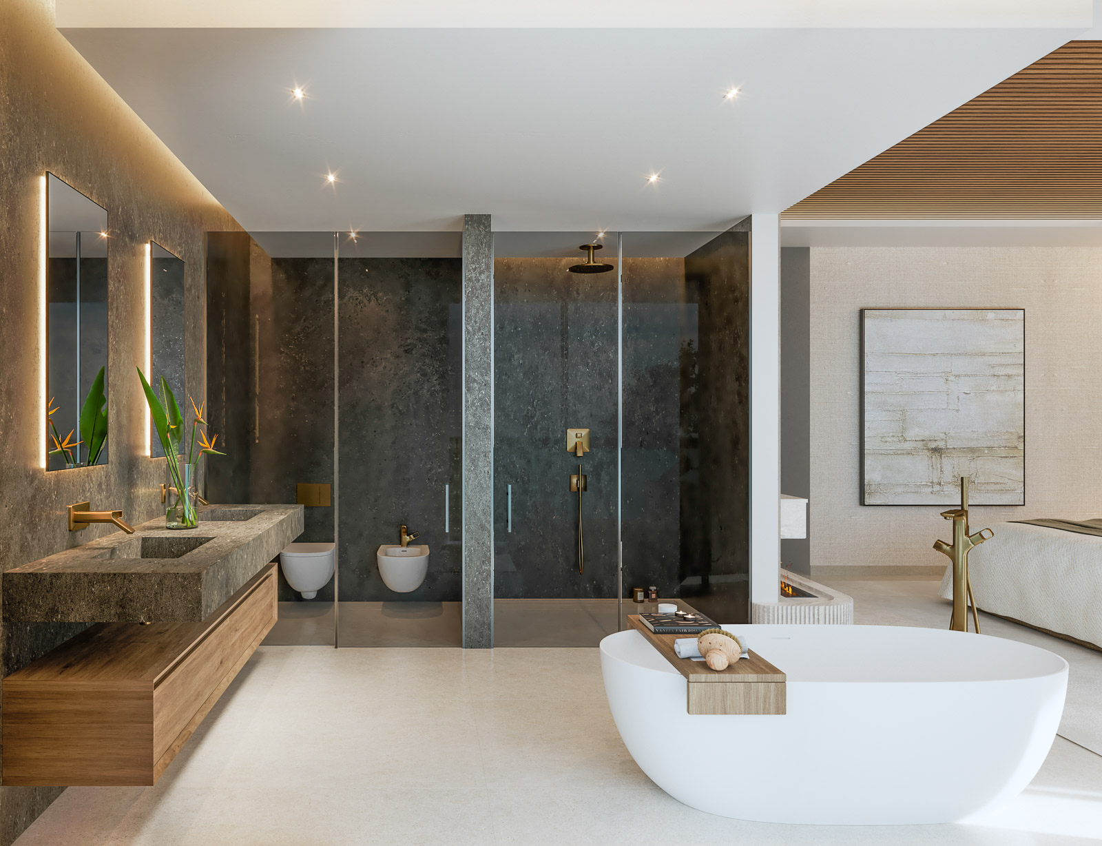 Semi-detached, modern villas, exclusively designed with premium building materials and refined finishes. Large living space with an open layout divided into a TV lounge with fireplace, integrated dining room and kitchen diner. Quality kitchen, complete with high-end appliances. Room-high sliding windows, which can be slid into the wall, with recessed profiles provide a seamless transition allowing the interior to merge with the outdoor space. 4 bedrooms, 4 bathrooms and guest toilet. Large master bedroom en-suite with dressing area and direct access to the expansive private terrace. The villas each feature a roof terrace with an infinity pool, an outdoor kitchen with barbecue and a dining and lounge area. On the lower floor a multi-purpose room, free to design as home cinema, mancave with bar, gym, ... Laundry room, storage room. Indoor garage for 2 cars. Carport