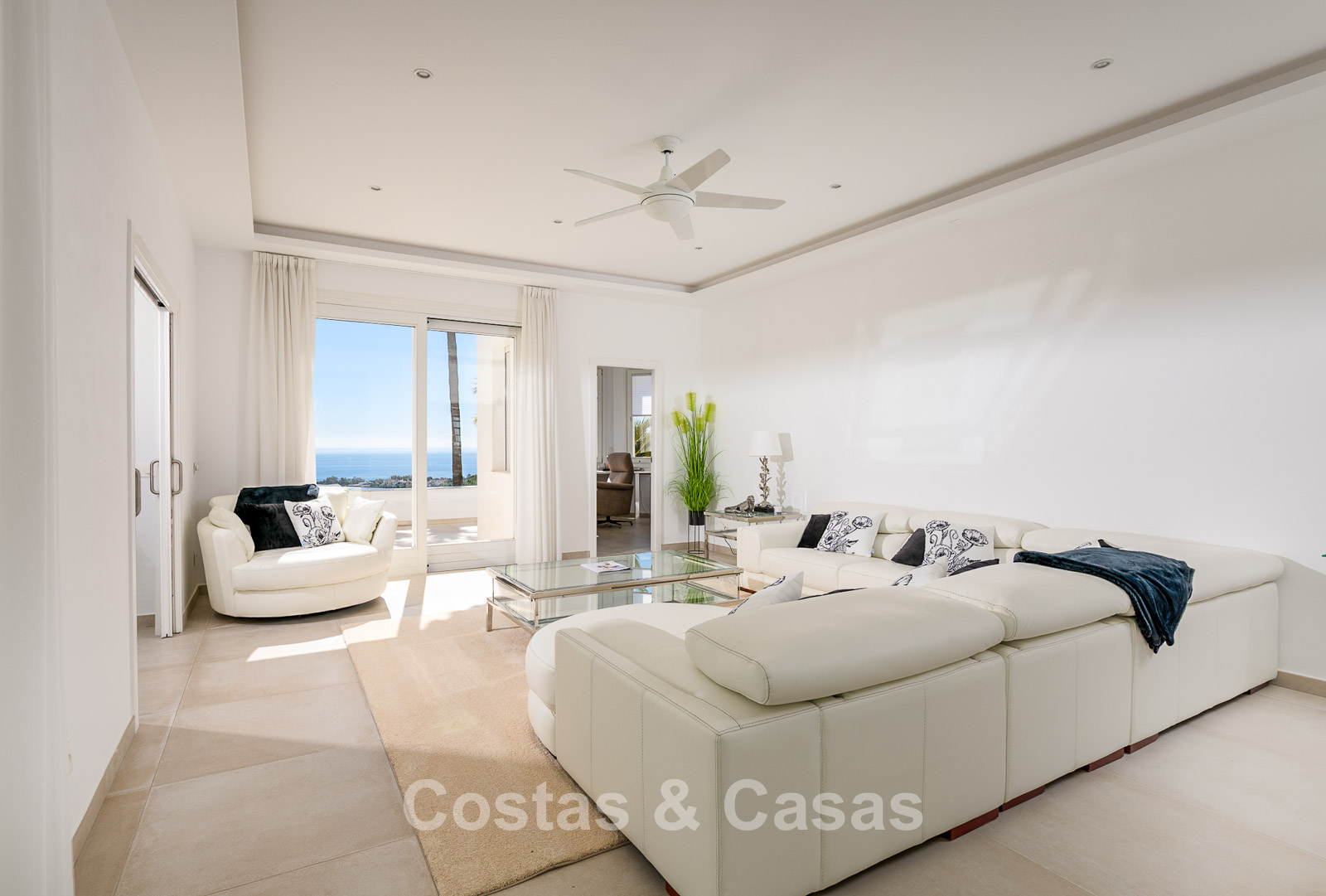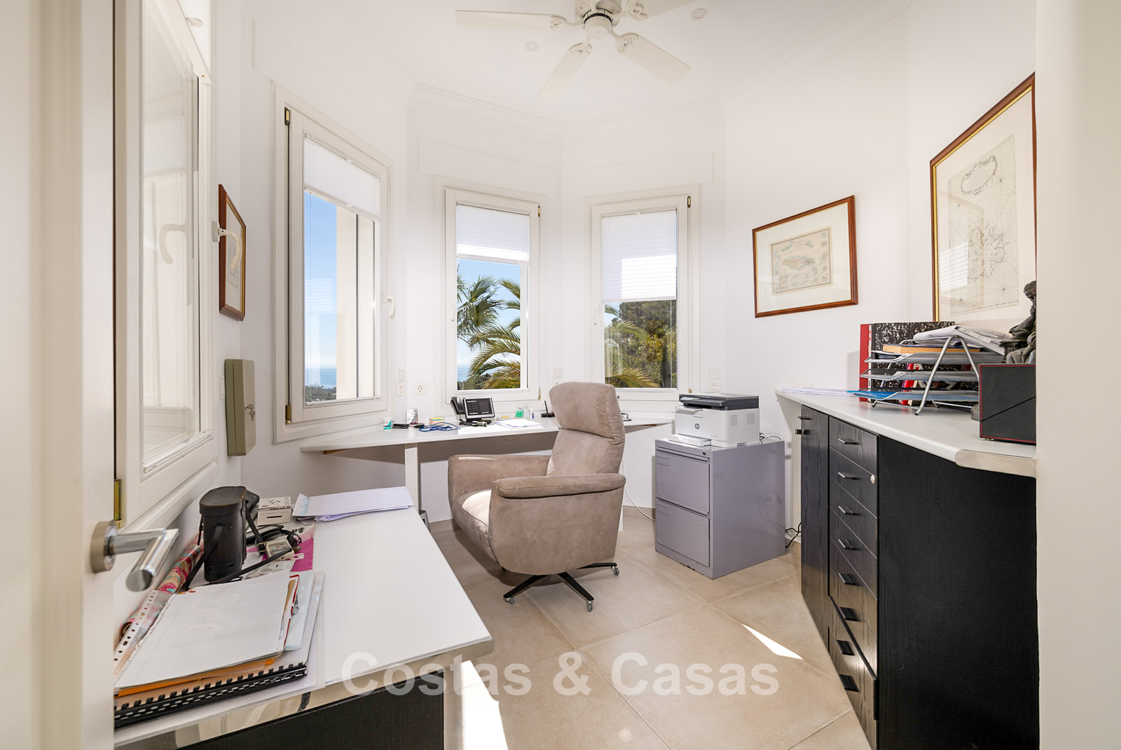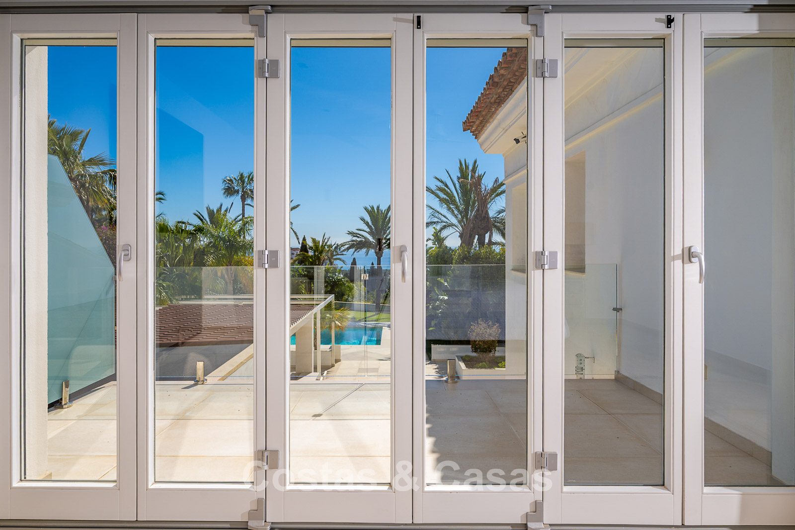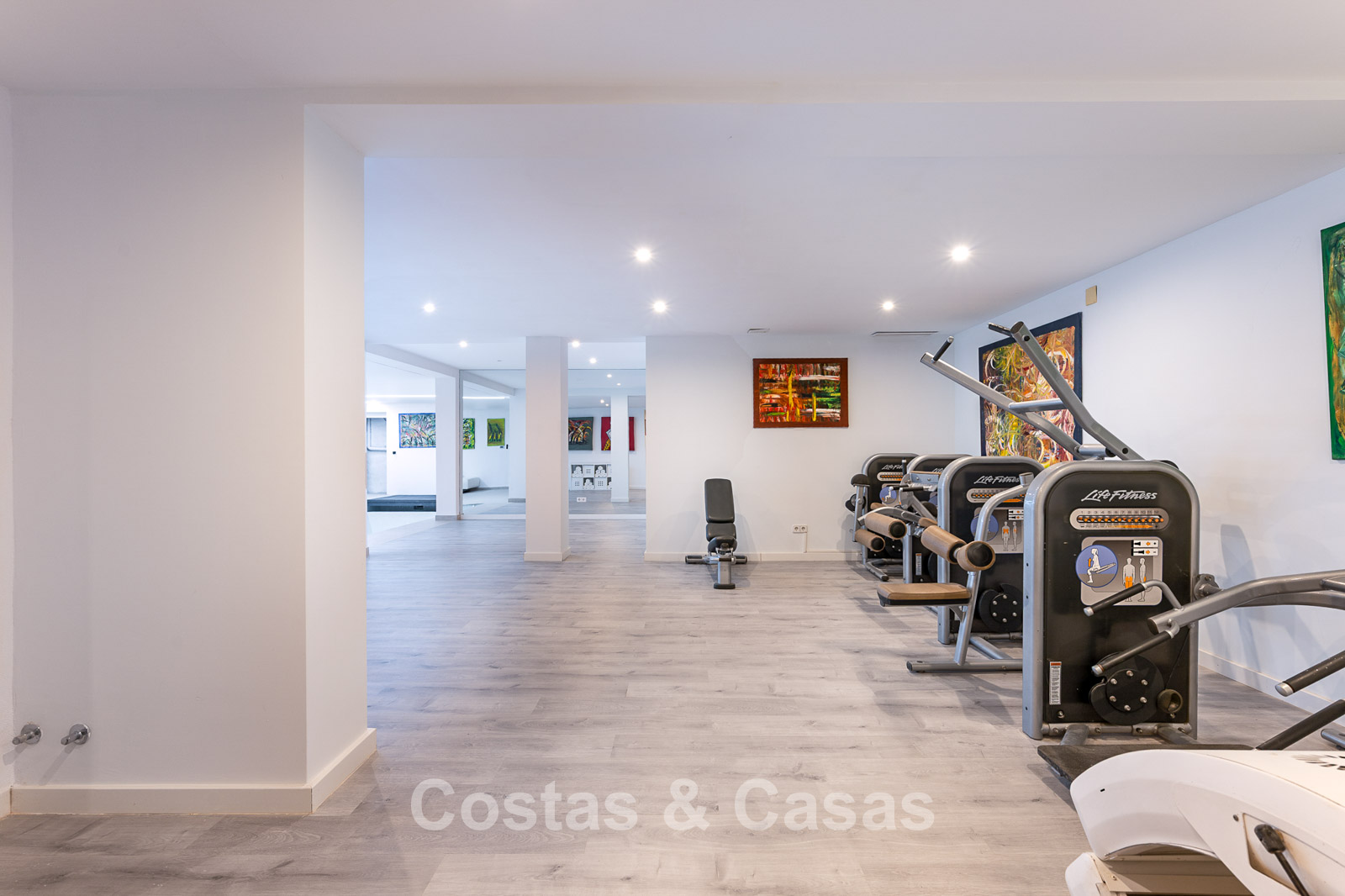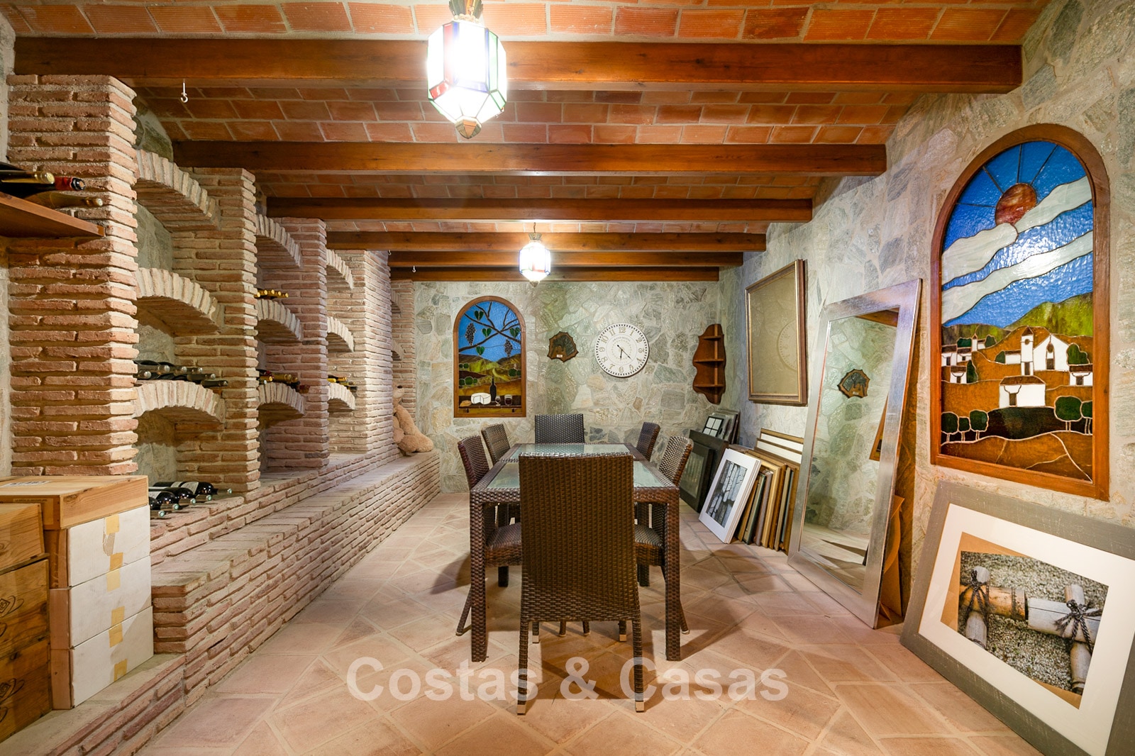 Impressive villa in a classic-modern style, spread over multiple levels. Recently fully renovated to a contemporary standard with great attention to detail. Finished with exceptionally high-quality materials and luxurious finishes. Modernised Andalusian patio leading to a double-height entrance with large arched windows. Spacious living area with a formal lounge and cosy seating areas. Fully equipped kitchen with all modern built-in appliances. In total, 9 bedrooms, each with its own luxurious en-suite bathroom and fitted wardrobes. The master suite features a large private terrace with spectacular coastal views. Separate guest apartment with kitchenette and living area, ideal for staff or visitors. Office / exhibition space. Lower level includes a professional gym, sauna, jacuzzi, and indoor swimming pool. Traditional wine bodega. Ample storage and separate laundry room. Technical room. Unfinished basement, customisable to your needs. Parking for 2 cars in a private garage plus additional parking within the gated plot.
