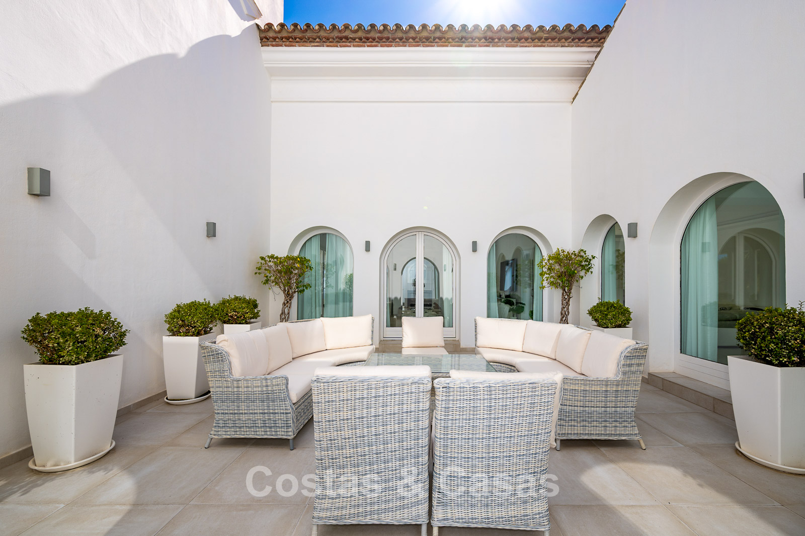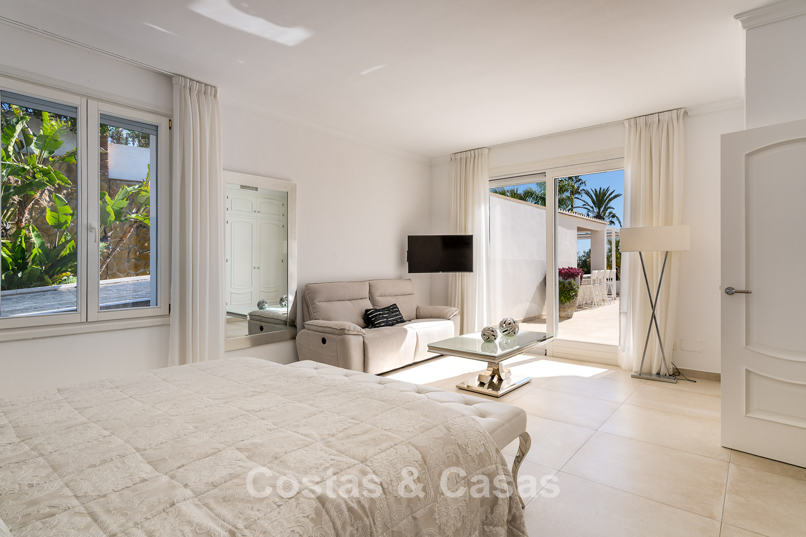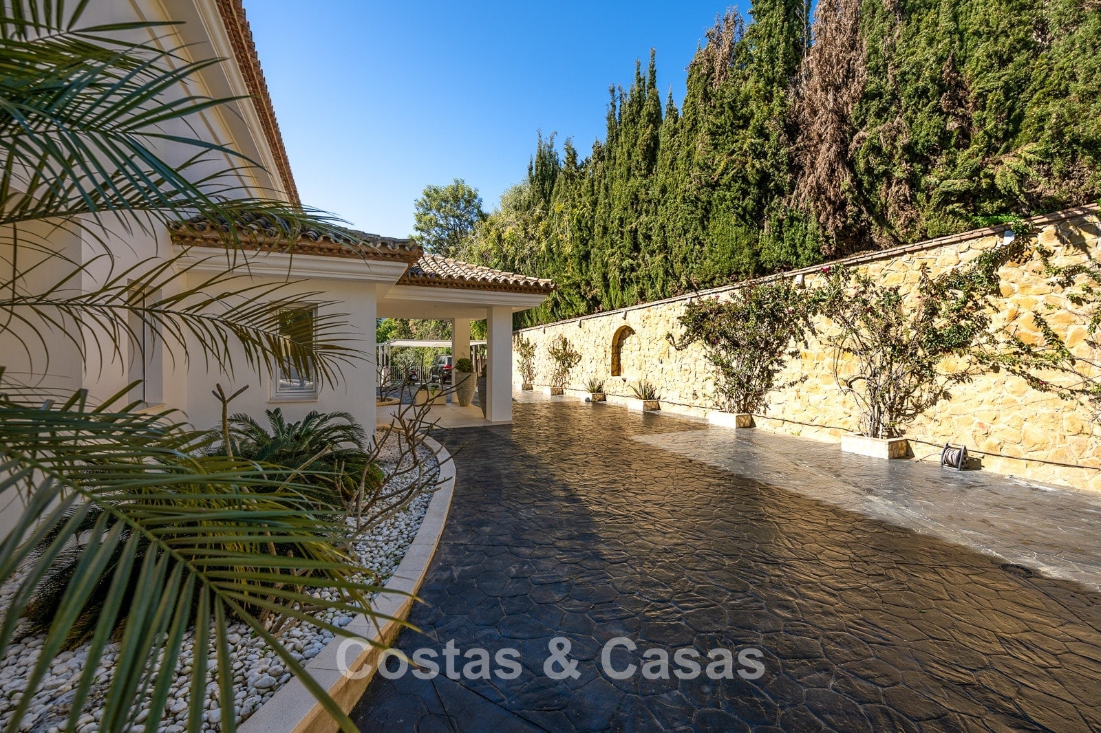 This exclusive urbanisation offers an oasis of tranquillity and privacy. Wide palm-lined avenues, beautifully maintained gardens, and elegant villas create a refined and serene living environment. Thanks to its convenient location, the motorway is reached within minutes. A short distance away you will find the beach, various restaurants, shops, and a pharmacy. The finest sandy dunes and beaches of the Marbella region are nearby, as well as the chic Nikki Beach club and the prestigious 5-star Don Carlos Resort. Golf enthusiasts will benefit from proximity to top courses such as Cabopino, Santa Maria, Santa Clara, Marbella Country Club and Rio Real. Marbella centre is just a 10-minute drive, and Puerto Banús can be reached in only 20 minutes.