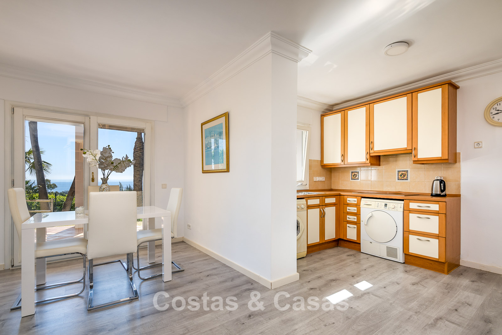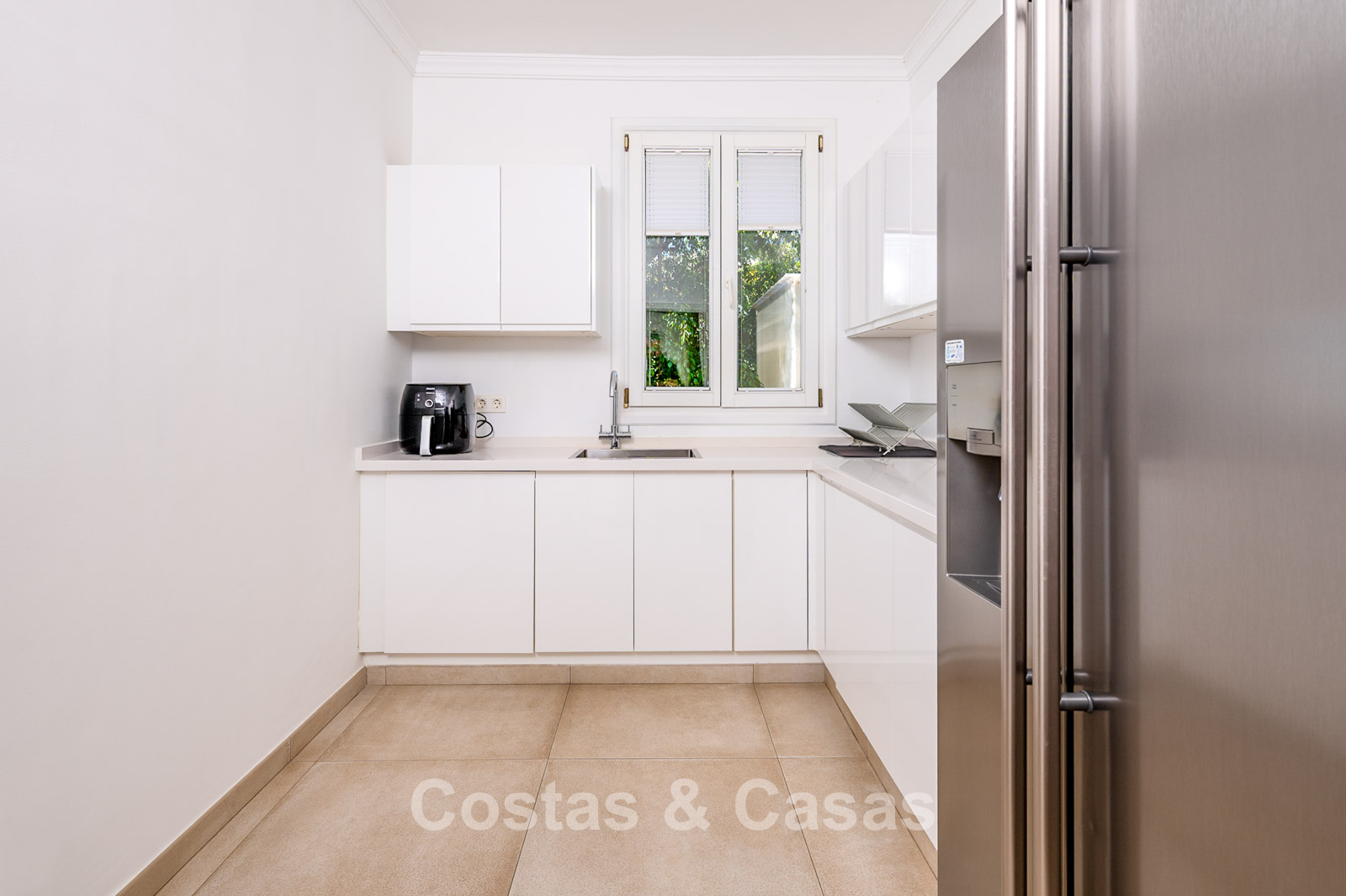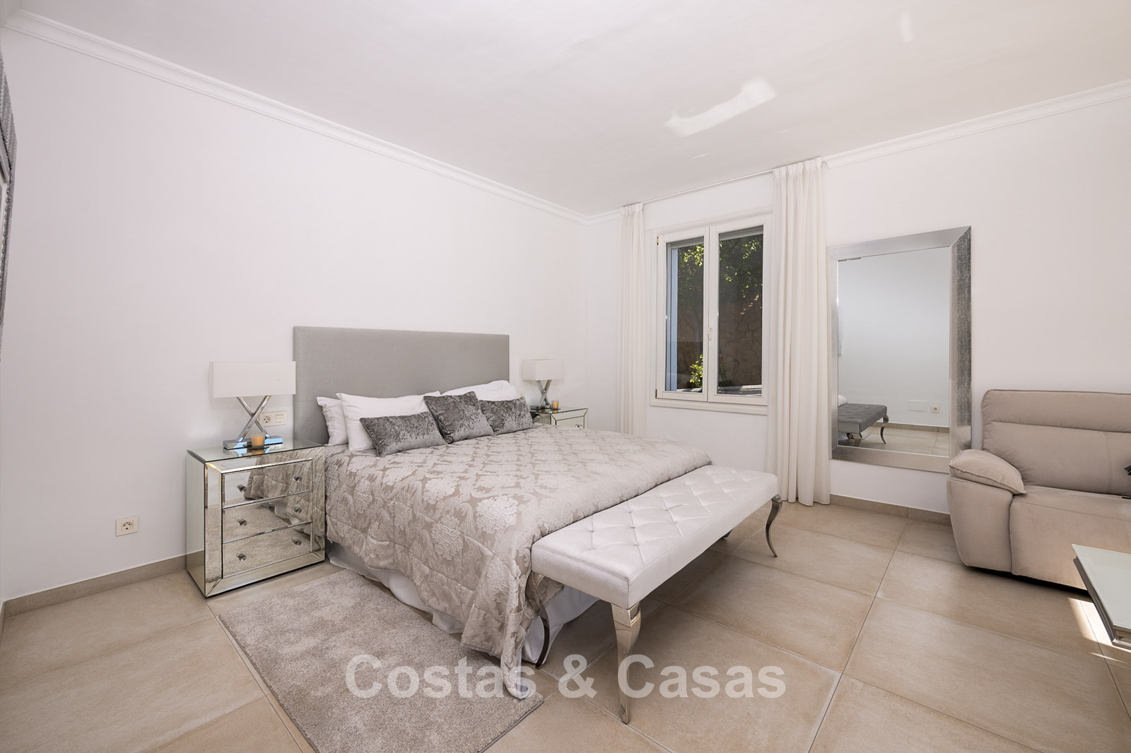 This exclusive urbanisation offers an oasis of tranquillity and privacy. Wide palm-lined avenues, beautifully maintained gardens, and elegant villas create a refined and serene living environment. Thanks to its convenient location, the motorway is reached within minutes. A short distance away you will find the beach, various restaurants, shops, and a pharmacy. The finest sandy dunes and beaches of the Marbella region are nearby, as well as the chic Nikki Beach club and the prestigious 5-star Don Carlos Resort. Golf enthusiasts will benefit from proximity to top courses such as Cabopino, Santa Maria, Santa Clara, Marbella Country Club and Rio Real. Marbella centre is just a 10-minute drive, and Puerto Banús can be reached in only 20 minutes.
